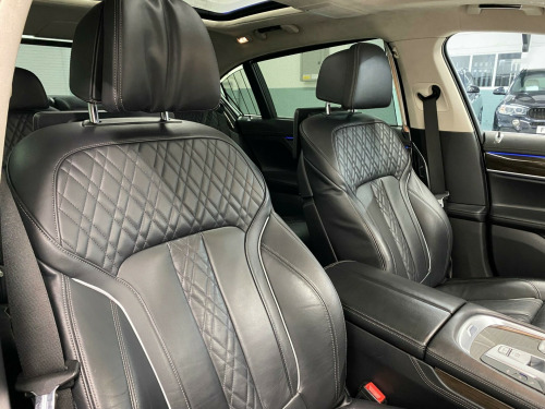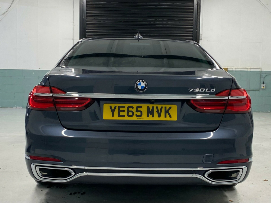 This 2015 BMW 730Ld presents an exceptional ownership proposition with its remarkably low mileage of just 63,300 miles, significantly below average for its age. This executive saloon boasts a powerful yet efficient 3.0L Diesel engine, compliant with Euro 6 emissions standards. Its provenance is further assured with a clear vehicle history check, a full service history, and a recent service completed on 2025-06-10 at 61,663 miles. A 12 month MOT will be provided on purchase, alongside a 3 month warranty for your peace of mind.Experience unparalleled comfort and technology with this 7 Series. The BMW Icon Adaptive LED headlights provide superior illumination, while the Rear Seat Entertainment system, complete with BMW Professional and BMW Touch Control, transforms the back into a mobile cinema. Passengers can indulge in the massage function and the Rear Seat Comfort Package, all while enjoying the expansive Glass Sunroof Sky Lounge Panoramic. This vehicle offers impressive acceleration, reaching 0-62mph in just 6.2 seconds, and benefits from a large boot space, making it a practical choice for both business and leisure., ar seat comfort package, executive package, rear seat entertainment - bmw professional with bmw touch control, glass sunroof - sky lounge panoramic, 19in alloy wheels - light double-spoke style - 630, pure excellence interior design package, headlights - bmw icon adaptive led, head-up display, tv function, speaker system - harman kardon, massage function - rear, soft close doors, heat comfort package - front and rear, sun protection glazing, surround-view, ambient air package, sport automatic transmission, bmw gesture control, through-loading system, exclusive nappa leather - black with black interior, 12v power socket - front x2, 12v power socket - rear of centre console x2, 18in alloy wheels - light multi-spoke style - 619, 20gb hdd memory, abs - anti lock braking system, asc - automatic stability control, air conditioning - automatic with four zone control, airbags - curtain head - front, airbags - curtain head - rear, airbags - driver, airbags - front side, airbags - impact dependent system for driver and front passenger, airbags - passenger, airbags - passenger deactivation, alarm system thatcham 1 with remote control, ambient interior lighting, amplifier - 205 watts, anti roll bars - front and rear, armrest - front centre, armrest - rear centre, automatically dimming rear view mirror, bmw apps interface, bmw connecteddrive online services, bmw connecteddrive services, bmw display key, bmw emergency call, bmw professional radio - single cd-dvd and mp3, bmw teleservices, battery in luggage compartment, bootlid operation - powered, brake assist, brake callipers - high gloss black, brake force display, brake lights with led technology, cbc - cornering brake control, child seat isofix attachment - rear, comfort access with smart opener, comfort exit stepless door brakes, comfort seats - front, crash sensor, cruise control with brake function, cup holders - front x2, cup holders - rear x2, dab digital radio, dbc - dynamic brake control, dsc - dynamic stability control - stabilises the vehicle in extreme situations - controls traction, dtc - dynamic traction control, daytime running lights - led, display - 10.25in colour screen, door handle illumination, door mirrors - automatic dipping parking function on passenger side, door mirrors - folding - automatically dimming, door sill finishers - bmw designation, drive performance control with eco pro - comfort - comfort plus - sport - sport plus and adaptive modes, dynamic brake lights, dynamic safety, ebd - electronic brake-force distribution, electric windows - open and close fingertip control, electro-mechanical parking brake with auto-hold function, engine immobiliser, enhanced bluetooth telephone preparation with wireless charging, enhanced route planning, exhaust tailpipes - single quadrilateral left and right, first aid kit, floor mats - velour, follow me home headlight function, footwell lights - front and rear, glass sunroof - electric, glove compartment - lockable, head restraints - front anti-whiplash, headlights - automatic activation, heated windscreen washer jets, high-beam assistant, horizonal chrome clip integrated into the front air inlets, information plus, instrument panel - leather, interior trim - fineline wood high gloss, jump start facility in engine bay, kerb view function for passenger door mirror, kidney grille - slats in silver with slat face finished in chrome, led fog lights - front, led headlights, locking wheel bolts, loudspeaker system - bmw advanced, msr - engine drag torque control, massage function - front, multi-functional instrument panel, multifunction controls for steering wheel, navigation system - bmw professional multimedia, obc - on-board computer, obd - on board diagnosis, outside temperature display, pdc - park distance control - front, pdc - park distance control - rear, personal profile, pollen filter, power steering - electric with servotronic, pure excellence exterior design, rain sensor, reading lights - front and rear, real time traffic information, rear fog light - led, remote services, reversing assist camera, run flat tyres, seat heating - rear, seats - driver and passenger memory, seats - drivers electric height adjustment, seats - front 4-way electric lumbar support, seats - front heated, seats - front passengers electric height adjustment, seats - rear comfort, side impact protection, smart-opener, smokers package, soft close - tailgate, speakers x1 - midrange in the middle of the instrument panel, speakers x1 - tweeter in instrument panel, speakers x2 - bass underneath the front seats, speakers x2 - midrange in front door panels, speakers x2 - midrange in rear door panels, speakers x2 - tweeters in mirror triangles, speakers x2 - tweeters in rear doors, speed limit function, sport multi-function leather steering wheel - three spoke, steering column - electric reach and ra