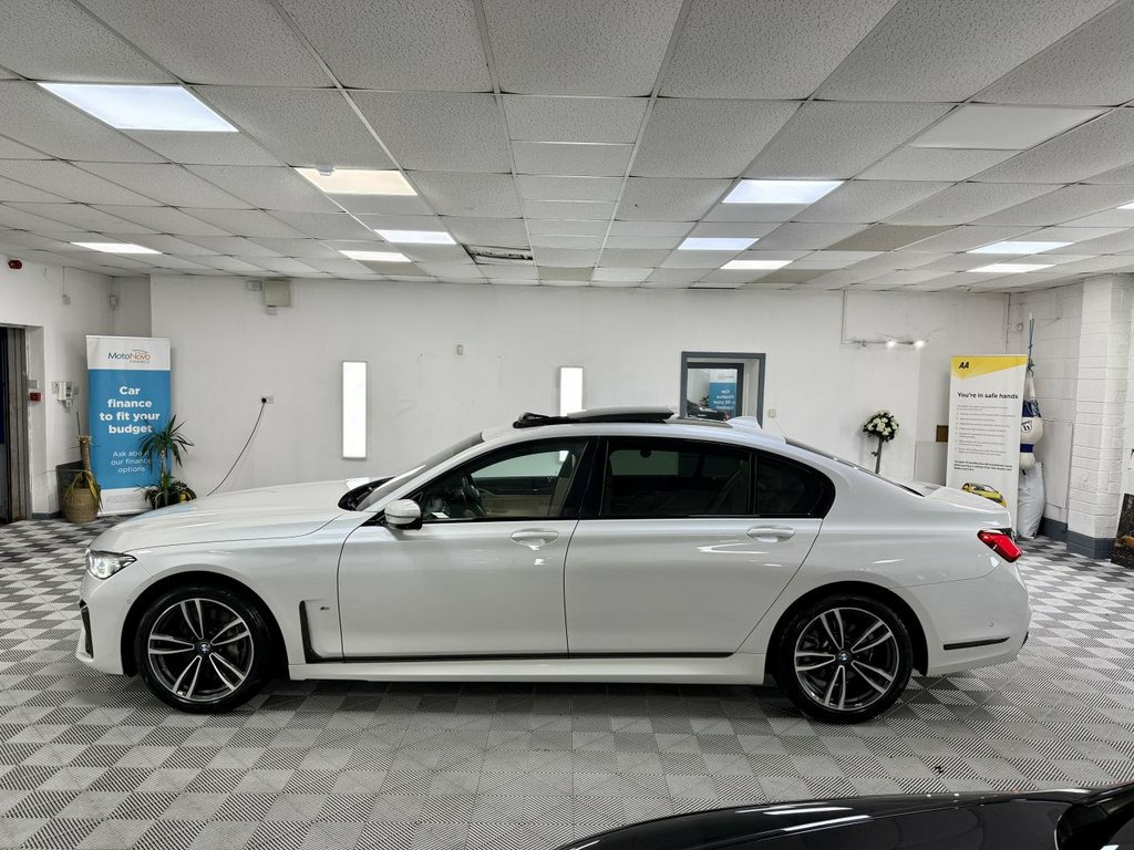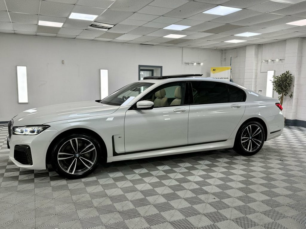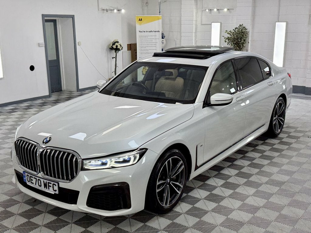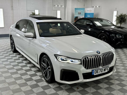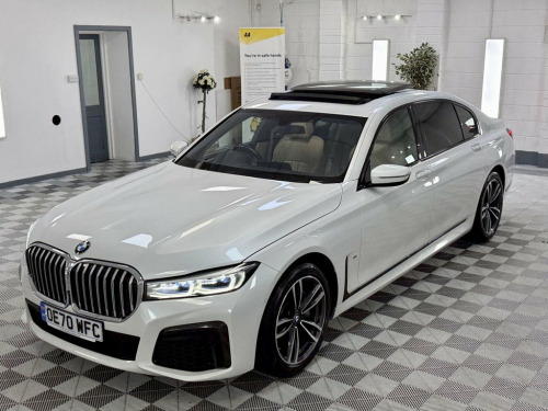 Amazing BMW 730D L, Finished in Metallic Mineral White With Contrsting Canberra Cream Leather Interior. Vehicle is 1 Previous Owner, Full History, 2 Keys, A New 12 Months MOT And 6 Months Nation Wide Warranty. Big Specification Vehicle 12V Power Sockets, 19in Alloy Wheels - Light M Double-Spoke, Active Protection, Air Conditioning - Automatic with Four Z, Airbags - Driver and Front Passenger Sid, Airbags - Driver and Passenger, Ambient Lighting, Armrest - Front, Armrest - Rear Centre, Automatic Start-Stop Button, BMW Connected Package Professional, BMW ConnectedDrive Online Services, BMW Emergency Call, BMW Gesture Control, BMW Icon Adaptive LED Headlights, BMW Live Cockpit Professional, BMW TeleServices, Bootlid Operation - Powered, Brake Pad Wear Indicator, Carbon Core - Innovative Lightweight Con, Centre Console - Rear, Ceramic Finish for Controls, Child Seat ISOFIX Attachment for the Two, Climate Comfort Windscreen, CD