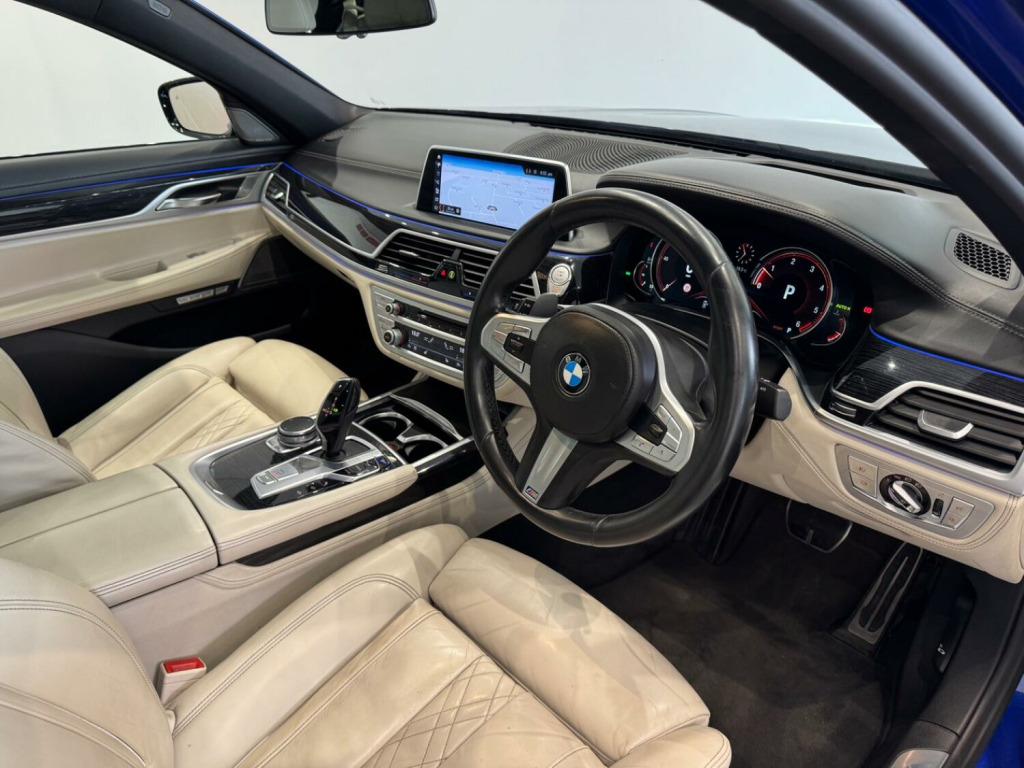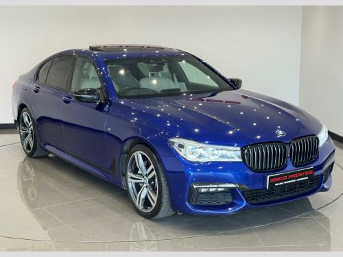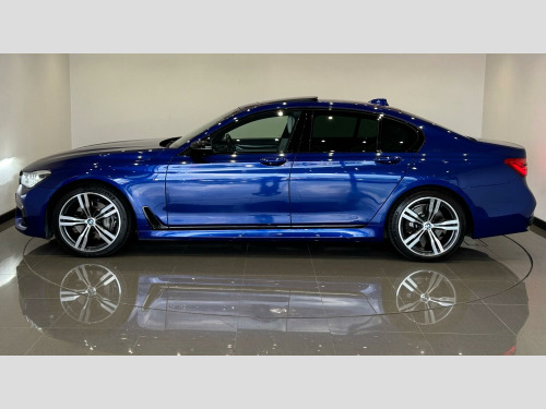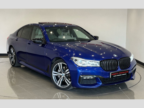 FREE DELIVERY + Please Call for a Walk Around Video+ FULL BMW SERVICE + 12 MONTHS MOT +, Nimco Prestige are excited to offer this exceptional 2017 BMW 7 Series, finished in the stunning San Marino Blue paint, a special order Individual colour. This vehicle is a rare find with a massive spec and FULL BMW service history. With only one previous owner from new it is presented with three keys, including the BMW display key. , Full Spec list as follows:, -SAN MARINO BLUE METALLIC, -Panoramic Glass Sun roof, -Soft-Close-Automatic doors, -Reversing camera , -Surround View 360 Cameras, -Harman/Kardon surround sound system, -Head-up display, -Front massage Seats , -Comfort seats with memory, -Front and Rear Heated Seats, -Rear Comfort seat – electric adjustable, -Adaptive LED headlights With High-beam assistant, -Comfort access Keyless Entry and Start, -Autom. climate control with 4-zone ctrl, -Remote-controlled parking From Smart Key, -DAB tuner, -Smartphone Integration With apple car play, -BMW gesture control, -WLAN Hotspot, -M Aerodynamics package, -Headlining anthracite, -Leather Nappa/elfenbein-weiss, -Tyre pressure display, -M Sports package, -BMW display key, -Fine wood Fineline high gl. metal effect, -Instrument panel, leather-covered, -Ambient interior light, -LED Fog lights, -Driving Assistant, -Park Assist, -Navigation system Professional, -Telephony with wireless charging, -Multifunctional instrument display, -M leather steering wheel, -High gloss shadow line, , , The vehicle has been meticulously maintained, with a FULL BMW main dealer service history, including recent services at BMW JCT600 and BMW Sandal Huddersfield. -08/10/2019 - 19,380 – BMW The Country Garage, -18/09/2020 - 26,507 – BMW The Country Garage, -06/08/2021 - 33,405 – BMW The Country Garage, -07/04/2022 - 44,576 – BMW The Country Garage, -18/11/2022 - 53,653 – BMW JCT600 , -08/12/2022 - 53,880 – BMW Sandal Huddersfield , -20/01/2023 - 54,814 – BMW Sandal Huddersfield , -08/08/2023 - 64,625 – BMW Sandal Huddersfield , -09/07/2024 - 76,963 – BMW JCT600 , -17/12/2024 - 81,527 – BMW JCT600 , -17/06/2025 - 88,404 – BMW JCT600, , , Additionally, this vehicle benefits from free delivery, and we welcome part exchanges. For added convenience, we can provide a walk-around video of the vehicle upon request. , While every effort has been made to ensure the accuracy of the vehicles information, we encourage you to verify any details that are important to you with a salesperson.