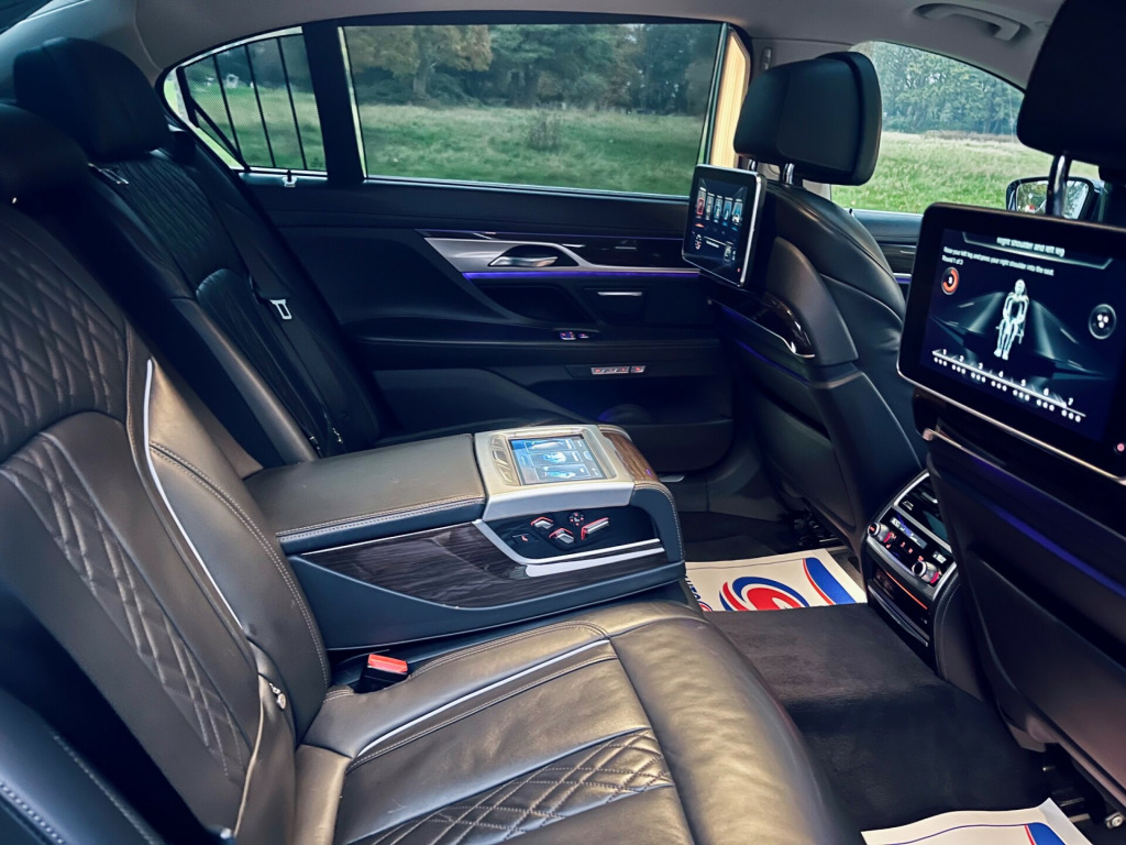 CHRISTMAS COUNTDOWN OFFER! Don't Miss Out! Huge savings on selected vehicles!!!FAST DELIVERY! MASSIVE DISCOUNTS!!!Offer ends December 25th.Be quick. Be first. Grab your new car before it's gone!This luxurious 2018 BMW 7 Series 3.0 740Ld Exclusive Saloon with a powerful 320 ps diesel engine and automatic xDrive transmission is the epitome of elegance and performance. With only 121,000 miles on the clock, this 4-door saloon is ULEZ compliant and comes with an MOT that expires on 08/04/2026. The spacious interior seats 5 and is equipped with features such as Sat Nav, Rear Parking Camera, Parking sensors, and a Bowers and Wilkins Diamond Surround Sound System. Additionally, the Rear-Seat Entertainment Experience with BMW Touch Command ensures a comfortable and enjoyable ride for all occupants. Don't miss the opportunity to own this stunning, high-specification BMW that combines luxury, technology, and efficiency.Stately design!outstanding engine!comfortable and spacious cabin! FEATURING:PANORAMIC GLASS SUNROOFEXECUTIVE LOUNGE SEATINGHEAT COMFORT PACKAGE (front and rear)MASSAGE SEATS (front and rear)AMBIENT LIGHTINGSAT NAVBLUETOOTHAPPLE CAR PLAYREVERSE CAMERAPARKING SENSORSCRUISE CONTROLADAPTIVE AIR SUSPENSIONSUN BLINDSBMW TOUCH COMMANDMEDIA SCREENSONLINE ENTERTAINMENT BOWERS AND WILKINSON SURROUND SOUNDBMW GESTURE CONTROLLED LIGHTSHEADS UP DISPLAYTRAFFIC SIGN RECOGNITIONHIGH BEAM ASSISTAND MUCH MORE! THIS VEHICLE IS FULLY LOADED!, in alloy wheels - light multi-spoke style - 619, electric glass sunroof, electric windows - front and rear with open-close fingertip control - anti-trap facility and comfort closing function, exhaust tailpipes - single quadrilateral left and right, exterior door handle illumination, exterior mirrors - folding with anti dazzle, heated windscreen washer jets, locking wheel bolts, pure excellence exterior design, run flat tyres, xdrive designation on tailgate, 20gb hdd memory, bmw connecteddrive online services, bmw connecteddrive services, bmw emergency call, bmw professional radio with single cd player - mp3 and dvd playback compatibility, bmw teleservices, concierge service, control display - 10.25in colour display, dab digital radio, enhanced bluetooth telephone preparation with wireless charging, loudspeaker system - bmw advanced, navigation system - bmw professional multimedia, power sockets 12v - 2x front - 2x rear, real time traffic information, remote services, wifi hotspot preparation, air conditioning - automatic with four zone control, ambient lighting, armrest - front and rear centre, automatically dimming rear view mirror, bmw gesture control, battery in luggage compartment with jump start facility in engine bay, bootlid operation - powered, comfort exit stepless door brakes, comfort seats - front, comfort seats - rear, cup holders - front x2 and rear x2, digital cockpit, door sill finishers - bmw designation, favourite buttons, floor mats - velour, footwell lights - front and rear, glove compartment - lockable, instrument panel - leather, interior trim - fineline wood high gloss, lumbar support - driver and front passenger, massage function - front, multi-functional instrument panel, multifunction controls for steering wheel, rain sensor with automatic headlight activation, reading lights - front and rear, rear fog light - led, seat heating - front and rear, seats - front and rear electric adjustment, smokers package, soft close - tailgate, soft close doors, sport multi-function leather steering wheel - three spoke, steering column - electric reach and rake adjustment with memory, sunblinds - rear windscreen - electric, two tone horn, airbags, alarm system - thatcham 1 with remote control and engine immobiliser, all round anti-corrosion system with partial hot galvanising - phosphate treatment and cathodic dip paintwork - preservation of hollow cavities - underfloor protection, anti roll bars - front and rear, bmw display key, child seat isofix attachment for the two outer rear seats, comfort access with smart opener, crash sensor - activating central locking release - hazard warning lights - battery safety cut off - interior lighting, dsc - dynamic stability control - stabilises the vehicle in extreme situations - controls traction, deformation zones - front and rear, driving assistant, dynamic safety, electro-mechanical parking brake with auto-hold function, first aid kit and warning triangle, head restraints - front anti-whiplash, seat belts - front inertia reel with pyrotechnical belt latch tensioner - belt force limiter and belt retainer, seat belts - rear - three with inertia reel, side impact protection, speed limit function, brake force display, cruise control with brake function, drive performance control, eps - electric power steering with servotronic, obc - on-board computer, obd - on board diagnosis, oil sensor for level and grade - warning by check control system, pdc - park distance control - front and rear, reversing assist camera, self-levelling air suspension - rear, suspension - 2-axle air, tpms - tyre pressure monitoring system, vdc - variable damper control, idrive touch controller with shortcut buttons, daytime running lights - led, dynamic brake lights with led technology, follow me home headlight function, high-beam assistant, led fog lights - front, led headlights