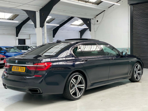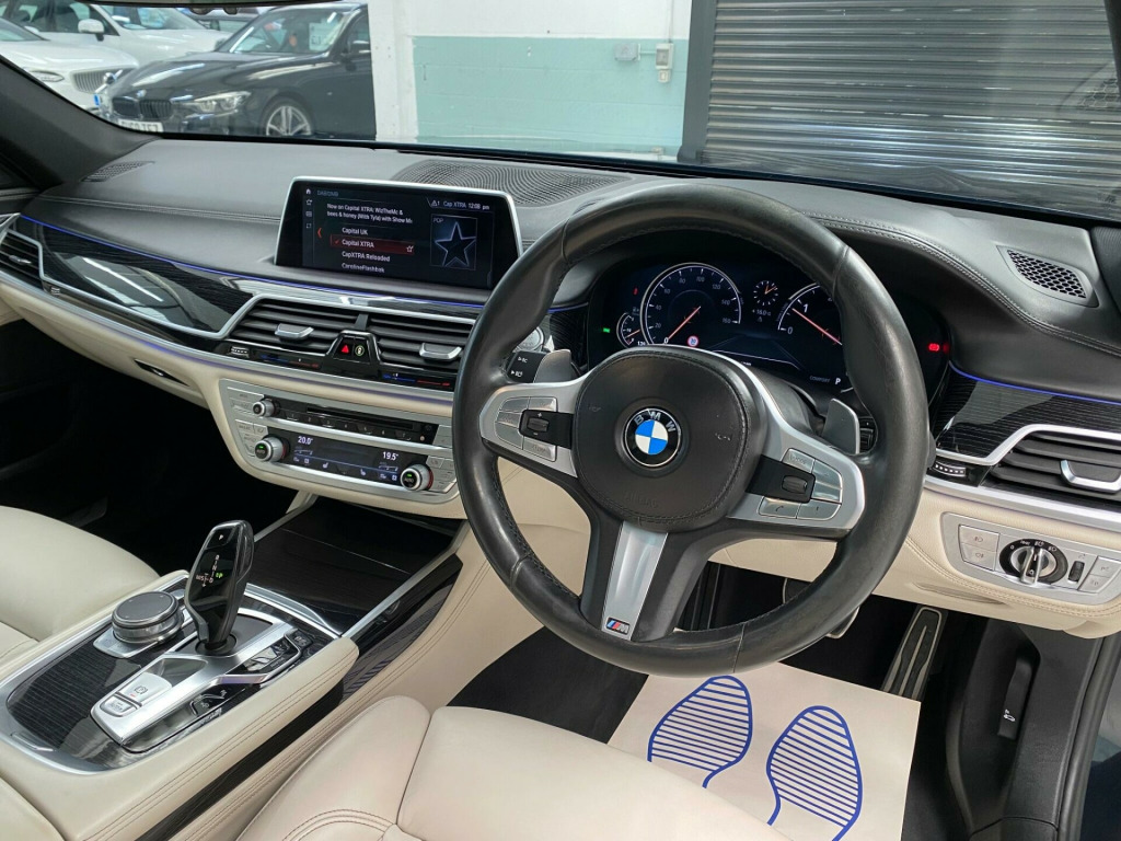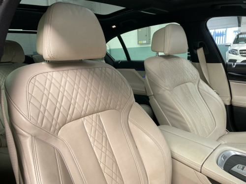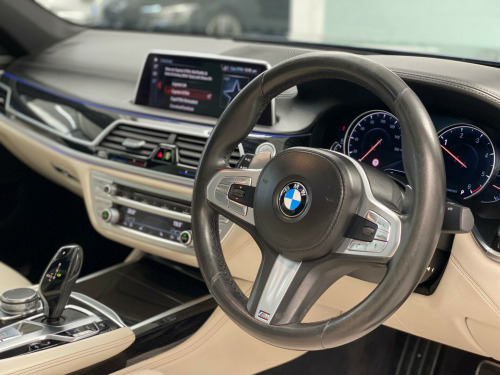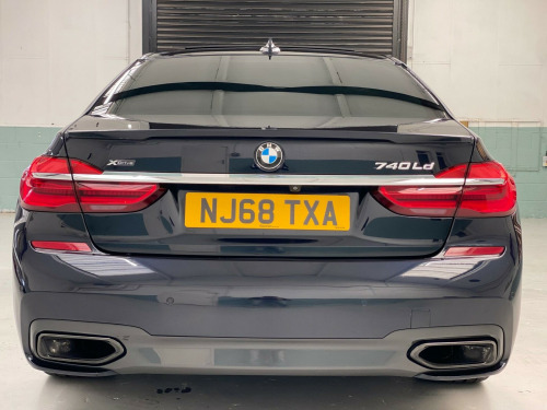 This 2018 BMW 740Ld M Sport is presented with a clear vehicle history check, offering you complete peace of mind. This impressive saloon features a powerful 3.0 litre diesel engine paired with a smooth four wheel drive system, ensuring excellent performance and handling in all conditions. As a Euro 6 compliant vehicle, it meets stringent emission standards. The M Sport trim enhances its sporty appeal, complemented by an M Rear Spoiler. Inside, you'll find the convenience of Apple CarPlay Preparation and a Rain Sensor that automatically activates the headlights. For added comfort and a sense of space, this model boasts a Sky Lounge Panoramic Glass Sunroof, which includes an opening function.Experience exhilarating performance with this BMW 7 Series, capable of accelerating from 0 to 62 miles per hour in a swift 5.3 seconds. This rapid acceleration, combined with its sophisticated four wheel drive system, sets it apart from many other vehicles in its class. The generous boot space provides ample room for luggage or shopping, making it a practical choice for everyday use and longer journeys. To ensure your confidence in this purchase, a 12 month MOT will be provided on purchase, and the vehicle comes with a 3 month warranty., ass sunroof - sky lounge panoramic, 20in alloy wheels - light m-double spoke bi-colour 648m, panoramic glass sunroof, sun protection glazing, m rear spoiler, exclusive nappa leather - ivory white with black interior, apple carplay preparation, heat comfort package - front and rear, 19in alloy wheels - light double-spoke style bi-colour - 647m, 20gb hdd memory, air conditioning - automatic with four zone control, airbags, alarm system - thatcham 1 with remote control and engine immobiliser, all round anti-corrosion system with partial hot galvanising - phosphate treatment and cathodic dip paintwork - preservation of hollow cavities - underfloor protection, ambient lighting, anti roll bars - front and rear, armrest - front and rear centre, automatically dimming rear view mirror, bmw connecteddrive online services, bmw connecteddrive services, bmw display key, bmw emergency call, bmw gesture control, bmw professional radio with single cd player - mp3 and dvd playback compatibility, bmw teleservices, battery in luggage compartment with jump start facility in engine bay, bootlid operation - powered, brake force display, child seat isofix attachment for the two outer rear seats, comfort access with smart opener, comfort exit stepless door brakes, comfort seats - front, comfort seats - rear, concierge service, control display - 10.25in colour display, crash sensor - activating central locking release - hazard warning lights - battery safety cut off - interior lighting, cruise control with brake function, cup holders - front x2 and rear x2, dab digital radio, dsc - dynamic stability control - stabilises the vehicle in extreme situations - controls traction, daytime running lights - led, deformation zones - front and rear, digital cockpit, door sill inlays - bmw m designation illuminated, drive performance control, driving assistant, dynamic brake lights with led technology, dynamic safety, eps - electric power steering with servotronic, electric glass sunroof, electric windows - front and rear with open-close fingertip control - anti-trap facility and comfort closing function, electro-mechanical parking brake with auto-hold function, engine cover with twinpower turbo designation, enhanced bluetooth telephone preparation with wireless charging, exhaust tailpipes - single quadrilateral left and right, exterior door handle illumination, exterior mirrors - folding with anti dazzle, exterior trim - high gloss shadowline, favourite buttons, first aid kit and warning triangle, floor mats - velour, follow me home headlight function, footwell lights - front and rear, glove compartment - lockable, head restraints - front anti-whiplash, headlining - anthracite, heated windscreen washer jets, high-beam assistant, instrument panel - leather, interior trim - fineline black wood - high-gloss with metal effect, led fog lights - front, led headlights, locking wheel bolts, loudspeaker system - bmw advanced, lumbar support - driver and front passenger, m aerodynamic bodystyling, m designation on front side panels - left and right, m leather steering wheel, m specific key - spare remote key only, m sport package, massage function - front, multi-functional instrument panel, multifunction controls for steering wheel, navigation system - bmw professional multimedia, obc - on-board computer, obd - on board diagnosis, oil sensor for level and grade, pdc - park distance control - front and rear, power sockets 12v - 2x front - 2x rear, rain sensor with automatic headlight activation, reading lights - front and rear, real time traffic information, rear fog light - led, remote services, reversing assist camera, run flat tyres, seat belts - front inertia reel with pyrotechnical belt latch tensioner - belt force limiter and belt retainer, seat belts - rear - three with inertia reel, seat heating - front and rear, seats - front and rear electric adjustment, self-levelling air suspension - rear, side impact protection, smokers package, soft close - tailgate, soft close doors, speed limit function, sport automatic transmission, steering column - electric reach and rake adjustment with memory, sunblinds - rear windscreen - electric, suspension - 2-axle air, tpms - tyre pressure monitoring system, two tone horn, vdc - variable damper control, wifi hotspot preparation, idrive touch controller with shortcut buttons, xdrive designation on tailgate