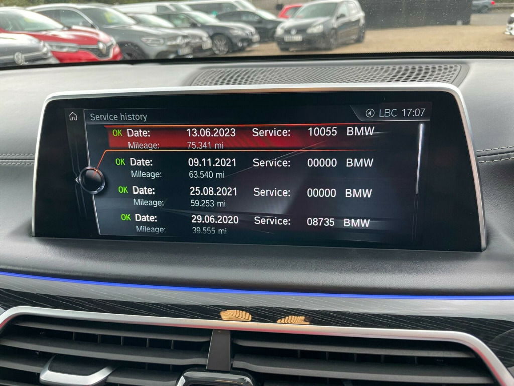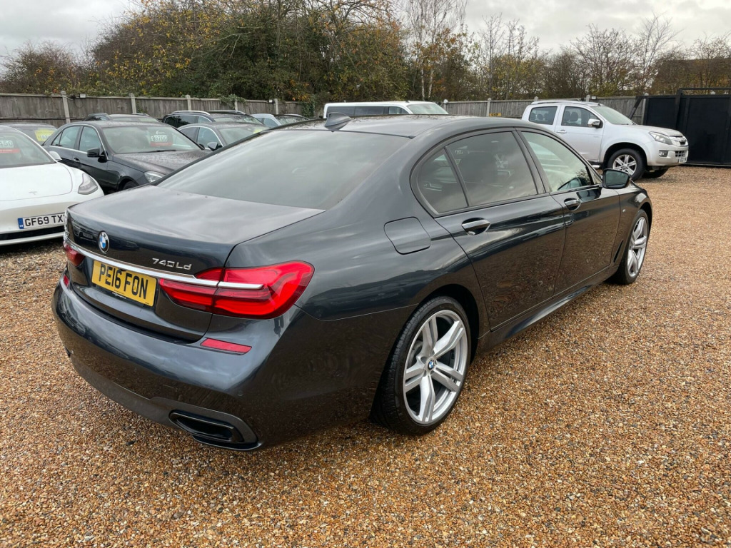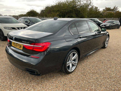 ZERO DEPOSIT FINANCE AVAILABLE, 6 MONTHS NATIONWIDE WARRANTY, 12 Months Free AA Breakdown Cover, Hpi Clear, 2 keys, all previews MOTs available, we are located at CANVEY ROAD, CANVEY ISLAND, ESSEX, SS8 0QD, This 2016 BMW 7 Series 740Ld M Sport is presented with a clear vehicle history check, offering peace of mind for its next owner. This impressive saloon features a powerful 3.0 litre diesel engine paired with a smooth four wheel drive system, ensuring excellent performance and control in all conditions. As a Euro 6 compliant vehicle, it meets stringent emission standards. The M Sport trim level enhances its sporty appeal and driving dynamics, while notable features include a Head Up Display for convenient information access, a luxurious Glass Sunroof Sky Lounge Panoramic for an open and airy cabin feel, and an Advanced Parking Package to assist with manoeuvring.The 740Ld M Sport boasts a through loading system, offering practical versatility for carrying larger items, complemented by a generous boot space. Adaptive headlights provide improved visibility during night driving, enhancing safety. This BMW 7 Series excels with its rapid acceleration, achieving 0-62mph in just 5.3 seconds, a testament to its potent engine and refined engineering. These highlights demonstrate how this particular BMW 7 Series offers a superior driving experience and a more comprehensive feature set compared to other vehicles in its class.. 12V Power Socket - Front x2, 12V Power Socket - Rear of Centre Console x2, 19in Alloy Wheels - Light Double-Spoke Style Bi-Colour - 647M, 20GB HDD Memory, ABS - Anti Lock Braking System, ASC - Automatic Stability Control, Air Conditioning - Automatic with Four Zone Control, Airbags - Curtain Head - Front, Airbags - Curtain Head - Rear, Airbags - Driver, Airbags - Front Side, Airbags - Impact Dependent System for Driver and Front Passenger, Airbags - Passenger, Airbags - Passenger Deactivation, Alarm System Thatcham 1 with Remote Control, Ambient Interior Lighting, Amplifier - 205 Watts, Anti Roll Bars - Front and Rear, Armrest - Front Centre, Armrest - Rear Centre, Automatically Dimming Rear View Mirror, BMW Apps Interface, BMW ConnectedDrive Online Services, BMW ConnectedDrive Services, BMW Display Key, BMW Emergency Call, BMW Professional Radio - Single CD-DVD and MP3, BMW TeleServices, Battery in Luggage Compartment, Bootlid Operation - Powered, Brake Assist, Brake Callipers - Black Anodised with BMW Designation for Front and Rear, Brake Force Display, Brake Lights with LED Technology, CBC - Cornering Brake Control, Child Seat ISOFIX Attachment - Rear, City Collision Mitigation, Comfort Access with Smart Opener, Comfort Exit Stepless Door Brakes, Comfort Seats - Front, Crash Sensor, Cruise Control with Brake Function, Cup Holders - Front x2, Cup Holders - Rear x2, DAB Digital Radio, DBC - Dynamic Brake Control, DSC - Dynamic Stability Control - Stabilises the Vehicle in Extreme Situations - Controls Traction, DTC - Dynamic Traction Control, Daytime Running Lights - LED, Display - 10.25in Colour Screen, Door Handle Illumination, Door Mirrors - Automatic Dipping Parking Function on Passenger Side, Door Mirrors - Folding - Automatically Dimming, Door Sill Inlays - BMW M Designation Illuminated, Drive Performance Control with ECO PRO - Comfort - Comfort Plus - Sport - Sport Plus and Adaptive Modes, Driving Assistant, Dynamic Brake Lights, Dynamic Safety, EBD - Electronic Brake-Force Distribution, Electric Windows - Open and Close Fingertip Control, Electro-Mechanical Parking Brake with Auto-Hold Function, Engine Immobiliser, Enhanced Bluetooth Telephone Preparation with Wireless Charging, Enhanced Route Planning, Exhaust Tailpipes - Single Quadrilateral Left and Right, Exterior Trim - High Gloss Shadowline, First Aid Kit, Floor Mats - Velour, Follow Me Home Headlight Function, Footwell Lights - Front and Rear, Forward Collision Warning System, Glass Sunroof - Electric, Glove Compartment - Lockable, Head Restraints - Front Anti-Whiplash, Headlights - Automatic Activation, Headlining - Anthracite, Heated Windscreen Washer Jets, High-Beam Assistant, Information Plus, Instrument Panel - Leather, Interior Trim - Fineline Black Wood - High-Gloss with Metal Effect, Jump Start facility in Engine Bay, Kerb View Function for Passenger Door Mirror, LED Fog Lights - Front, LED Headlights, Lane Departure Warning System, Launch Control, Locking Wheel Bolts, Loudspeaker System - BMW Advanced, M Aerodynamic Bodystyling, M Designation on Front Side Panels - Left and Right, M Sport Package, MSR - Engine Drag Torque Control, Massage Function - Front, Multi-Functional Instrument Panel, Multifunction Controls for Steering Wheel, Navigation System - BMW Professional Multimedia, OBC - On-Board Computer, OBD - On Board Diagnosis, Outside Temperature Display, PDC - Park Distance Control - Front, PDC - Park Distance Control - Rear, Personal Profile, Pollen Filter, Power Steering - Electric with Servotronic, Preventive Pedestrian Protection, Rain Sensor, Reading Lights - Front and Rear, Real Time Traffic Information, Rear Fog Light - LED, Remote Services, Reversing Assist Camera, Run Flat Tyres, Seat Heating - Rear, Seats - Driver and Passenger Memory, Seats - Drivers Electric Height Adjustment, Seats - Front 4-Way Electric Lumbar Support, Seats - Front Heated, Seats - Front Passengers Electric Height Adjustment, Seats - Rear Comfort, Side Impact Protect. Full service history