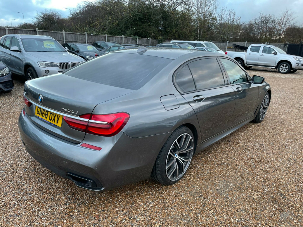 This 2018 BMW 7 Series 740Ld M Sport offers a refined driving experience with its powerful 3.0L diesel engine and four wheel drive system. As a Euro 6 compliant vehicle, it meets stringent emission standards. Inside, you'll find the luxurious BMW Individual Interior Trim Finisher in Piano Black, complemented by heated seats for both front and rear occupants. Enjoy the convenience of an electric glass sunroof, automatic headlights activated by a rain sensor, and enhanced Bluetooth telephone preparation with wireless charging for your devices. The generous boot space ensures practicality for all your needs.The performance of this 740Ld M Sport is truly impressive, achieving 0-62mph in just 5.3 seconds. This swift acceleration, combined with the advanced features and the sophisticated M Sport trim, sets this BMW apart from other vehicles in its class. It represents a compelling blend of dynamic capability, advanced technology, and premium comfort, making it an exceptional choice for discerning drivers.. 19in Alloy Wheels - Light Double-Spoke Style Bi-Colour - 647M, 20GB HDD Memory, Air Conditioning - Automatic with Four Zone Control, Airbags, Alarm System - Thatcham 1 with Remote Control and Engine Immobiliser, All Round Anti-Corrosion System with Partial Hot Galvanising - Phosphate Treatment and Cathodic Dip Paintwork - Preservation of Hollow Cavities - Underfloor Protection, Ambient Lighting, Anti Roll Bars - Front and Rear, Armrest - Front and Rear Centre, Automatically Dimming Rear View Mirror, BMW ConnectedDrive Online Services, BMW ConnectedDrive Services, BMW Display Key, BMW Emergency Call, BMW Gesture Control, BMW Professional Radio with Single CD Player - MP3 and DVD Playback Compatibility, BMW TeleServices, Battery in Luggage Compartment with Jump Start Facility in Engine Bay, Bootlid Operation - Powered, Brake Force Display, Child Seat ISOFIX Attachment for the Two Outer Rear Seats, Comfort Access with Smart Opener, Comfort Exit Stepless Door Brakes, Comfort Seats - Front, Comfort Seats - Rear, Concierge Service, Control Display - 10.25in Colour Display, Crash Sensor - Activating Central Locking Release - Hazard Warning Lights - Battery Safety Cut Off - Interior Lighting, Cruise Control with Brake Function, Cup Holders - Front x2 and Rear x2, DAB Digital Radio, DSC - Dynamic Stability Control - Stabilises the Vehicle in Extreme Situations - Controls Traction, Daytime Running Lights - LED, Deformation Zones - Front and Rear, Digital Cockpit, Door Sill Inlays - BMW M Designation Illuminated, Drive Performance Control, Driving Assistant, Dynamic Brake Lights with LED Technology, Dynamic Safety, EPS - Electric Power Steering with Servotronic, Electric Glass Sunroof, Electric Windows - Front and Rear with Open-Close Fingertip Control - Anti-Trap Facility and Comfort Closing Function, Electro-Mechanical Parking Brake with Auto-Hold Function, Engine Cover with TwinPower Turbo Designation, Enhanced Bluetooth Telephone Preparation with Wireless Charging, Exhaust Tailpipes - Single Quadrilateral Left and Right, Exterior Door Handle Illumination, Exterior Mirrors - Folding with Anti Dazzle, Exterior Trim - High Gloss Shadowline, Favourite Buttons, First Aid Kit and Warning Triangle, Floor Mats - Velour, Follow Me Home Headlight Function, Footwell Lights - Front and Rear, Glove Compartment - Lockable, Head Restraints - Front Anti-Whiplash, Headlining - Anthracite, Heated Windscreen Washer Jets, High-Beam Assistant, Instrument Panel - Leather, Interior Trim - Fineline Black Wood - High-Gloss with Metal Effect, LED Fog Lights - Front, LED Headlights, Locking Wheel Bolts, Loudspeaker System - BMW Advanced, Lumbar Support - Driver and Front Passenger, M Aerodynamic Bodystyling, M Designation on Front Side Panels - Left and Right, M Leather Steering Wheel, M Specific Key - Spare Remote Key Only, M Sport Package, Massage Function - Front, Multi-Functional Instrument Panel, Multifunction Controls for Steering Wheel, Navigation System - BMW Professional Multimedia, OBC - On-Board Computer, OBD - On Board Diagnosis, Oil Sensor For Level and Grade, PDC - Park Distance Control - Front and Rear, Power Sockets 12v - 2x Front - 2x Rear, Rain Sensor with Automatic Headlight Activation, Reading Lights - Front and Rear, Real Time Traffic Information, Rear Fog Light - LED, Remote Services, Reversing Assist Camera, Run Flat Tyres, Seat Belts - Front Inertia Reel with Pyrotechnical Belt Latch Tensioner - Belt Force Limiter and Belt Retainer, Seat Belts - Rear - Three with Inertia Reel, Seat Heating - Front and Rear, Seats - Front and Rear Electric Adjustment, Self-levelling Air Suspension - Rear, Side Impact Protection, Smokers Package, Soft Close - Tailgate, Soft Close Doors, Speed Limit Function, Sport Automatic Transmission, Steering Column - Electric Reach and Rake Adjustment with Memory, Sunblinds - Rear Windscreen - Electric, Suspension - 2-Axle Air, TPMS - Tyre Pressure Monitoring System, Two Tone Horn, VDC - Variable Damper Control, WiFi.