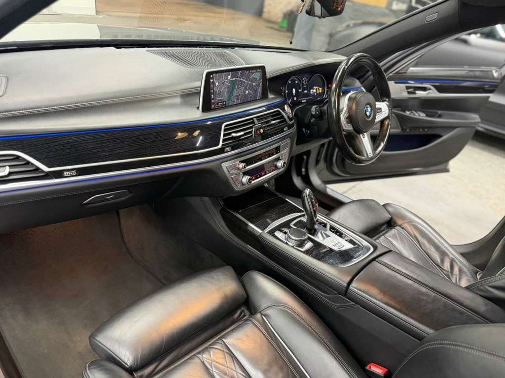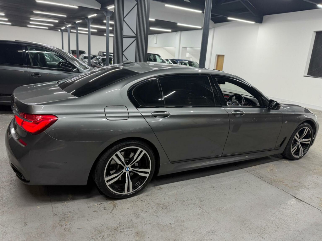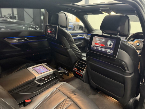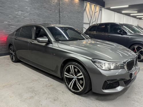 ELECTRIC GLASS SUNROOF, HEAD UP DISPLAY, HARMAN KARDON SOUND SYSTEM, HEATED STEERING WHEEL, REVERSE CAMERA, FULL HEATED LEATHER SEATS, MASSAGE SEATS, AMBIENT LIGHTING, MEMORY SEATS, TV FUNCTION, PARK ASSIST, LANE ASSIST, SUNBLINDS, , This 2018 BMW 740Ld M Sport presents a compelling proposition with its remarkably low mileage of just 55,550 miles for a vehicle of its age, complemented by a clear vehicle history check. This four wheel drive saloon, powered by a robust 3.0 litre Euro 6 diesel engine, showcases the distinguished M Sport trim. Inside, youll discover a wealth of premium features designed for comfort and convenience, including the Driving Assistant Plus package with adaptive cruise control, a heated steering wheel as part of the Premium Package, and a luxurious massage function for the rear seats. The advanced Head Up Display ensures vital information is always within your line of sight, while the Advanced Parking Package simplifies manoeuvring. Experience the dynamic performance of this 7 Series, capable of accelerating from 0 to 62mph in a swift 5.3 seconds, a testament to its powerful engine and refined engineering. This impressive acceleration, combined with the generous boot space, highlights how this BMW 740Ld M Sport offers a superior blend of exhilarating driving dynamics and practical utility compared to other vehicles in its class. VIEWING BY APPOINTMENT ONLY, FINANCE, WARRANTY, NATIONWIDE DELIVERY AVAILABLE!