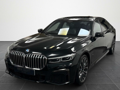 This 2020 BMW 745Le M Sport is a remarkable example of executive motoring, boasting a powerful 3.0L Petrol Plug-in Hybrid engine and a sophisticated Four Wheel Drive system. As a Euro 6 compliant vehicle, it offers an efficient and dynamic driving experience. The M Sport trim signifies its sporty character, enhanced by the inclusion of the Technology Plus Pack, which features Blind Spot Assistance, a Head Up Display, and a Rear Camera for parking. Further enhancing its appeal are the Visibility Pack with LED headlights, the Premium Package, the Technology Package also including a Rear Camera, and the Rear Seat Comfort Plus Package, which notably includes a Heated Steering Wheel.The performance of this 7 Series is truly impressive, with an acceleration of 0 to 62mph achieved in a swift 5.1 seconds. This rapid acceleration, combined with its advanced hybrid technology and all wheel drive capability, positions it as a superior choice for those seeking both performance and efficiency. The comprehensive suite of technology and comfort features, including the Head Up Display and advanced parking assistance, ensures every journey is both effortless and enjoyable, setting it apart from other vehicles in its class. chnology package, rear seat comfort package, premium package, 20in alloy wheels - m light star-spoke style 817m bi-colour with run-flat tyres, sun protection glazing, cd player, exclusive nappa leather - black with black world, visibility pack, technology plus pack, steering wheel - heated, rear seat comfort plus package, comfort plus package, 12v power sockets, 19in alloy wheels - light m double-spoke style bi-colour - 647m with run flat tyres, abs - anti lock braking system, active protection, air conditioning - automatic with four zone control, airbags - driver and passenger, ambient lighting, armrest - front, armrest - rear centre, automatic start-stop button, automatically dimming rear view mirror, bmw connected package professional, bmw connecteddrive online services, bmw display key, bmw emergency call, bmw gesture control, bmw icon adaptive led headlights, bmw live cockpit professional, bmw teleservices, bootlid operation - powered, brake pad wear indicator, carbon core - innovative lightweight construction with highly rigid and light carbon elements, centre console - rear, ceramic finish for controls, child seat isofix attachment for the two outer rear seats, climate comfort windscreen, comfort access with smart opener, comfort seats - front, condition based service, crash sensor, cruise control with brake function, cup holders - front x2 and rear x2, dab digital radio, dsc - dynamic stability control - stabilises the vehicle in extreme situations - controls traction, daytime driving lights - front and rear active, door sill finishers - bmw designation, drive recorder, driving experience control with adaptive mode, dynamic brake lights, dynamic damper control, dynamic safety, electric glass sunroof, electric windows - front and rear with open-close fingertip control - anti-trap facility and comfort closing function, electro-mechanical parking brake with auto-hold function, electronic engine immobiliser, enhanced bluetooth with wireless charging, exterior mirrors - folding with anti dazzle, exterior trim - high gloss shadowline, favourite buttons, first aid kit and warning triangle, floor mats - velour, footwell lights - front and rear, glove compartment, grab handles, head airbags - for first and second row seats, head restraints - front anti-whiplash, headlining - anthracite, headrests - active front, heat protection - sun protection glazing, heated windscreen washer jets, high-beam assistant, instrument panel - leather, integrated owners handbook, interior trim - fineline black wood - high-gloss with metal effect, kidney grille struts - front-side - chrome, lashing eyes in luggage compartment, lights-on warning, locking wheel bolts, loudspeaker system - harman kardon, m aerodynamic bodystyling, m sport leather steering wheel - three spoke, m sport package, mechanical childproof lock - rear doors, microfilter and active carbon filter, model logo, multi-functional instrument panel, non smoker package, obc - on-board computer, oil sensor for level and grade, pdc - park distance control - front and rear, parking assistant plus, personal profile, rain sensor and automatic driving lights control, reading lights - front and rear, rear decorative bumper moulding tailpipe in chrome, rear lights - led, roller sunblind for rear window - electric, run-flat indicator, seat belts - front, seat belts - rear - three with inertia reel, seat heating - front and rear, servotronic steering, side impact protection, soft close doors, speed limiter, standard charge cable - 13amp, stationary cooling-heating, steering column - adjustable, sun visors - front, suspension - 2-axle air, tpms - tyre pressure monitoring system, third brake light, three-point seat belts, two tone horn, welcome light, wifi hotspot preparation, edrive button, edrive exterior sound, edrive services, idrive controller