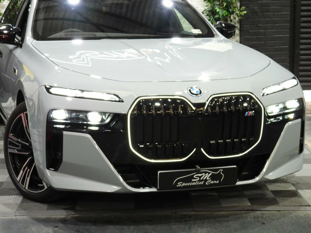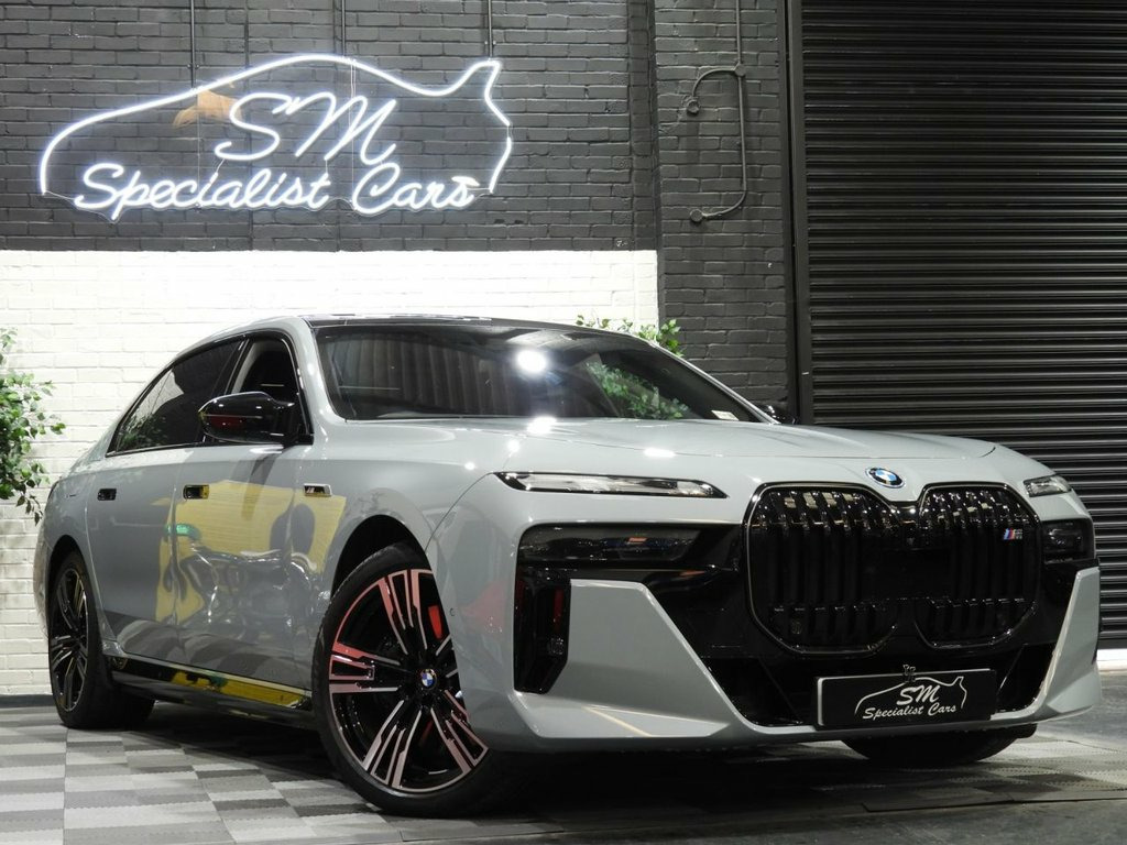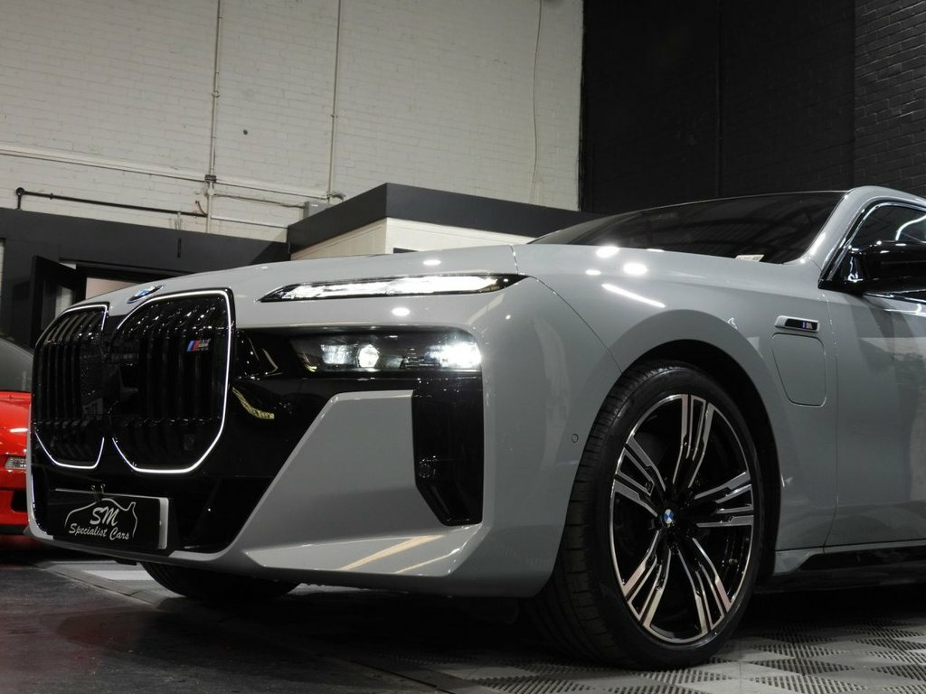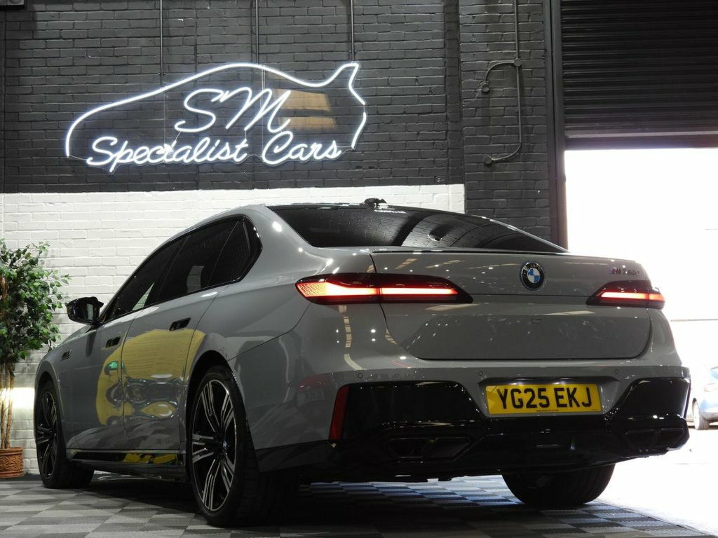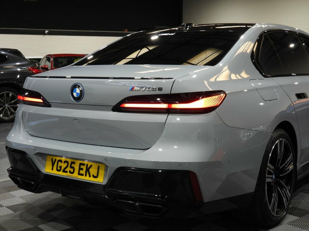 VAT QUALIFYING - This 2025 BMW 7 Series M760e presents a remarkable opportunity with only 5000 miles on the clock, having been owned by just one person. This plug in hybrid model boasts a powerful 3.0 litre petrol engine and a four wheel drive drivetrain, meeting the Euro 6 emission class. It comes equipped with the Ultimate Package, featuring LED headlights, a luxury branded sound system, an opening panoramic sunroof, and comprehensive parking assistance with front and rear sensors and a front camera. Further enhancing the driving experience are the Iconic Glow Crystal Headlights and automatic front and rear doors, complemented by the exceptional Bowers and Wilkins Surround Sound System. The M760e variant offers a truly elevated driving experience, highlighted by its impressive acceleration from 0 to 60 miles per hour in just 4.3 seconds, demonstrating its superior performance compared to other vehicles in its class. The inclusion of the Driving Assistant Professional package, with adaptive cruise control and advanced parking assistance, ensures both comfort and safety. Furthermore, the generous boot space provides practicality for everyday use and longer journeys, making this BMW 7 Series a well rounded and desirable vehicle. VAT QUALIFYING - 1 OWNER FROM NEW - ULTIMATE PACK - EVERY OPTION ON THIS VEHICLE - 21" Style 908 M Star-spoke Alloy Wheels | Ultimate Pack | Iconic Glow Kidney Grille | BMW Individual Interior | Front Massage Seats | Rear Massage Seats | Sky Loun 12V Power Socket - Front x2, 12V Power Socket - Rear x2, 21in Alloy Wheels - 908 M Star Spoke, 21in Alloy Wheels - 909 M Aero, ABS - Anti Lock Braking System including, Acoustic Protection for Pedestrians, Active Guard, Active Protection, Adaptive 2-Axle Air Suspension, Adaptive LED Headlights, Air Conditioning - Automatic with Four Z, Airbags - Central - Drivers Seat, Airbags - Front - Steering Wheel Rim-Dri, Airbags - Head - Front and Rear, Airbags - Side - Driver and Passenger, Alarm System, Ambient Light, Attentiveness Assistant, Automatic Front and Rear Doors, Automatic Tailgate, Badge - Front and Rear, BMW IconicSounds Electric, BMW ID, BMW iDrive, BMW Individual Interior World, BMW In