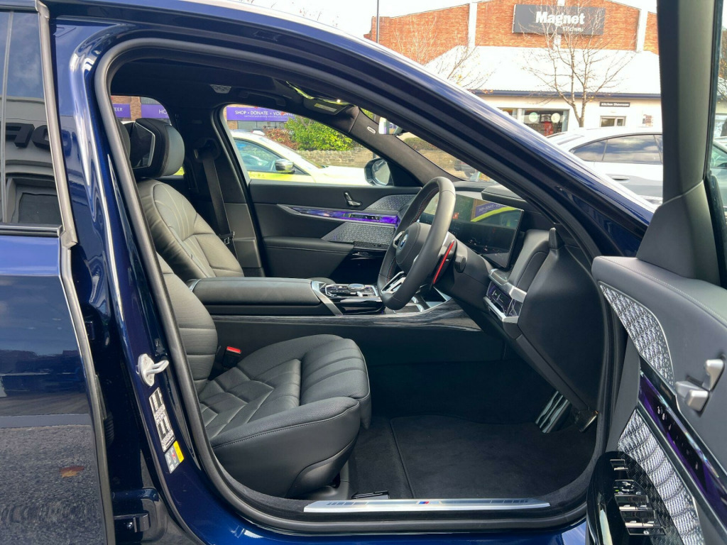 V A T Qualifying, 1 Owner Car, M760e Factory Options: Technology Plus Pack (Bowers & Wilkins Diamond Surround Sound Audio System, Driving Assistant Professional, Parking Assistant Professional) Front Comfort Pack (Front Ventilated and Massage Seats, Front and Rear Heat Comfort System), Skylounge Pack, Iconic Glow Crystal Headlights, Anthracite Alcantara Headlining, BMW Individual Merino Leather Interior in Black.Standard Specification: 21” 909M Aero Alloy Wheels, Adaptive 2-Axle Air Suspension, Soft Close Doors, Top View Camera with Reversing Camera and Drive Recorder, BMW Interaction Bar, Gesture Control, BMW IconicSounds Electric, Heated Front and Rear Seats, Comfort Access System, Wireless Charging Tray, Apple CarPlay and Android Auto, Ambient Lighting, Electric Front Seat Adjustment with Memory, Automatic Air Conditioning with Four-Zone Control, Adaptive Headlights with High-Beam Assistant, BMW Live Cockpit Professional, Sun Protection Glass, M Sport Brakes with Black Calipers, M Leather Steering Wheel, DAB Digital Radio, Brake Assist, Attentiveness Assistant, Driving Assistant, My Modes, Automatic Tailgate, Electric Steering Column, Rear Control Panels. Finished in Tanzanite Blue Metallic Paint. BMW Warranty Until 06/2028Panoramic Roof, Pan Roof, Pano Roof, Panorama Roof, Sunroof, Glass Roof. Tech Pack, Tech Package, Technology Package. Heated and Ventilated Seats, Climate Seats, Heated and Cooled Seats. Proudly No.1 in the UK for customer service in 2024, as awarded by AutoTrader. All our cars are HPI clear. Please contact us for your own personal video presentation of this particular car. We offer competitive finance rates with our in-house team from PCP, lease purchase and HP. Whilst we make every effort to ensure that the specification and technical information for the cars on our website is correct, some of it is supplied by third party providers and we cannot guarantee its accuracy. It is therefore important that you do not solely rely on this information.. 21” 909M Aero Alloy Wheels, Adaptive 2-Axle Air Suspension, Soft Close Doors, Top View Camera with Reversing Camera and Drive Recorder, BMW Interaction Bar, Gesture Control, BMW IconicSounds Electric, Heated Front and Rear Seats, Comfort Access System, Wireless Charging Tray, Apple CarPlay and Android Auto, Ambient Lighting, Electric Front Seat Adjustment with Memory, Automatic Air Conditioning with Four-Zone Control, Adaptive Headlights with High-Beam Assistant, BMW Live Cockpit Professional, Sun Protection Glass, M Sport Brakes with Black Calipers, M Leather Steering Wheel, DAB Digital Radio, Brake Assist, Attentiveness Assistant, Driving Assistant, My Modes, Automatic Tailgate, Electric Steering Column, Rear Control Panels, Finished in Tanzanite Blue Metallic Paint, BMW Warranty Until 06/2028, Technology Plus Pack, Front Comfort Pack, Skylounge Pack, Iconic Glow Crystal Headlights, Driving Assistant Professional, Headlining - Anthracite Alcantara, BMW Individual Merino Leather - Black.