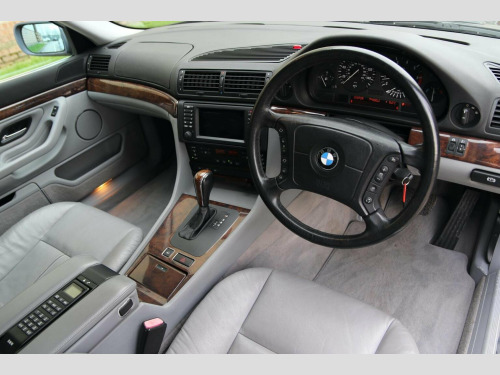 1999 BMW 740IL FINISHED OFF IN COSMOS BLACK METALLIC, FULL GREY LEATHER INTERIOR, THIRD ZONE CLIMATE CONTROL, ELECTRIC REAR SUN BLIND, REAR COMMUNICATION PACK, ELECTRIC RECLINING REAR SEATS, CHROME LINE INTERIOR PACK, 18 M PARALLEL WHEELS, SELF LEVELLING SUSPENSION, RUST FREE EXAMPLE.