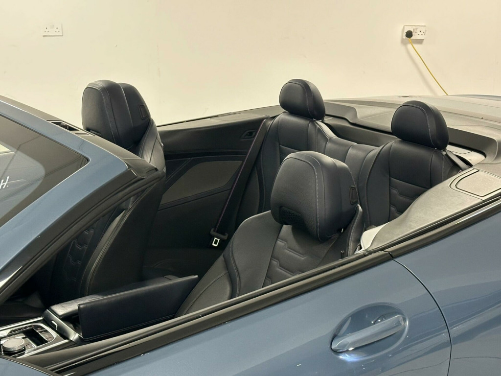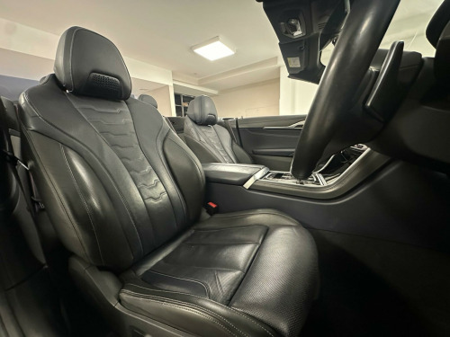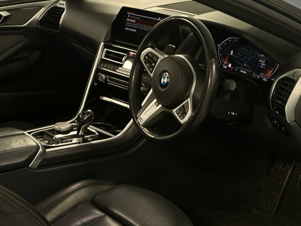 This 2019 BMW 8 Series 840d presents an exceptional opportunity with its remarkably low mileage of just 41,451 miles for its age. This impressive four wheel drive coupe is powered by a potent 3.0 litre diesel engine, meeting Euro 6 emission standards. Inside, you'll find the luxurious BMW Individual Extended Merino Leather in Night Blue Black, complemented by the Technology Package which includes adaptive cruise control and a 360 degree camera system for effortless parking. The M Sport Technic Package further enhances its appeal, while the comfort access system allows for convenient keyless entry.Experience exhilarating performance with the 840d's swift 0-62mph acceleration in just 5.2 seconds, a testament to its dynamic capabilities. This vehicle also boasts a generous boot space, offering practicality alongside its sophisticated design. The inclusion of parking assistant features, including a rear camera, ensures manoeuvring is made simple. These carefully selected features and its outstanding provenance indicate that this BMW 8 Series offers a superior driving experience compared to other vehicles in its class. v power socket - front x2, 20in alloy wheels - m light y-spoke 728m bicolour with run-flat tyres and mixed tyres, abs - anti lock braking system, active carbon microfilter, active guard, active protection, adaptive m suspension, air collar neck heating, air conditioning automatic with two-zone control, airbags, alarm system - thatcham 1 with remote control and engine immobiliser, ambient interior lighting - dynamic, armrest - front centre with storage compartment, bmw connected package professional, bmw connecteddrive online services, bmw connecteddrive professional, bmw display key, bmw icon adaptive led headlights, bmw legal emergency call, bmw live cockpit professional, bmw teleservices, bluetooth hands free with usb audio interface and voice control, brake pad wear indicator, central locking switch, check control warning system, child seat isofix attachment - rear, climate comfort windscreen, closing system with central locking, comfort access system, condition based service, crash sensor, cruise control with brake function, cup holders - front x2, dab digital radio, dsc - dynamic stability control - stabilises the vehicle in extreme situations - controls traction, dtc - dynamic traction control, double-wishbone front axle, drive experience control with sport - comfort - eco - pro and adaptive modes, dynamic brake lights, dynamic damper control, electric windows - front, electro-mechanical parking brake with auto-hold function, enhanced bluetooth telephone preparation with wireless charging, entry lights - front doors, exhaust tailpipe - finisher in chrome, exterior door handle illumination, exterior mirror housing - upper section in body colour with lower section in black, exterior mirrors - folding - heated - electrically adjustable, exterior trim - high gloss shadowline, favourite buttons, first aid kit and warning triangle, floor mats - velour, follow me home headlight function, front and rear bumper system with replaceable deformation elements, glove box, head-up display, headrests - active front, high level third brake light using led technology, high-beam assistant, instrument and upper door panels - leather-trimmed walknappa leather, integral active steering, integrated owners handbook, interior mirror - frameless, interior trim finisher - stainless steel fabric, keyless start, kidney grille - bright chrome, kidney struts - satinised aluminium, locking wheel bolts, loudspeaker system - harman kardon, m aerodynamics package, m designation on front side panels - left and right - chrome, m door sill finishers - illuminated, m pedals, m sport braking system, m sport package, model logo - tailgate - right, multifunctional sport seats - driver and front passenger, oil sensor for level and grade, pdc - park distance control - front and rear, parking assistant, rain sensor with automatic headlight activation, reading lights - front, rear lights - led, reversing assist camera, rollover protection system, run-flat indicator, run-flat tyres, seat adjustment - front electric with driver memory, seat belts - front - three-point with pyrotechnical belt latch tensioner - belt force limiter and belt stopper, seat belts - rear - three-point with pyrotechnical belt latch tensioner and belt force limiter, seat heating - front, seats - 50-50 split folding rear, servotronic steering, side impact protection, soft-top - black, speed limiting function, sport automatic transmission, steering column with adjustable height and length - activation via lateral lever on steering column, steering wheel - gearshift paddles, steering wheel - m leather multifunction, sun visors with illuminated vanity mirrors, tpms - tyre pressure monitoring system, tailgate operation - powered, thermally insulated windscreen, two tone horn, vehicle key with m-specific designation, welcome light - interior and handle area, wifi hotspot preparation, windscreen washer jets - heated, idrive touch controller with shortcut buttons, xdrive designation on tailgate - left, technology package, m sport technic package, visibility pack, premium package, bmw individual high-gloss shadowline with extended contents, m seat belts, bmw individual interior trim finisher - piano black, 20in alloy wheels - m light y-spoke 728m jet black with performance tyres and mixed tyres, m sport differential, tyre repair kit, bmw individual extended merino leather - night blue-black