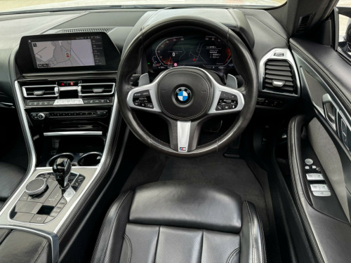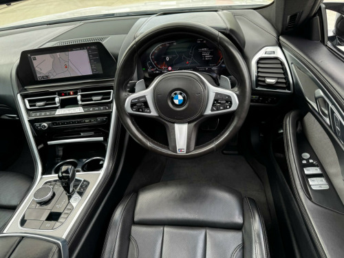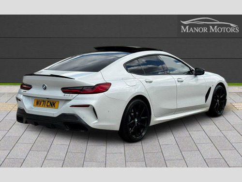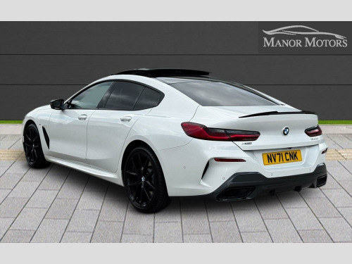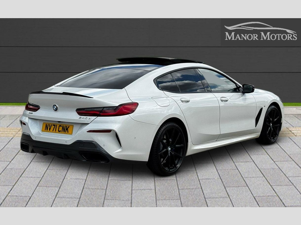 ONE OWNER FROM NEW FULL BMW SERVICE HISTORY Serviced @ @ 18 miles on 20.12.2021 By BMW Main Dealer @ 21,750 miles on 04.10.2022 By BMW Main Dealer @ 42,129 miles on 23.05.2023 By BMW Main Dealer @ 63,359 miles on 18.01.2024 By BMW Main Dealer @ 83,600 miles on 30.09,2024 By BMW Mian Dealer @ 88,495 miles on 12.12.20224 By BMW Main Dealer 2x KEYS PANORAMIC ROOF, HARMAN KARDON SOUND, REVERSE CAMERA, HETAED FRONT & REAR SEATS, HIGH BEAM ASIST, CRUISE CONTROL, FRONT & REAR PARKING SENORS, With only one previous owner and a full dealership service history, this 2021 BMW 8 Series Gran Coupe 840d M Sport is a superb example of a performance vehicle. The M Sport trim adds a touch of sporty sophistication to this four-wheel-drive car, which is powered by a 3.0L Diesel Hybrid engine and meets Euro 6 emission standards. Enjoy the luxury of the panoramic glass sunroof, which includes an opening function, and the distinctive style of the 20-inch M Light Y-Spoke 728M Jet Black alloy wheels, complete with run-flat and mixed tyres. Manoeuvring is made easy with Integral Active Steering and Parking Assistant Plus, which includes a 360-degree camera and front and rear parking sensors. Both front and rear passengers can enjoy the comfort of heated seats. A clear vehicle history check provides additional peace of mind.The BMW 8 Series Gran Coupe combines luxury with performance, accelerating from 0 to 62mph in just 5.0 seconds. This impressive acceleration demonstrates how this vehicle delivers a thrilling driving experience. The advanced parking assistance features, including front and rear cameras, offer enhanced safety and convenience.