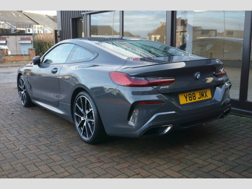 This 2019 BMW 8 Series 840d boasts a full service history, offering peace of mind for its next owner. This impressive four wheel drive model is powered by a 3.0L diesel engine and meets Euro 6 emission standards. Inside, you'll find the luxurious BMW Individual Extended Merino Leather in Night Blue Black, complemented by automatic two zone climate control. The BMW Live Cockpit Professional provides seamless connectivity with Bluetooth, a Head Up Display, and USB audio interface, while voice control and hands free calling ensure convenience. Parking is made effortless with the Parking Assistant, including a rear camera.Experience exhilarating performance with the 840d's rapid 0-62mph acceleration in just 4.9 seconds, a testament to its powerful engine and advanced drivetrain. This capability, combined with its spacious boot, positions it as a superior choice for those seeking both dynamic driving and practicality. The comprehensive specification and meticulous servicing history further underscore the quality and desirability of this exceptional BMW.. 12V Power Socket - Front x2, 20in Alloy Wheels - M Light Y-Spoke 728M Bicolour with Run-Flat Tyres and Mixed Tyres, ABS - Anti Lock Braking System, Active Carbon Microfilter, Active Guard, Active Protection, Adaptive M Suspension, Air Conditioning Automatic with Two-Zone Control, Airbags, Alarm System - Thatcham 1 with Remote Control and Engine Immobiliser, Ambient Interior Lighting - Dynamic, Armrest - Front Centre with Storage Compartment, BMW Connected Package Professional, BMW ConnectedDrive Online Services, BMW ConnectedDrive Professional, BMW Display Key, BMW Icon Adaptive LED Headlights, BMW Individual Headliner - Anthracite, BMW Legal Emergency Call, BMW Live Cockpit Professional, BMW TeleServices, Bluetooth Hands Free with USB Audio Interface and Voice Control, Brake Pad Wear Indicator, Central Locking Switch, Check Control Warning System, Child Seat ISOFIX Attachment - Rear, Climate Comfort Windscreen, Closing System with Central Locking, Comfort Access System, Condition Based Service, Crash Sensor, Cruise Control with Brake Function, Cup Holders - Front x2, DAB Digital Radio, DSC - Dynamic Stability Control - Stabilises the Vehicle in Extreme Situations - Controls Traction, DTC - Dynamic Traction Control, Double-Wishbone Front Axle, Drive Experience Control with Sport - Comfort - Eco - Pro and Adaptive Modes, Dynamic Brake Lights, Dynamic Damper Control, Electric Windows - Front, Electro-Mechanical Parking Brake with Auto-Hold Function, Enhanced Bluetooth Telephone Preparation with Wireless Charging, Entry Lights - Front Doors, Exhaust Tailpipe - Finisher in Chrome, Exterior Door Handle Illumination, Exterior Mirror Housing - Upper Section in Body Colour with Lower Section in Black, Exterior Mirrors - Folding - Heated - Electrically Adjustable, Exterior Trim - High Gloss Shadowline, Favourite Buttons, First Aid Kit and Warning Triangle, Floor Mats - Velour, Follow Me Home Headlight Function, Front and Rear Bumper System with Replaceable Deformation Elements, Glove Box, Head-Up Display, Headlining - M Anthracite, Headrests - Active Front, High Level Third Brake Light Using LED Technology, High-Beam Assistant, Instrument and Upper Door Panels - Leather-Trimmed Walknappa Leather, Integral Active Steering, Integrated Owners Handbook, Interior Mirror - Frameless, Interior Trim Finisher - Stainless Steel Fabric, Keyless Start, Kidney Grille - Bright Chrome, Kidney Struts - Satinised Aluminium, Locking Wheel Bolts, Loudspeaker System - Harman Kardon, M Aerodynamics Package, M Designation on Front Side Panels - Left and Right - Chrome, M Door Sill Finishers - Illuminated, M Pedals, M Rear Spoiler - Body Colour, M Sport Braking System, M Sport Package, Model Logo - Tailgate - Right, Multifunctional Sport Seats - Driver and Front Passenger, Oil Sensor For Level and Grade, PDC - Park Distance Control - Front and Rear, Parking Assistant, Rain Sensor with Automatic Headlight Activation, Reading Lights - Front, Rear Lights - LED, Reversing Assist Camera, Run-Flat Indicator, Run-Flat Tyres, Seat Adjustment - Front Electric with Driver Memory, Seat Belts - Front - Three-Point with Pyrotechnical Belt Latch Tensioner - Belt Force Limiter and Belt Stopper, Seat Belts - Rear - Three-Point with Pyrotechnical Belt Latch Tensioner and Belt Force Limiter, Seat Heating - Front, Seats - 50-50 Split Folding Rear, Servotronic Steering, Side Impact Protection, Speed Limiting Function, Sport Automatic Transmission, Steering Column with Adjustable Height and Length - Activation via Lateral Lever on Steering Column, Steering Wheel - Gearshift Paddles, Steering Wheel - M Leather Multifunction, Sun Visors with Illuminated Vanity Mirrors, TPMS - Tyre Pressure Monitoring System, Tailgate Operation - Powered, Thermally Insulated Windscreen, Two Tone Horn, Vehicle Key with M-Specific Designation, Welcome Light - Interior and Handle Area, WiFi Hotspot Preparation, Windscreen Washer Jets - Heated, iDrive Touch Controller with Shortcut Buttons, xDrive Desi. Full service history