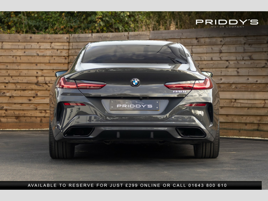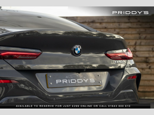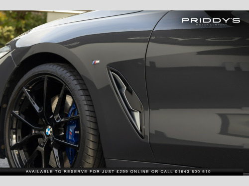 Amazing spec. Impeccable history. True GT elegance. , This BMW 8 Series Gran Coupé 840i M Sport perfectly captures what makes BMWs flagship four-door so special — refined, beautifully balanced, and clearly cherished from day one. Finished to a stunning standard and supported by an impeccable maintenance record, its the kind of example that instantly feels right the moment you see it. , , , Presented by Priddys Motor Company, , Priddys Motor Company are delighted to present this beautifully maintained BMW 8 Series Gran Coupé 3.0 840i M Sport, showing just 41,635 miles and accompanied by an exceptional service history. Maintained exclusively by BMW main dealers and highly regarded specialists, its most recent service was carried out at 41,635 miles by PMC in August 2025. , , , Specification & Highlights, , With its BMW Individual Extended Merino Leather interior, Harman Kardon sound system, heated seats front and rear, four-zone climate control, and Head-Up Display, this 840i balances performance and refinement perfectly. Elegant, composed, and effortlessly capable, this is one of those rare examples that feels completely dialled in. , , , Driving Experience, , Under the bonnet sits BMWs 3.0-litre TwinPower Turbo petrol engine producing 333 hp through the Steptronic automatic transmission. Its smooth, quiet, and deceptively quick — effortless acceleration with that signature BMW composure. The chassis balance is near-perfect, with direct steering and beautifully judged damping that make it equally satisfying on a B-road or a long motorway run. , , , Interior & Technology, , Inside, the 8 Series delivers understated luxury. Finished in BMW Individual Black Merino Leather with a Black headliner, the cabin feels impeccably built and deeply comfortable. Harman Kardon audio, Head-Up Display, reverse camera, heated front and rear seats, four-zone climate control, and memory seats for both driver and passenger combine to make this an indulgent yet focused environment. , , Service Record, , 27.07.2021 – BMW – Pre-delivery inspection, , 07.03.2023 – Deepdale BMW Specialist – Oil & inspection, , 14.03.2024 – Deepdale BMW Specialist – Rear brakes, , 17.05.2024 – Deepdale BMW Specialist – Oil, inspection, plugs, pollen, air, , 05.07.2024 – Deepdale BMW Specialist – Brake fluid & front brakes, , 21.02.2025 – BMW Main Dealer– Oil, , 18.08.2025 – PMC – Inspection, , , An exceptional service record that reflects genuine care and attention from new. Every interval handled properly by trusted hands, ensuring the car feels mechanically strong and exceptionally well maintained throughout. , , , Summary, , A sophisticated, petrol-powered 8 Series Gran Coupé that delivers presence, refinement, and purpose in equal measure. With its outstanding history, graceful design, and assured performance, this example stands proudly as one of the best-balanced GTs on the market — a car that feels as rewarding to drive as it is to own. , BMW 840i Gran Coupé – Pure performance, timeless sophistication. , , , , Why Buy from Priddys Motor Company, , , Excellence isnt optional — its standard.