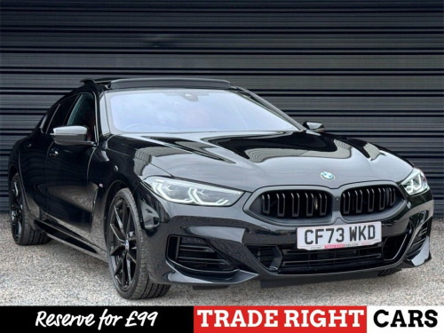 JUST ARRIVED & READY TO DRIVE AWAY! 2024/73 BMW 8 Series Gran Coupe 3.0 M-Sport [Pan Roof] finished in Black Sapphire. We are pleased to offer this lovely 4 door petrol gran-coupe. This is the highly desirable 3.0 litre model with an 8 speed automatic transmission that offers 328 BHP and 0-60 in 5.4 seconds. It has covered just 17,501 miles and drives as you would expect. The first service has been completed by BMW @ 12,801 miles. The BMW manufacturers warranty is valid until 11th February 2027 alongside the date the for vehicles first MOT. The car is ready to drive away. We will also include a complimentary 12 month AA breakdown cover. Euro 6 status - ULEZ compliant. One former keeper. A superb low mileage example with the highly sought-after and upgraded M-Sport specification. This car features £7,275 of factory-fitted optional extras. Highlights include; sliding panoramic glass roof, 360 camera system with parking assistant plus, 'Crafter Clarity' gear selector & dials, HUD - heads up display, M-Sport package pro, 20" 728 M alloy wheels, BMW individual two-tone extended merino leather, sun protection glass, Harman Kardon and front/rear heated seats. Please let us know if you would like any further information or a video sent via WhatsApp. Extended Merino Leather - Tartufo-Black, BMW Individual Full Merino Leather - Fio, 20in Alloy Wheels - M Light Y-Spoke 728M, 12V Power Socket - Front x2, 20in Alloy Wheels - M Light Y-Spoke 728M, Active Protection, Adaptive M Suspension, Air Conditioning - Automatic with Four Z, Airbags - Driver and Front Passenger, Airbags - Passenger Deactivation, Airbags - Side - Driver and Passenger, Alarm System, Ambient Light, Armrest - Front, Automatic Start-Stop Button, BMW Connected Package Professional, BMW ConnectedDrive Services, BMW Emergency Call, BMW ID, BMW Live Cockpit Professional, BMW TeleServices, Brake Assist, Brake Pad Wear Indicator, Brake System, Bumper System, Carbon Core, Centre Loc