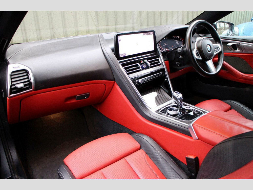 20 ALLOYS - M SPORT PRO PACKAGE - 2022 22 registered this BMW 840i M Sport Steptronic is presented in Skyscraper Grey Metallic, complemented by extended Merino leather upholstery in Fiona Red and Black with just 25,000 miles from new and only one previous owner. Offered for sale is an exceptionally well specified 840i offering unmistakable M Sport presence. The exterior is enhanced by the M Aerodynamics package, M Sport Pro package, M Sport differential and 20 M double-spoke bi-colour alloy wheels. Further visual highlights include the BMW Kidney Iconic Glow grille, M Lights Shadow Line, high-gloss Shadow Line exterior trim, sun protection glazing and a subtle M rear spoiler. Illumination and visibility are exceptional, courtesy of the Visibility Package incorporating BMW Laserlights with high-beam assistant, alongside active pedestrian protection and a climate comfort windscreen. The interior is a showcase of modern BMW luxury and driver-focused design. Carbon fibre interior trim, anthracite headlining, M seat belts and the M leather steering wheel create a sporting yet indulgent environment. Comfort is further enhanced by heated front seats, Comfort Access, glass application CraftedClarity controls and the Parking Assistance System. Technology and connectivity are comprehensive, with BMW Live Cockpit Professional, Connected Package Professional, ConnectedDrive Services, telephony with wireless charging, WLAN hotspot, DAB functionality via BMW Live Operating Area Professional, and Teleservices. Fully prepared to exacting standards, this BMW 840i represents exceptional value for money when compared with a cost new price in excess of £80,000. With its outstanding specification, striking colour combination, and immaculate presentation, it offers a compelling opportunity to acquire a modern luxury GT with genuine performance credentials.