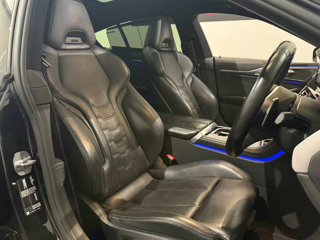 This 2021 BMW 8 Series Gran Coupe 840i M Sport boasts a clear vehicle history, offering peace of mind alongside its impressive performance. This Euro 6 compliant model features a powerful 3.0L petrol engine and is presented in the sporty M Sport trim. Inside, you'll find a wealth of premium features designed to enhance your driving experience, including a Panoramic Glass Sunroof that floods the cabin with light, and BMW Icon Adaptive LED Headlights for superior visibility. Parking is made easier with a Rear View Camera, while the Enhanced Bluetooth with Wireless Charging keeps you connected and powered up on the go. For an immersive audio experience, the vehicle is equipped with a Loudspeaker System from Harman Kardon.The 840i M Sport variant stands out with its dynamic capabilities, achieving 0-62mph in a swift 5.4 seconds, demonstrating its athletic prowess. This acceleration figure indicates a more responsive and engaging drive compared to many vehicles in its class. Furthermore, its placement in a low insurance group makes it a more economical choice for owners, highlighting its overall value and appeal. v power socket - front x2, 20in alloy wheels - m light y-spoke 728m bicolour with run-flat tyres and mixed tyres, abs - anti lock braking system, active guard, active protection, adaptive m suspension, air conditioning - automatic with four zone control, airbags, alarm system - thatcham 1 with remote control and engine immobiliser, ambient interior lighting - dynamic, armrests, bmw connecteddrive professional, bmw connecteddrive services, bmw icon adaptive led headlights, bmw legal emergency call, bmw live cockpit professional, bmw teleservices, bluetooth hands free with usb audio interface and voice control, brake pad wear indicator, carbon core - innovative lightweight construction with highly rigid and light carbon elements, central locking switch, check control warning system, child seat isofix attachment - rear, climate comfort windscreen, closing system with central locking, comfort access system, condition based service, crash sensor, cruise control with brake function, cup holders - front x2, dab digital radio, dsc - dynamic stability control - stabilises the vehicle in extreme situations - controls traction, dtc - dynamic traction control, double-wishbone front axle, drive experience control with sport - comfort - eco - pro and adaptive modes, dynamic brake lights, dynamic damper control, electric windows - front, electro-mechanical parking brake with auto-hold function, enhanced bluetooth with wireless charging, entry lights - front doors, exhaust tailpipe - finisher in chrome, exterior door handle illumination, exterior mirror housing - upper section in body colour with lower section in black, exterior mirrors - folding - heated - electrically adjustable, exterior trim - high gloss shadowline, favourite buttons, floor mats - velour, follow me home headlight function, front and rear bumper system with replaceable deformation elements, glove compartment - lockable with light, head-up display, headlining - m anthracite, headrests - active front, high level third brake light using led technology, high-beam assistant, instrument and upper door panels - leather-trimmed walknappa leather, integrated owners handbook, interior mirror - frameless, interior trim finisher - stainless steel fabric, keyless start, kidney grille - bright chrome, kidney struts - satinised aluminium, locking wheel bolts, loudspeaker system - harman kardon, m aerodynamics package, m designation on front side panels - left and right - chrome, m door sill finishers - illuminated, m pedals, m sport braking system, m sport differential, m sport package, microfilter and active carbon filter, model logo - tailgate - right, multifunctional sport seats - driver and front passenger, oil sensor for level and grade, pdc - park distance control - front and rear, parking assistant, rain sensor with automatic headlight activation, reading lights - front, rear lights - led, rear view camera, run-flat indicator, run-flat tyres, seat adjustment - front electric with driver memory, seat belts - front - three-point with pyrotechnical belt latch tensioner - belt force limiter and belt stopper, seat belts - rear - three-point with pyrotechnical belt latch tensioner and belt force limiter, seat heating - front and rear, seats - 50-50 split folding rear, servotronic steering, side impact protection, speed limiting function, sport automatic transmission, steering column with adjustable height and length - activation via control on the steering column, steering wheel - m leather multifunction, sun visors with illuminated vanity mirrors, tpms - tyre pressure monitoring system, tailgate operation - powered, two tone horn, vehicle key with m-specific designation, warning triangle, welcome light - interior and handle area, wifi hotspot preparation, windscreen washer jets - heated, idrive touch controller with shortcut buttons, xdrive designation on tailgate - left, bmw individual extended merino leather - cognac-black, panoramic glass sunroof