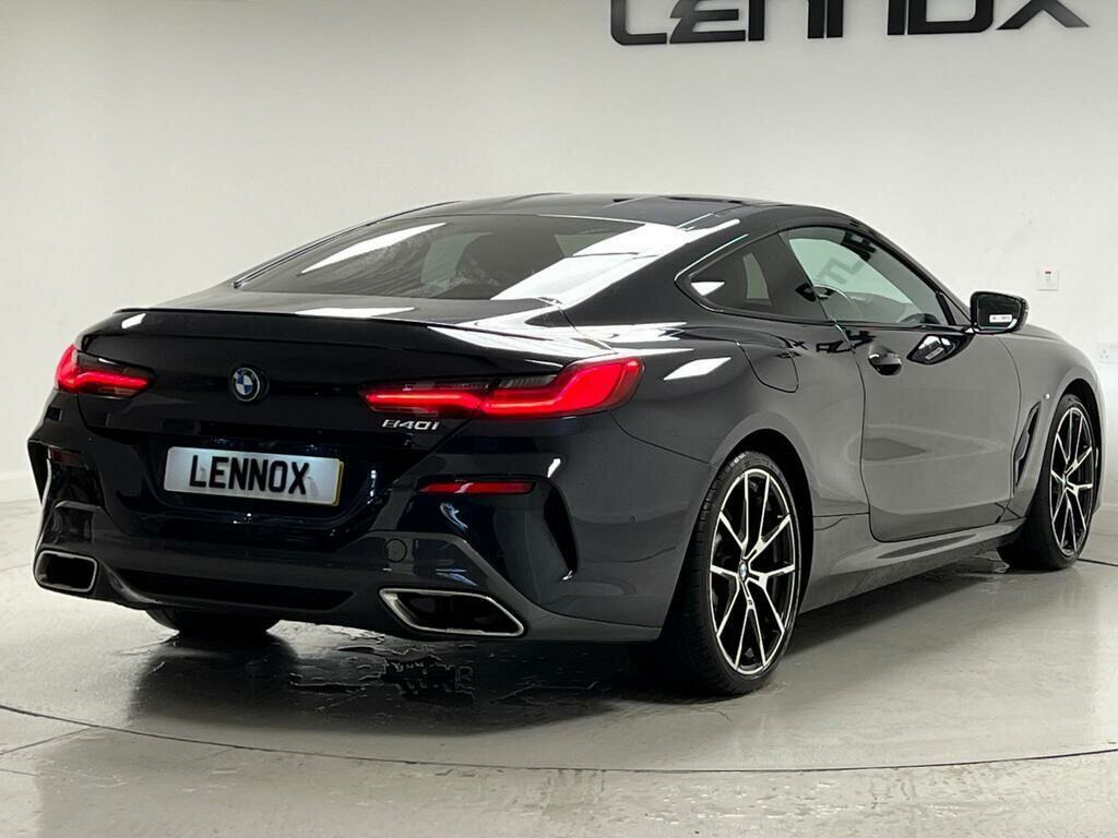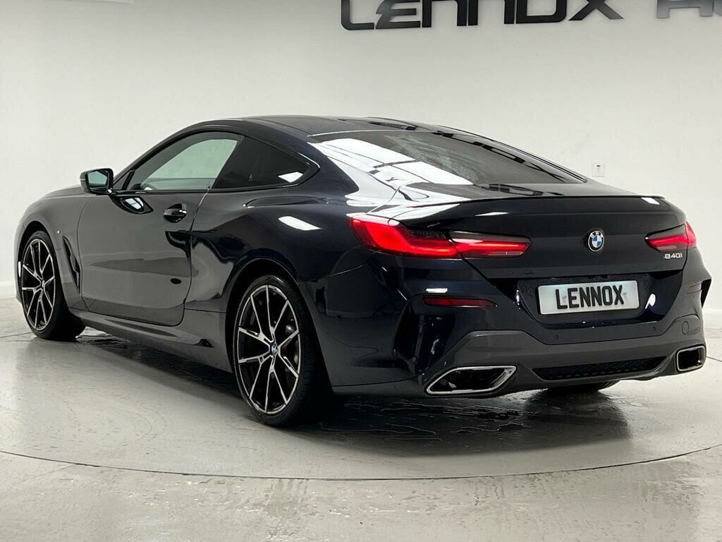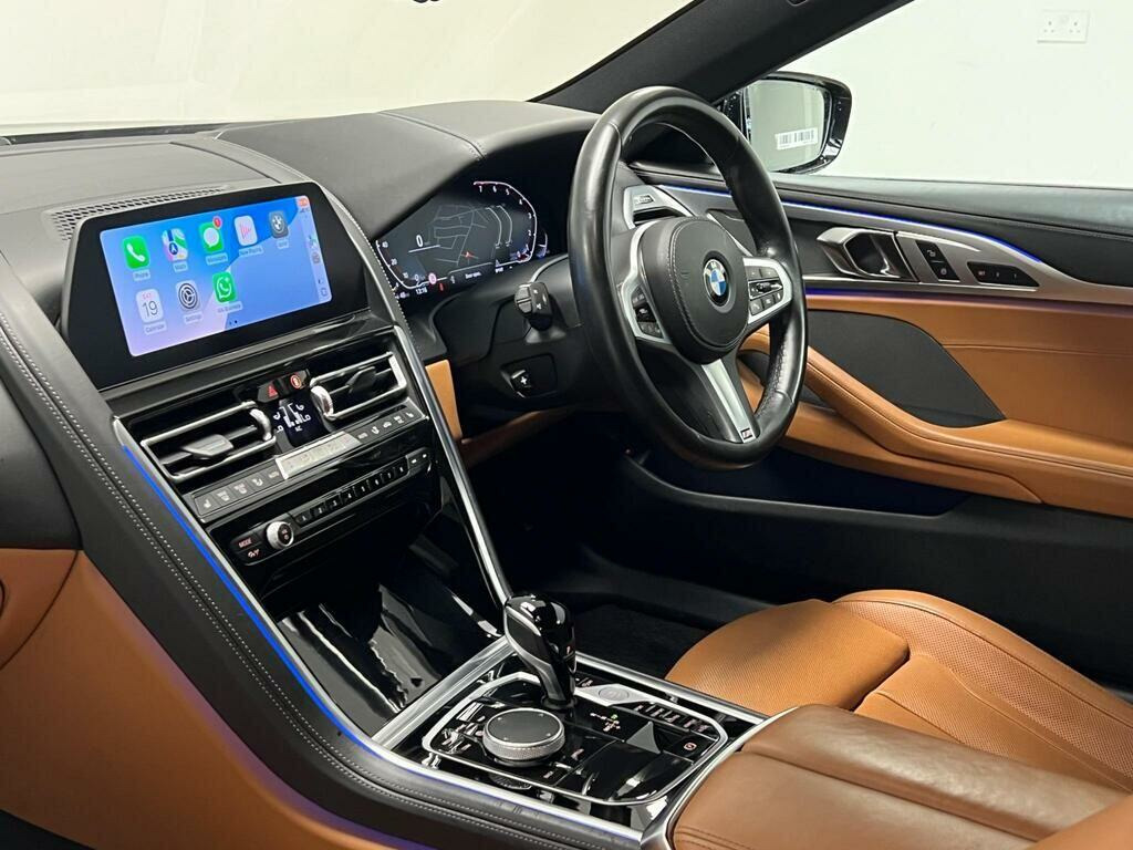 This 2020 BMW 8 Series 840i is a truly exceptional example, having been cherished by just one owner from new and boasting remarkably low mileage of only 25,445 miles. Under the bonnet lies a potent 3.0 litre petrol engine, compliant with Euro 6 emissions standards, offering a refined driving experience. This impressive coupe also features BMW Icon Adaptive LED Headlights for superior visibility, a Rain Sensor with Automatic Headlight Activation, and the convenient Comfort Access System for keyless entry.Further enhancing your journeys, this 8 Series is equipped with a Parking Assistant complete with a rear camera, making manoeuvring effortless. You can also enjoy an immersive audio experience thanks to the Loudspeaker System by Harman Kardon. With a fuel economy of 34 mpg, low CO2 emissions, and a low insurance group, this vehicle represents excellent value. Additionally, its generous boot space ensures practicality for all your needs, making it a standout choice compared to other vehicles in its class. n protection glazing, bmw individual interior trim finisher - piano black, bmw individual extended merino leather - cognac-black, 12v power socket - front x2, 20in alloy wheels - m light y-spoke 728m bicolour with run-flat tyres and mixed tyres, abs - anti lock braking system, active guard, active protection, adaptive m suspension, air conditioning automatic with two-zone control, airbags, alarm system - thatcham 1 with remote control and engine immobiliser, ambient interior lighting - dynamic, armrests, bmw connecteddrive online services, bmw connecteddrive professional, bmw display key, bmw icon adaptive led headlights, bmw individual headliner - anthracite, bmw legal emergency call, bmw live cockpit professional, bmw teleservices, bluetooth hands free with usb audio interface and voice control, brake pad wear indicator, carbon core - innovative lightweight construction with highly rigid and light carbon elements, central locking switch, check control warning system, child seat isofix attachment - rear, climate comfort windscreen, closing system with central locking, comfort access system, condition based service, crash sensor, cruise control with brake function, cup holders - front x2, dab digital radio, dsc - dynamic stability control - stabilises the vehicle in extreme situations - controls traction, dtc - dynamic traction control, double-wishbone front axle, drive experience control with sport - comfort - eco - pro and adaptive modes, dynamic brake lights, dynamic damper control, electric windows - front, electro-mechanical parking brake with auto-hold function, enhanced bluetooth with wireless charging, entry lights - front doors, exhaust tailpipe - finisher in chrome, exterior door handle illumination, exterior mirror housing - upper section in body colour with lower section in black, exterior mirrors - folding - heated - electrically adjustable, exterior trim - high gloss shadowline, favourite buttons, first aid kit and warning triangle, floor mats - velour, follow me home headlight function, front and rear bumper system with replaceable deformation elements, glove compartment - lockable with light, head-up display, headlining - m anthracite, headrests - active front, high level third brake light using led technology, high-beam assistant, instrument and upper door panels - leather-trimmed walknappa leather, integrated owners handbook, interior mirror - frameless, interior trim finisher - stainless steel fabric, keyless start, kidney grille - bright chrome, kidney struts - satinised aluminium, locking wheel bolts, loudspeaker system - harman kardon, m aerodynamics package, m designation on front side panels - left and right - chrome, m door sill finishers - illuminated, m pedals, m rear spoiler - body colour, m sport braking system, m sport differential, m sport package, microfilter and active carbon filter, model logo - tailgate - right, multifunctional sport seats - driver and front passenger, oil sensor for level and grade, pdc - park distance control - front and rear, parking assistant, rain sensor with automatic headlight activation, reading lights - front, rear lights - led, rear view camera, run-flat indicator, run-flat tyres, seat adjustment - front electric with driver memory, seat belts - front - three-point with pyrotechnical belt latch tensioner - belt force limiter and belt stopper, seat belts - rear - three-point with pyrotechnical belt latch tensioner and belt force limiter, seat heating - front, seats - 50-50 split folding rear, servotronic steering, side impact protection, speed limiting function, sport automatic transmission, steering column with adjustable height and length - activation via control on the steering column, steering wheel - m leather multifunction, sun visors with illuminated vanity mirrors, tpms - tyre pressure monitoring system, tailgate operation - powered, thermally insulated windscreen, two tone horn, vehicle key with m-specific designation, welcome light - interior and handle area, wifi hotspot preparation, windscreen washer jets - heated, idrive touch controller with shortcut buttons