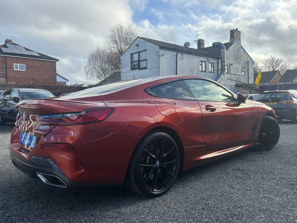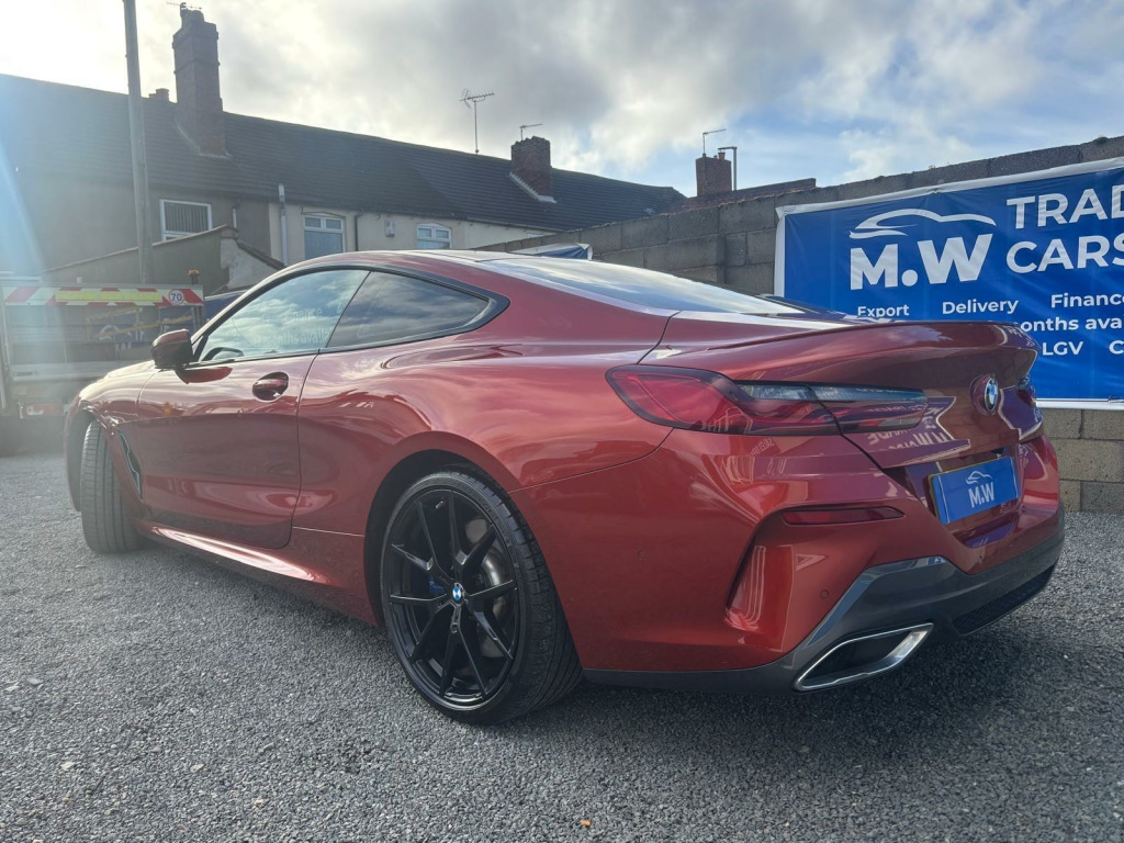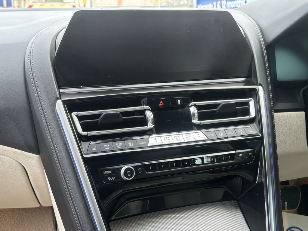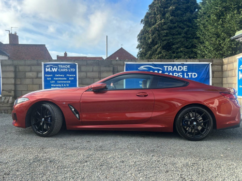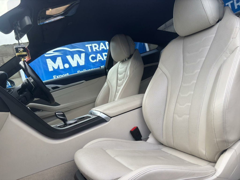 FULL BMW SERVICE HISTORY,FULL LEATHER INTERIOR,HEATED SEATS,HEDS UP DISPLAY,PARKING CAMERA, HARMAN KARDON SOUND SYSTEM,LOADS OF EXTRAS,Boasting a full dealership service history and only two previous owners, this 2020 BMW 8 Series 840i presents a compelling proposition. Powered by a smooth 3.0 litre petrol engine, this Euro 6 compliant vehicle offers an impressive 34 miles per gallon. Its MOT is valid until December 2026, providing peace of mind for the road ahead. Inside, you'll find a host of convenient features including electric front seat adjustment with driver memory, automatic two zone climate control, and a rear view camera complemented by front and rear park distance control for effortless manoeuvring. The automatic headlight activation with rain sensor ensures optimal visibility in all conditions.This BMW 8 Series stands out with its low CO2 emissions, contributing to a more environmentally conscious drive. Furthermore, its low insurance group rating means more affordable ownership, while the generous boot space ensures practicality for everyday needs and longer journeys. These highlights demonstrate how this particular vehicle offers a superior ownership experience compared to others in its class.FINANCE OPTIONS AVAILABLE REPRESENTATIVE EXAMPLE 9.7 APR, WE ARE A CREDIT BROKER NOT A LENDER FOR FURTHER INFORMATION PLEASE NAVIGATE TO OUR WEBSITE www. mwtradecarsltd.co.uk AND CLICK ON THE FINANCE TAB. OR CONTACT US ON 01384861237. w individual extended merino leather - ivory white-ivory white, 12v power socket - front x2, 20in alloy wheels - m light y-spoke 728m bicolour with run-flat tyres and mixed tyres, abs - anti lock braking system, active guard, active protection, adaptive m suspension, air conditioning automatic with two-zone control, airbags, alarm system - thatcham 1 with remote control and engine immobiliser, ambient interior lighting - dynamic, armrests, bmw connecteddrive online services, bmw connecteddrive professional, bmw display key, bmw icon adaptive led headlights, bmw individual headliner - anthracite, bmw legal emergency call, bmw live cockpit professional, bmw teleservices, bluetooth hands free with usb audio interface and voice control, brake pad wear indicator, carbon core - innovative lightweight construction with highly rigid and light carbon elements, central locking switch, check control warning system, child seat isofix attachment - rear, climate comfort windscreen, closing system with central locking, comfort access system, condition based service, crash sensor, cruise control with brake function, cup holders - front x2, dab digital radio, dsc - dynamic stability control - stabilises the vehicle in extreme situations - controls traction, dtc - dynamic traction control, double-wishbone front axle, drive experience control with sport - comfort - eco - pro and adaptive modes, dynamic brake lights, dynamic damper control, electric windows - front, electro-mechanical parking brake with auto-hold function, enhanced bluetooth with wireless charging, entry lights - front doors, exhaust tailpipe - finisher in chrome, exterior door handle illumination, exterior mirror housing - upper section in body colour with lower section in black, exterior mirrors - folding - heated - electrically adjustable, exterior trim - high gloss shadowline, favourite buttons, first aid kit and warning triangle, floor mats - velour, follow me home headlight function, front and rear bumper system with replaceable deformation elements, glove compartment - lockable with light, head-up display, headlining - m anthracite, headrests - active front, high level third brake light using led technology, high-beam assistant, instrument and upper door panels - leather-trimmed walknappa leather, integrated owners handbook, interior mirror - frameless, interior trim finisher - stainless steel fabric, keyless start, kidney grille - bright chrome, kidney struts - satinised aluminium, locking wheel bolts, loudspeaker system - harman kardon, m aerodynamics package, m designation on front side panels - left and right - chrome, m door sill finishers - illuminated, m pedals, m rear spoiler - body colour, m sport braking system, m sport differential, m sport package, microfilter and active carbon filter, model logo - tailgate - right, multifunctional sport seats - driver and front passenger, oil sensor for level and grade, pdc - park distance control - front and rear, parking assistant, rain sensor with automatic headlight activation, reading lights - front, rear lights - led, rear view camera, run-flat indicator, run-flat tyres, seat adjustment - front electric with driver memory, seat belts - front - three-point with pyrotechnical belt latch tensioner - belt force limiter and belt stopper, seat belts - rear - three-point with pyrotechnical belt latch tensioner and belt force limiter, seat heating - front, seats - 50-50 split folding rear, servotronic steering, side impact protection, speed limiting function, sport automatic transmission, steering column with adjustable height and length - activation via control on the steering column, steering wheel - m leather multifunction, sun visors with illuminated vanity mirrors, tpms - tyre pressure monitoring system, tailgate operation - powered, thermally insulated windscreen, two tone horn, vehicle key with m-specific designation, welcome light - interior and handle area, wifi hotspot preparation, windscreen washer jets - heated, idrive touch controller with shortcut buttons