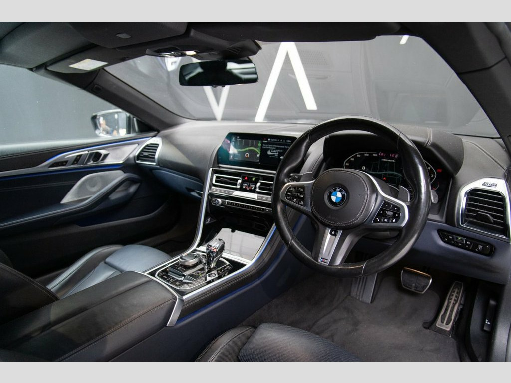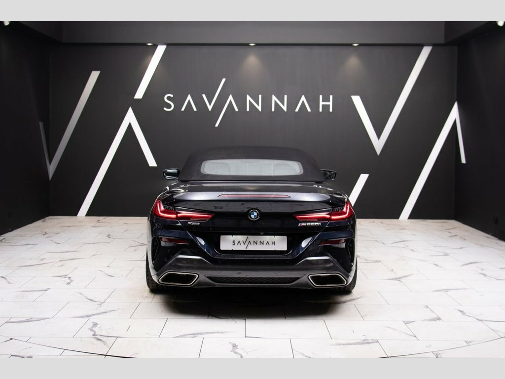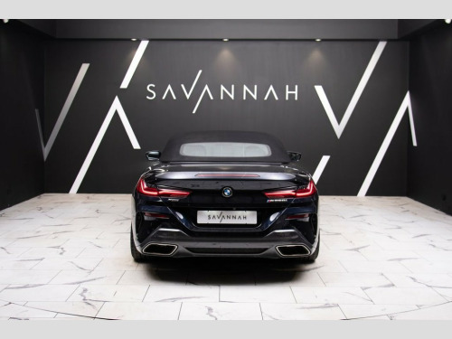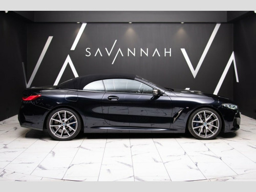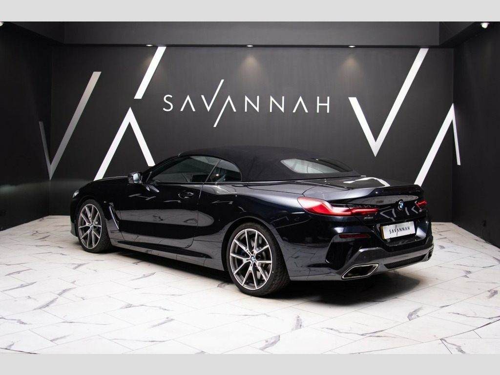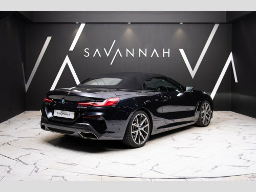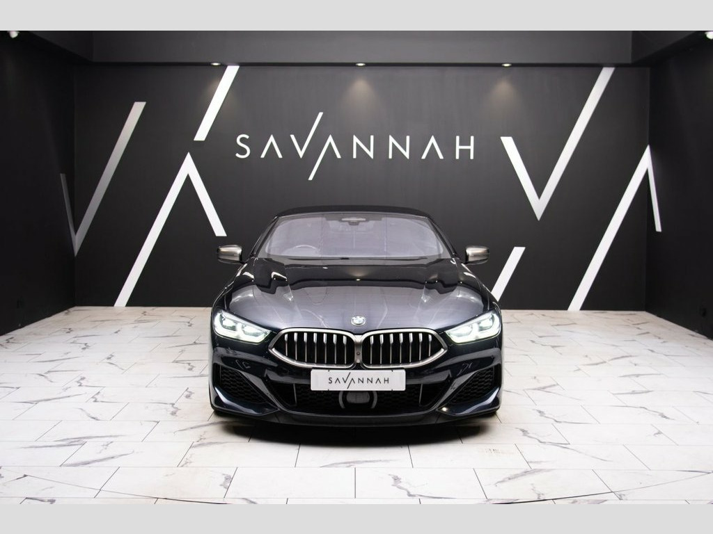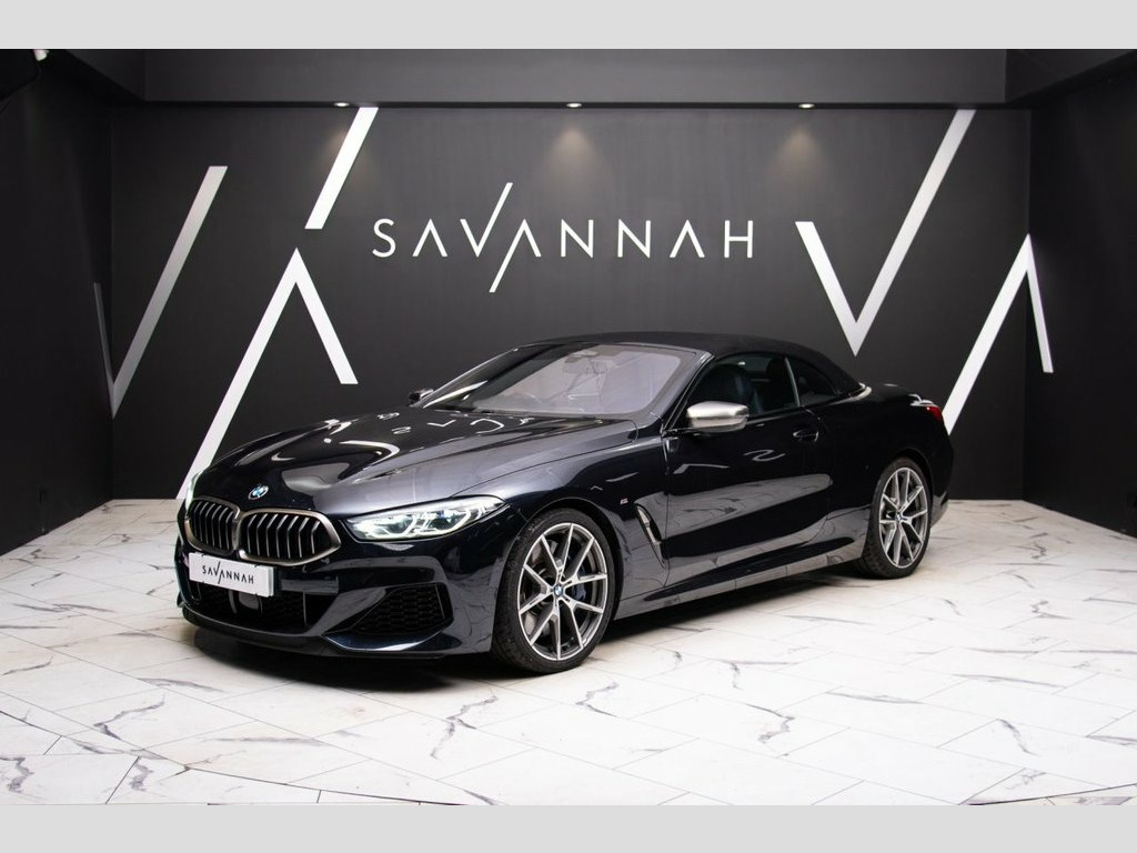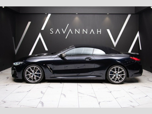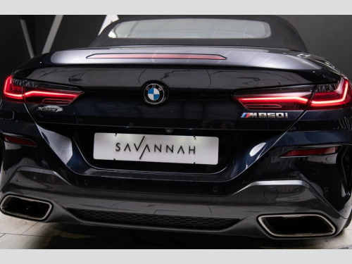 BMW 8 SERIES 4.4 M850i V8 Convertible 2dr Petrol Steptronic xDrive Euro 6 (s/s) (530 ps) combines breathtaking performance with open-top luxury, presented in elegant Carbon Black with a Black soft-top roof and striking 20in M Light Y-Spoke alloys in Cerium Grey. Beneath its sculpted exterior with M Aerodynamics Package, Adaptive M Suspension, M Sport Differential, and Sport Exhaust System ensure a thrilling yet composed drive, while BMW Icon Adaptive LED Headlights, High-Beam Assistant, and Parking Assistant with Reversing Camera enhance confidence on the road. Inside, the BMW Individual Extended Merino Leather in Night Blue-Black with Piano Black trim and CraftedClarity glass controls delivers a bespoke, high-end ambience, complemented by Multifunctional Sport Seats with Air Collar neck heating, Ambient Interior Lighting, and Harman Kardon audio – further elevated by the Bowers & Wilkins Diamond Surround Sound System. Advanced technology features include the Head-Up Display, BMW Live Cockpit Professional, Enhanced Bluetooth with Wireless Charging, WiFi Hotspot Preparation, Comfort Access, and Drive Experience Control with multiple driving modes, ensuring both connectivity and comfort align with the M850i's dynamic capability. 20in Alloy Wheels - M Light Y-Spoke 728M, 12V Power Socket - Front x2, 20in Alloy Wheels - M Light Y-Spoke 728M, ABS - Anti Lock Braking System, Active Carbon Microfilter, Active Guard, Active Protection, Adaptive M Suspension, Air Breather - Cerium Grey, Air Collar Neck Heating, Air Conditioning Automatic with Two-Zone, Airbags, Alarm System - Thatcham 1 with Remote Co, Ambient Interior Lighting - Dynamic, Armrest - Front Centre with Storage Comp, BMW Connected Package Professional, BMW ConnectedDrive Online Services, BMW ConnectedDrive Professional, BMW Display Key, BMW Icon Adaptive LED Headlights, BMW Legal Emergency Call, BMW Live Cockpit Professional, BMW TeleServices, Bluetooth Hands