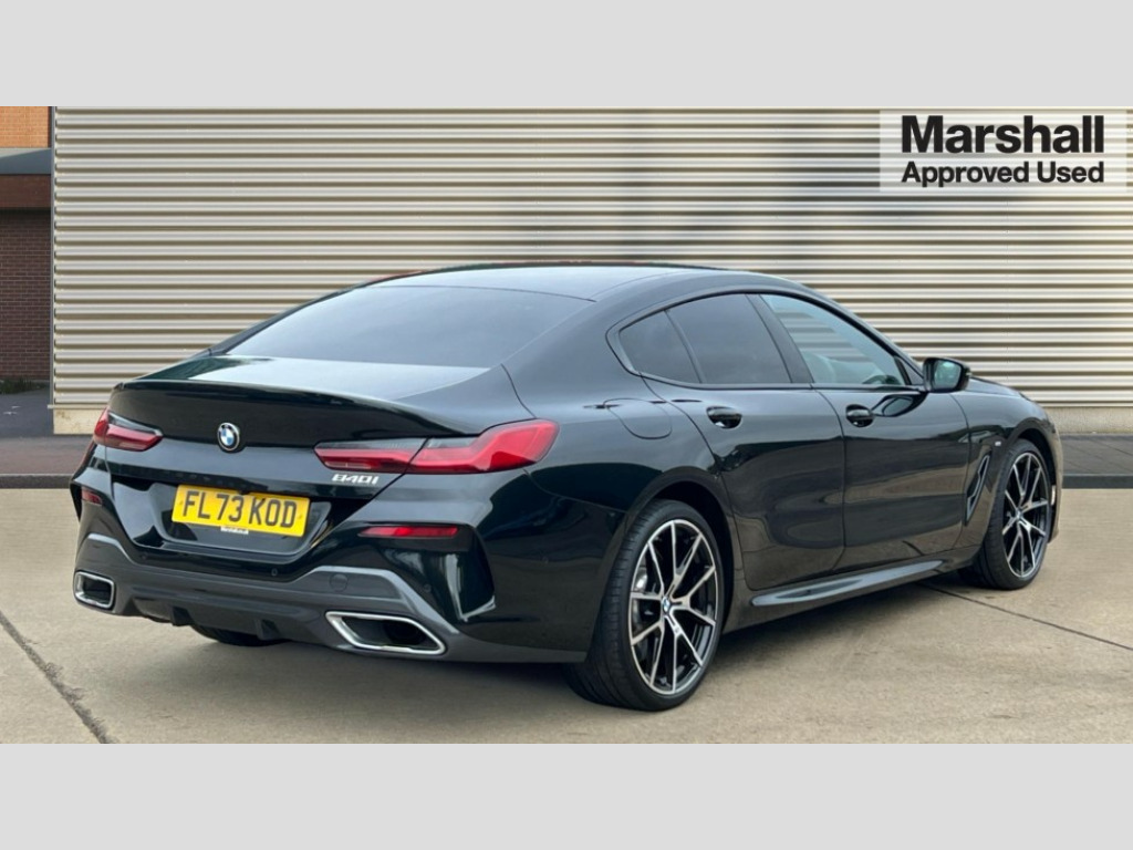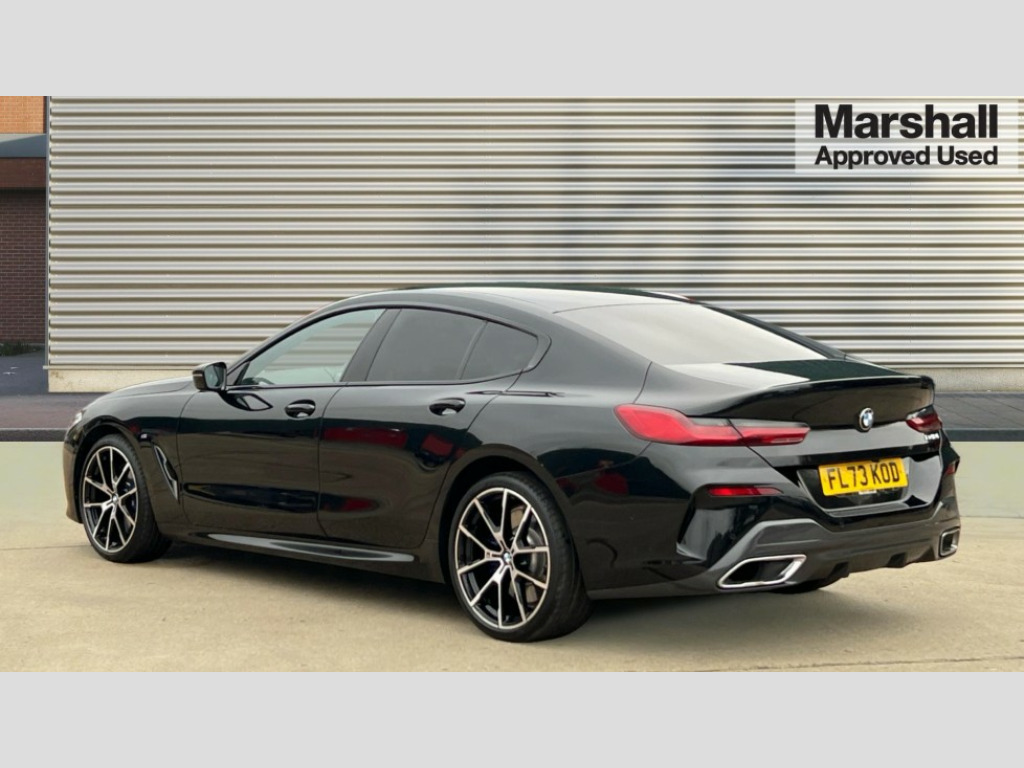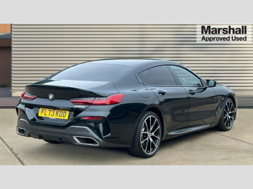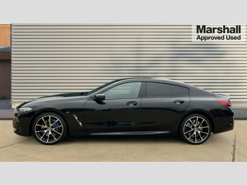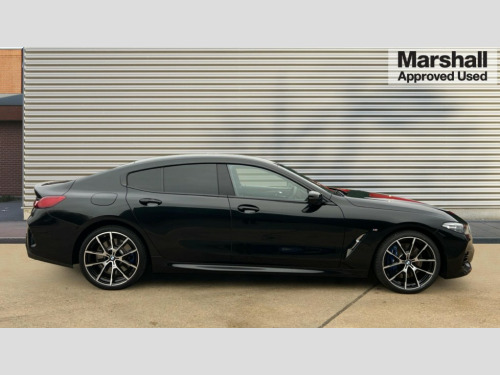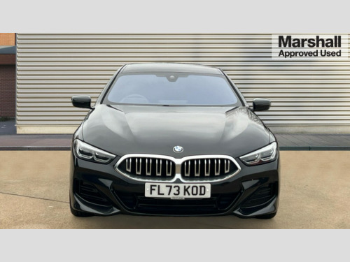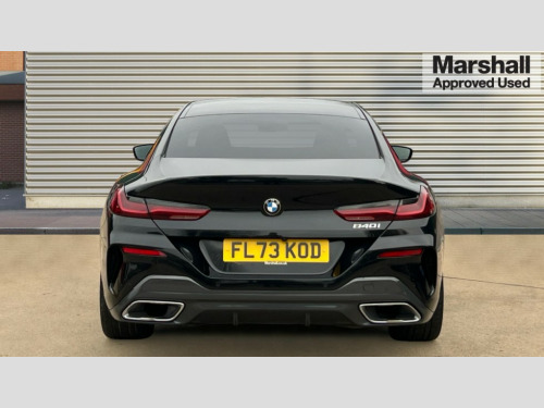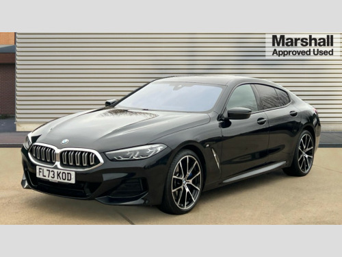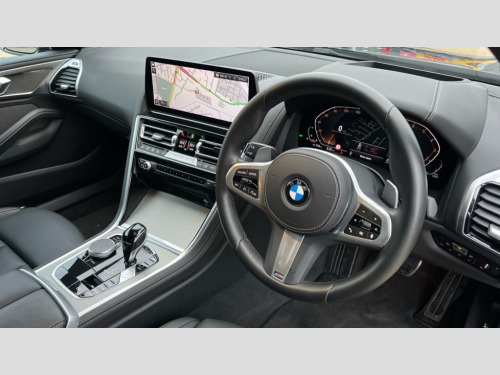 BMW 8 Series 840i M Sport 4dr Auto Automatic tailgate operation, remote opening with key, closing by tailgate button or remote control including tailgate in LED technology, Bluetooth hands free facility with USB audio interface, voice control and enhanced bluetooth + Wireless charging, BMW ConnectedDrive online services, BMW legal emergency call, BMW Teleservices, Brake pad wear indicator, Check control system, Condition based service, Drive experience control with Sport, Comfort, Eco Pro and Adaptive modes, Electric bootlid, Head up Display, iDrive controller with shortcut buttons, Instrument and upper door panel in walknappa leather, Integrated owners handbook, Light on warning, Oil sensor for level and grade, On board computer, Outside temperature display, Run flat indicator, Service interval indicator, Servotronic system, Speed limiter, Wi-Fi hotspot, Adaptive M suspension, Double wishbone front axle, Dynamic Damper Control, Eight speed sport automatic transmission, M Sport differential, Petrol Particulate Filter, Sport exhaust system, DAB Digital radio, Favourite buttons, Air breather inlay in pearl chrome, frame in black high gloss, Automatic windscreen wipers and automatic headlight, Carbon core, Climate comfort windscreen, Daytime driving lights front and rear active, Dynamic brake lights, Exterior mirrors - Floating design mirror, electric adjust/heated/folding, aspherical, Follow me home headlight function, Frameless interior mirror, Front and rear bumper system with replaceable deformation elements, Front electric windows, Front ornamental grille with kidney grille bars, Heat protection, sun protection glazing, Heated rear window, glass, Heated windscreen washer jets, High beam assistant, Illuminated door handles, Illuminated radiator grille iconic glow, LED rear lights, M emblem on front side panel in light chrome, Model logo on right tailgate, Radiator grille frame in pearl chrome, Radiator grille struts in aluminium matt, Rain sensor and automatic driving lights control, Rear boot, Rear side wing doors, sDrive designation on left tailgate, Sun protection glass, Thermally insulated windscreen, Third LED technology brake light in rear window, Welcome lights in interior and door handle area, Window frame and mirror base in black high gloss, 2 cup holders in front, 2 rear head restraints, 2 X front 12v power sockets, 3 spoke M sport leather multifunction steering wheel with shift paddle, 4 zone control automatic air conditioning, 5 seats, 50/50 split folding rear seat, Ambient light with dynamic interior light, BMW ID, Front and rear seat heating, Front centre armrest with light, 12V socket and USB and storage compartment, Front door pockets, Front entry lights doors, Front reading lights, Front sun visors with ticket holder and illuminated mirror, Interior lighting - Interior light front centre above interior mirror,luggage compartment light,automatic interior light system soft on/soft off, Lashing eyelets, Lockable glove compartment with light, Microfilter and active carbon filter, Steering column with adjustable height and length and activation via control on the steering column, Through loading function, BMW Live cockpit professional pack - 8 Series, Connected professional pack - 8 Series, Exterior items pack - 8 Series, M sport exterior styling aerodynamics pack - 8 Series, 18" M Sport braking system with blue painted brake calipers, 3x3 point rear seatbelts, ABS/EBD, Active protection, Airbags - Driver and front passenger airbag with seat occupancy detection, knee, side and front passenger seat airbag deactivation, Brake discs, compound structure, Child locks on rear doors, Cornering brake control (CBC), Crash sensor activating central locking release, hazard warning lights, fuel cut off, interior lighting, safety battery terminal clamp and airbags, DSC - Dynamic Stability Control, Dynamic brake control, Dynamic Traction Control - DTC, Electromechanical parking brake with automatic drive away release and auto hold function, Front three point with pyrotechnical belt latch tensioner seat belts, belt force limiter and belt stopper, Head airbags for 1st and 2nd seat row, Hill start assist, Integrated brake system, ISOFIX child seat mounting for the two outer rear seats, Rear three point with pyrotechnical belt latch tensioner seat belts and belt force limiter, Side impact protection, Tyre pressure monitoring system (TPMS), Warning triangle and first aid kit, Alarm system (Thatcham 1) with electronic engine immobiliser, Centre lock switch, Closing system with central locking, Comfort access system, Keyless entry with start/stop button, Locking wheel bolts, Vehicle key with exclusive M designation