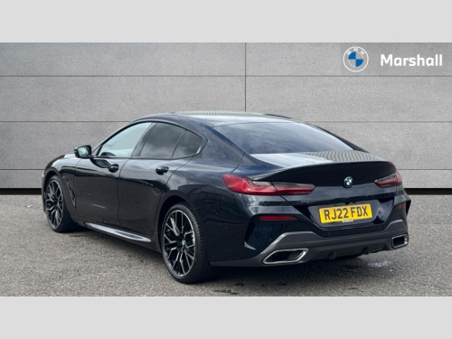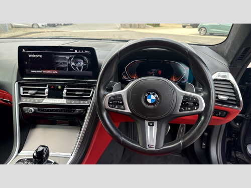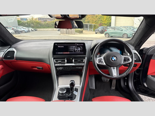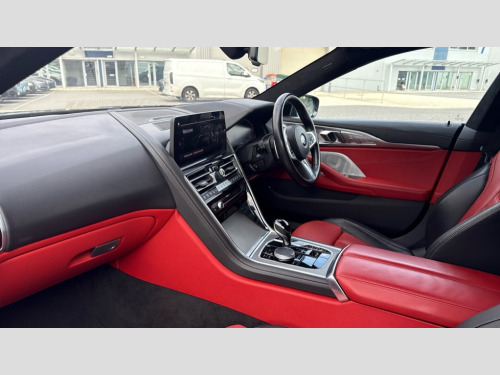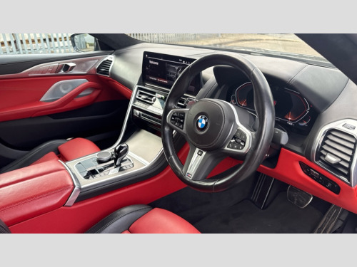 BMW 8 Series 840i M Sport 4dr Auto Automatic tailgate operation, remote opening with key, closing by tailgate button or remote control including tailgate in LED technology, Bluetooth hands free facility with USB audio interface, voice control and enhanced bluetooth + Wireless charging, BMW ConnectedDrive online services, BMW legal emergency call, BMW Teleservices, Brake pad wear indicator, Check control system, Condition based service, Drive experience control with Sport, Comfort, Eco Pro and Adaptive modes, Electric bootlid, Head up Display, iDrive controller with shortcut buttons, Instrument and upper door panel in walknappa leather, Integrated owners handbook, Light on warning, Oil sensor for level and grade, On board computer, Outside temperature display, Run flat indicator, Service interval indicator, Servotronic system, Speed limiter, Wi-Fi hotspot, Adaptive M suspension, Double wishbone front axle, Dynamic Damper Control, Eight speed sport automatic transmission, M Sport differential, Petrol Particulate Filter, Sport exhaust system, DAB Digital radio, Favourite buttons, Air breather inlay in pearl chrome, frame in black high gloss, Automatic windscreen wipers and automatic headlight, Carbon core, Climate comfort windscreen, Daytime driving lights front and rear active, Dynamic brake lights, Exterior mirrors - Floating design mirror, electric adjust/heated/folding, aspherical, Follow me home headlight function, Frameless interior mirror, Front and rear bumper system with replaceable deformation elements, Front electric windows, Front ornamental grille with kidney grille bars, Heated rear window, glass, Heated windscreen washer jets, High beam assistant, Illuminated door handles, LED rear lights, M emblem on front side panel in light chrome, Model logo on right tailgate, Radiator grille frame in pearl chrome, Radiator grille struts in aluminium matt, Rain sensor and automatic driving lights control, Rear boot, Rear side wing doors, sDrive designation on left tailgate, Sun protection glass, Thermally insulated windscreen, Third LED technology brake light in rear window, Welcome lights in interior and door handle area, Window frame and mirror base in black high gloss, 2 cup holders in front, 2 rear head restraints, 2 X front 12v power sockets, 3 spoke M sport leather multifunction steering wheel with shift paddle, 4 zone control automatic air conditioning, 5 seats, 50/50 split folding rear seat, Ambient light with dynamic interior light, BMW ID, Front and rear seat heating, Front centre armrest with light, 12V socket and USB and storage compartment, Front door pockets, Front entry lights doors, Front reading lights, Front sun visors with ticket holder and illuminated mirror, Interior lighting - Interior light front centre above interior mirror,luggage compartment light,automatic interior light system soft on/soft off, Lashing eyelets, Lockable glove compartment with light, Microfilter and active carbon filter, Steering column with adjustable height and length and activation via control on the steering column, Through loading function, BMW Live cockpit professional pack - 8 Series, Connected professional pack - 8 Series, Exterior items pack - 8 Series, M sport exterior styling aerodynamics pack - 8 Series, 18" M Sport braking system with blue painted brake calipers, 3x3 point rear seatbelts, ABS/EBD, Active protection, Airbags - Driver and front passenger airbag with seat occupancy detection, knee, side and front passenger seat airbag deactivation, Brake discs, compound structure, Child locks on rear doors, Cornering brake control (CBC), Crash sensor activating central locking release, hazard warning lights, fuel cut off, interior lighting, safety battery terminal clamp and airbags, DSC - Dynamic Stability Control, Dynamic brake control, Dynamic Traction Control - DTC, Electromechanical parking brake with automatic drive away release and auto hold function, Front three point with pyrotechnical belt latch tensioner seat belts, belt force limiter and belt stopper, Head airbags for 1st and 2nd seat row, Hill start assist, Integrated brake system, ISOFIX child seat mounting for the two outer rear seats, Rear three point with pyrotechnical belt latch tensioner seat belts and belt force limiter, Side impact protection, Tyre pressure monitoring system (TPMS), Warning triangle and first aid kit, Alarm system (Thatcham 1) with electronic engine immobiliser, Centre lock switch, Closing system with central locking, Comfort access system, Keyless entry with start/stop button, Locking wheel bolts, Vehicle key with exclusive M designation