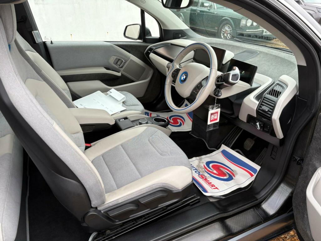 Discover this 2018 BMW i3, a superb example of electric motoring. This model boasts a 33 kWh battery, offering a maximum range of 186 miles when new, making it ideal for both city commutes and longer journeys. Charging is convenient, with a full charge at home using a 7kW charger taking approximately 5 hours and 15 minutes. For quicker top ups, a rapid public charger can replenish the battery from empty to 80% in just 40 minutes. Inside, you'll find the sophisticated Interior World Loft, featuring Electronic Cloth Sensatec Synthetic Leather in Carum Spice Grey, complemented by a Glass Sunroof and an Auxiliary Cabin Heating System for year round comfort. Entertainment is elevated by the Loudspeaker System from Harman Kardon and Online Entertainment.Experience the responsive performance of this BMW i3, with its impressive 0 to 62 mph acceleration achieved in just 7.3 seconds. This quick acceleration demonstrates its advanced electric powertrain, setting it apart from many other vehicles in its class. The combination of its efficient electric drive, generous range, and rapid charging capabilities, alongside its premium interior features and dynamic performance, makes this 2018 BMW i3 a compelling choice for those seeking a modern and capable electric vehicle.. 12V Power Socket - Centre Console, 19in Alloy Wheels - i Light Streamline Star-Spoke Style - 427, 2.4 kW AC Charging, 5.7in Colour TFT Display - Instrument Cluster, AC Fast Charge - Multi Phase Preparation, Active Differential Brake - ADB Sport - Electronic Differential Lock in DSC-Off Mode, Additional 12V Power Socket in Right-Hand Side of Boot, Additional Detachable Cupholder, Air Conditioning - Automatic - Single Zone, Airbags, Alarm System, Armrest - Front Centre Foldable with Integrated Storage Compartment, BMW ConnectedDrive Online Services, BMW ConnectedDrive Services and Applications, BMW Emergency Call, BMW Integrated Differential Transmission, BMW Mobility Kit with Tyre Sealing System, BMW Professional Radio, BMW TeleServices, Battery Safety Cut Off - For Drivetrain Battery and 12v Battery, Bluetooth Hands Free with USB Audio Interface, Brake Pad Wear Indicator - Front and Rear, Bumper System - Front and Rear, Cabin Pre-Conditioning via iDrive or BMW i Remote App, Central Locking Switch, Check Control Warning System for Monitoring of Lights and Door-Luggage Compartment Open Warning, Child Seat ISOFIX Attachment - Rear x2, Condition Based Service, Contrast Highlights in BMW i Blue - Kidney Grille Surrounds and Highlighting Below Doors, Crash Sensor, Cruise Control with Brake Function, Cupholders - Centre, DAB Digital Radio, DC Rapid Charge Preparation, DSC - Dynamic Stability Control Plus, Daytime Running Lights - LED with U Shaped BMW i Design, Direction Indicator - Side Repeaters - Integrated in Exterior Mirrors, Direction Indicator Lights Using LED Technology Located on Front Bumper, Door Sill Finished in Black, Drive Performance Control with ECO PRO Plus - ECO PRO and Comfort Modes, Dynamic Brake Lights, ECO PRO Mode to Provide Improved Range, ECO PRO Plus Mode to Maximise the Potential Range - Limits Top Speed for 56mph, EPS - Electric Power Steering with Servotronic, Electric Handbrake Located on Centre Console Between Driver and Passenger Seats, Electric Windows - Front with Open-Close Fingertip Control - Anti-Trap Facility and Comfort Closing Function, Electronic Display of Drivetrain Information and Battery Range and Temperature, Electronic Drive Selector Located on Steering Column to Select: Drive-Reverse-Neutral-Park, Extended Storage, Exterior Mirrors - Electrically Folding with Anti Dazzle, Exterior Parts in Body Colour, Exterior Parts in Contrast High-Gloss Black, First Aid Kit and Warning Triangle, Flap in Rear Side Panel - Right with Push Function to Open, Floor Mats - Velour - Anthracite, Gear Selector Switch Located on Steering Column, Glove Box with Partitioned Sections, Grab Handles - Integrated in Roof Lining - Front, Headrests - Front - Integrated into Seat Backrests, Heat Protection Glazing with Green Tint, High-Gloss Black Wheel Arch Extensions, High-Level Third Brake Light Integrated into Rear Spoiler, Illuminated Charging Socket with Visual Display of Charge Status, Indicators, Interior Lighting - Front Centre Over Interior Mirror and Rear Centre, Interior Trim - Andesit Silver Matt, Kidney Grille Chrome High-Gloss with Contrast Frame in BMW i Blue, LED Headlights, Lights-On Warning by Audio Warning Signal When Ignition is Switched Off, Lightweight Alloy Wheels with Unique Streamline Design, Lightweight Engineering Featuring Carbon-Fibre Reinforced Plastic - CFRP Body Structure, Locking Wheel Bolts, Luggage Compartment - Light, Luggage Compartment Access via Recessed Handle Below Tailgate, Model Designation, Model Designation - i3 Rear, Multifunction Controls for Steering Wheel, Navigation System - BMW Professional Multimedia, OBC - On-Board Computer, PDC - Park Distance Control - Rear, Personal Profile, Rain Sensor, Real Time Traffic Information, Rear Fog Light Located in Bumper, Rear Lights - LED Integrated into Tailgate, Rear Seat Headrests - Folding - Two, Rear Shelf Cover, Rear Window - Integrated into Tailgate, Remote Control Including Integrated Key - 2, Remote Services, Reversing Ligh. Full service history