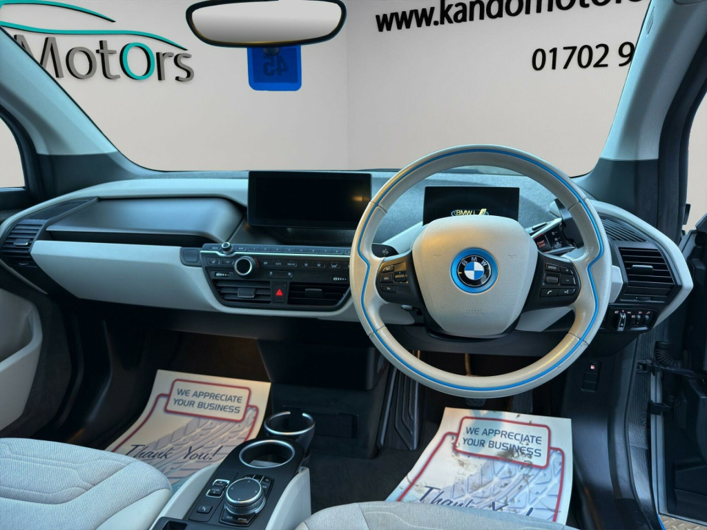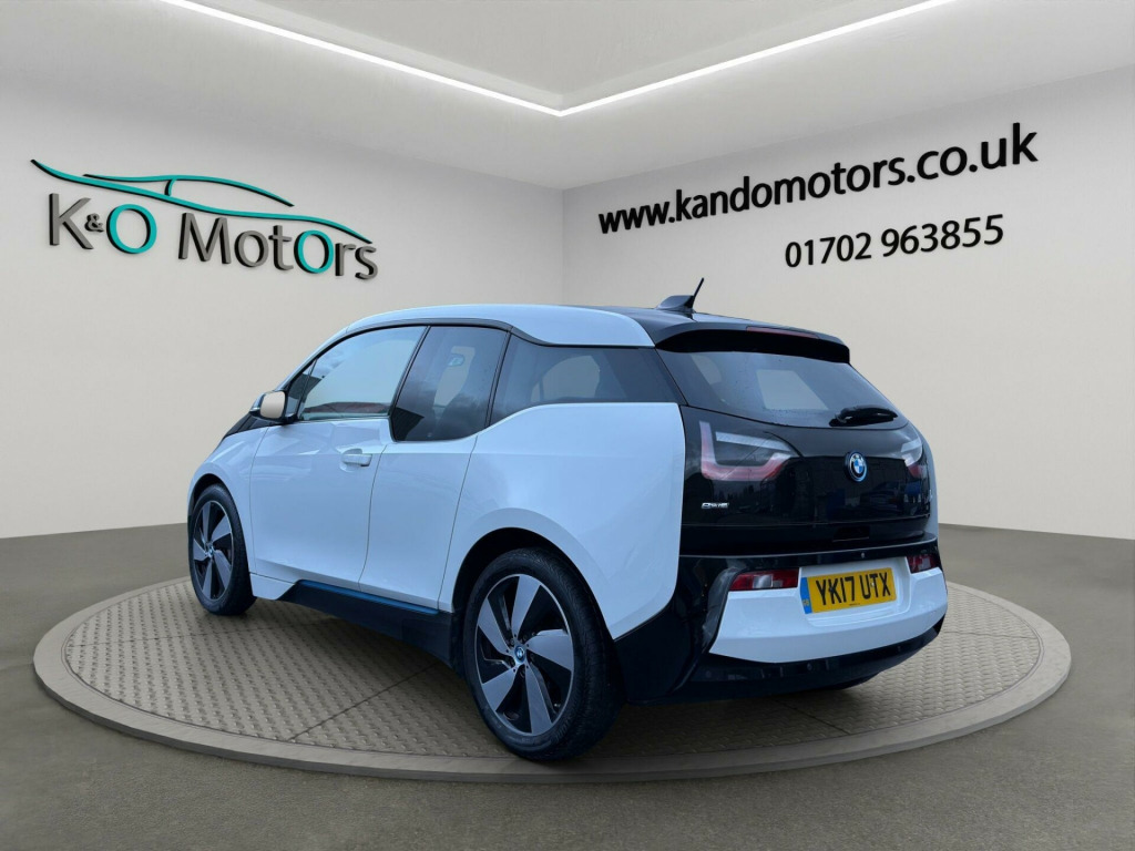 Welcome to K&O Motors – Your Trusted Source for Quality Cars in Southend, Essex. Discover an exciting selection of vehicles, each hand-selected and ready for immediate viewing and purchase. This 2017 Used BMW i3 Range Extender, finished in two-tone White and Black with the very rare cream leather interior is fully ULEZ compliant and offered for sale in Southend-on-Sea, Essex. This vehicle is just one of many premium-quality models available at K&O Motors, all carefully chosen for their condition, value, and performance. This very rare BMW i3 Range Extender wants for nothing and is in the best colour combination in our opinion. This car is fully prepped and ready for its next owner today. We’re proud to be recognised in the top 5% of Autotrader dealers for five consecutive years, having earned their ‘Highly Rated for Customer Service’ Award annually due to our consistent focus on customer satisfaction. Why choose K&O Motors? We are conveniently located in Southend, Essex and have earned over 295 verified 5-star reviews, with a 99%+ customer satisfaction rate. Every vehicle undergoes a full multi-point health check and is fully HPI clear, ensuring complete peace of mind. Exceptional customer service is our number one priority. We offer competitive part exchange deals and finance packages tailored to all credit backgrounds, including those with poor credit. Nationwide delivery is available at a pre-agreed fee. For added peace of mind, we provide nationwide drive-away warranty cover for up to 3 years. We also offer free collection from Southend Central or Prittlewell train stations, making it easy and convenient for you to visit us. Book an appointment today to view our stock or secure your chosen vehicle with a fully refundable deposit. Our opening hours are Monday to Friday, 9:15 AM to 6:00 PM, and Saturday, 9:15 AM to 1:00 PM. Appointments outside these hours are available on request. At K&O Motors, we don’t just sell cars – we redefine the buying experience. Contact us today or visit us in person. Your journey to a quality vehicle starts here.. 12V Power Socket - Centre Console, 19in Alloy Wheels - i Light Streamline Star-Spoke Style - 427 with Mixed Tyres, 3.5mm Auxiliary Input Point for Auxiliary Playing Devices, 5.7in Colour TFT Display - Instrument Cluster, AC Fast Charge - Multi Phase Preparation, Active Differential Brake - ADB Sport - Electronic Differential Lock in DSC-Off Mode, Additional Detachable Cupholder, Air Conditioning - Automatic - Single Zone, Airbags, Alarm System - Thatcham 1 with Remote Control and Engine Immobiliser, Armrest - Front - Folding with Storage Compartment, BMW ConnectedDrive Online Services, BMW ConnectedDrive Services and Applications, BMW Emergency Call, BMW Integrated Differential Transmission, BMW Mobility System, BMW Navigation System, BMW Professional Radio, BMW TeleServices, Battery Safety Cut Off - For Drivetrain Battery and 12v Battery, Bluetooth Hands Free with USB Audio Interface, Brake Pad Wear Indicator - Front and Rear, Bumper System - Front and Rear, Bumpers - Body Colour, Cabin Pre-Conditioning via iDrive or BMW i Remote App, Central Locking Switch, Check Control Warning System for Monitoring of Lights and Door-Luggage Compartment Open Warning, Child Seat ISOFIX Attachment - Rear x2, Comfort Package, Contrast Highlights in BMW i Blue - Kidney Grille Surrounds and Highlighting Below Doors, Crash Sensor, Cruise Control with Brake Function, Cupholders - Centre, DAB Digital Radio, DC Rapid Charge Preparation, DSC - Dynamic Stability Control Plus, Daytime Running Lights - LED with BMW i Design, Direction Indicator - Side Repeaters - Integrated in Exterior Mirrors, Direction Indicator Lights - Clear Lenses, Door Handles - Body Colour, Door Mirrors - High Gloss Black and Electrically Adjustable, Door Sill Finishers - BMW Designation - Black, Drive Performance Control with ECO PRO Plus - ECO PRO and Comfort Modes, Dynamic Brake Lights, ECO PRO Mode, ECO PRO Plus Mode, EPS - Electric Power Steering with Servotronic, Electric Windows - Front with Open-Close Fingertip Control - Anti-Trap Facility and Comfort Closing Function, Electrically Operated Parking Brake, Electronic Display of Drivetrain Information and Battery Range and Temperature, Electronic Drive Selector Located on Steering Column to Select: Drive-Reverse-Neutral-Park, Exhaust Tailpipe - Hidden, Extended Storage, Exterior Parts in Contrast High-Gloss Black, First Aid Kit and Warning Triangle, Flap in Rear Side Panel - Right with Push Function to Open, Floor Mats - Velour - Anthracite, Gear Selector Switch Located on Steering Column - Control Lever in Chrome Pearl Grey with Black Leather Inserts, Glove Box with Dividing Level, Grab Handles - Integrated in Roof Lining - Front, Halogen Headlights, Head Restraints - Front and Rear, Heat Protection Glazing with Green Tint, Indicators, Interior Lighting - Front Centre Over Interior Mirror and Rear Centre, Interior Trim - Andesit Silver Matt, Interior World - Atelier, Interior and Exterior Mirrors with Automatic Anti-Dazzle Function, Kidney Grille - Contrast Surround in BMW i Blue with High-Gloss Black Centre, LED Light Elements, Lashing Eyes in Luggage Compartment at Sill x2, Lights-On Warning by Audio Warning Signal When Ignition is Switched Off, Locking Wheel Bolts, Luggage Compartment - Light, Luggage Compartment Access via BMW Roundel, Model Designation, Model Designation - i3 Rear, Multifunction Controls for Steering Wheel, Navigation System - BMW Professional Multimedia, OBC - On-Board Computer, Oil Sensor For Level and Grade - Warning by Check Control System, PDC - Park Distance Control - Rear, Park Assist, Personal Profile, Power Socket - 12V in Luggage Compartment, Pre-Heating of HV with Active Air Flap Control, Rain Sensor with Automatic Headlight Activation, Rear Fog Light, Rear Lights - LED Integrated into Tailgate, Rear Shelf Cover, Rear Spoiler - Black with Integrated LED Brake Light, Rear Window - Integrated into Ta