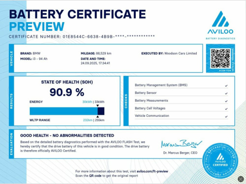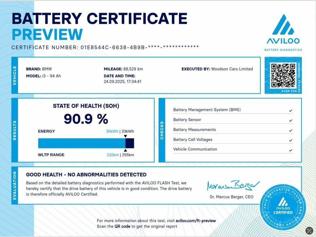 ** Soft Credit Search Pre Approval ** ** 1 Previous Owner **. This BMW i3 33kWh Electric Auto (170bhp) has covered 55000 miles in white with heated cloth interior. 1 previous owner, sat nav, DAB Radio, isofix, parking sensors, bluetooth, auto lights, xenon lights + much more. *MAIN DEALER PART EXCHANGE* Warranty included. VOSA Mileage History Checked and HPI Clear. Vehicle has received an independent health check with report ++ Any inspection is more than welcome ++ Nationwide Delivery Service Available ++ Credit/Debit Card Accepted ++ Approved Finance Partner with Consumer Credit Licence ++ Call/Message anytime including evenings ++ Facetime/Video Call Available Around Your Schedule ++ Warranty Included. Late Night Appointments Available. Woodson Cars, Manchester. 01618509848 (For Sat Nav use Postcode M44 5AH) 19in Alloy Wheels - i BiColour Light Tur, Concierge Service, eDrive Exterior Sound, Smokers Package, Park Assist Package, Auxiliary Cabin Heating System, Online Entertainment, Driving Assistant Plus, Comfort Access System, 19in Alloy Wheels - i BiColour Light Tur, Sun Protection Glazing, 12V Power Socket - Centre Console, 19in Alloy Wheels - i Light Streamline S, 2.4 kW AC Charging, 5.7in Colour TFT Display - Instrument Cl, AC Fast Charge - Multi Phase Preparation, Active Differential Brake - ADB Sport - , Additional 12V Power Socket in Right-Han, Additional Detachable Cupholder, Air Conditioning - Automatic - Single Zo, Airbags, Alarm System, Armrest - Front, BMW ConnectedDrive Online Servi