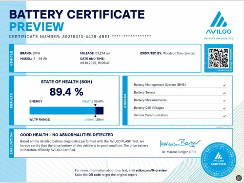 ** Soft Credit Search Pre Approval ** ** 1 Owner From New **   This BMW i3 33kWh Hatchback 5dr Petrol Plug-in Hybrid Auto Euro 6 ( Range Extender ) (170 bhp) has covered 62,000 miles in Blue with Grey interior.BMW service records,  EV Battery Certificate, 1 Owner From New, Front And Rear Parking Sensors, Sat Nav, DAB Radio, Heated Seats, ULEZ Free, AA Approved Dealer. *MAIN DEALER PART EXCHANGE* Warranty included. VOSA Mileage History Checked and HPI Clear. Vehicle has received an independent health check with report ++ Any inspection is more than welcome ++ Nationwide Delivery Service Available ++ Credit/Debit Card Accepted ++ Approved Finance Partner with Consumer Credit Licence ++ Call/Message anytime including evenings ++ Facetime/Video Call Available Around Your Schedule ++ Warranty Included. Late Night Appointments Available. Woodson Cars, Manchester. 01618509848 (For Sat Nav use Postcode M44 5AH) eDrive Exterior Sound, Comfort Access System, Driving Assistant Plus, Smokers Package, 12V Power Socket - Centre Console, 19in Alloy Wheels - i Light Streamline S, 3.5mm Auxiliary Input Point for Auxiliar, 5.7in Colour TFT Display - Instrument Cl, AC Fast Charge - Multi Phase Preparation, Active Differential Brake - ADB Sport - , Additional 12V Power Socket in Right-Han, Additional Detachable Cupholder, Air Conditioning - Automatic - Single Zo, Airbags, Alarm System, Armrest - Front Centre Foldable with Int, BMW ConnectedDrive Online Services, BMW ConnectedDrive Services and Applicat, BMW Emergency Call, BMW Integrated Differential Transmission, BMW Mobility Kit with Tyre Sealing Syste, BMW