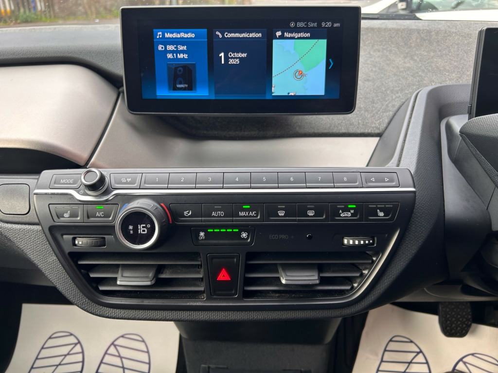 SUPER NICE EXAMPLE OF THIS SOUGHT AFTER RANGE-EXTENDER i3S. Ver low miles and good spec. UK DELIVERY. PX WELCOME. FULL DEALER FACILITIES. mm lower sports suspension, 2.4 kw ac charging, ac fast charge - multi phase preparation, additional sport driving mode with sporty throttle response, bmw integrated differential transmission, brake pad wear indicator - front and rear, cabin pre-conditioning via idrive or bmw i remote app, condition based service, cruise control with brake function, drive performance control with eco pro plus - eco pro and comfort modes, eco pro mode to provide improved range, eco pro plus mode to maximise the potential range - limits top speed for 56mph, eps - electric power steering with servotronic, electronic display of drivetrain information and battery range and temperature, electronic drive selector located on steering column to select: drive-reverse-neutral-park, illuminated charging socket with visual display of charge status, obc - on-board computer, oil sensor for level and grade - warning by check control system, pdc - park distance control - rear, tpms - tyre pressure monitoring system, 12v power socket - centre console, 5.7in colour tft display - instrument cluster, additional 12v power socket in right-hand side of boot, bmw connecteddrive online services, bmw connecteddrive services and applications, bmw emergency call, bmw professional radio, bmw teleservices, bluetooth hands free with usb audio interface, connected edrive service, dab digital radio, dc rapid charge preparation, navigation system - bmw professional multimedia, real time traffic information, remote services, shark fin aerial, 20in alloy wheels - light double-spoke style 431 with mixed tyres, bmw mobility kit with tyre sealing system, bumper system - front and rear, contrast highlights in bmw i blue - kidney grille surrounds and highlighting below doors, direction indicator - side repeaters - integrated in exterior mirrors, direction indicator lights using led technology located on front bumper, electric windows - front with open-close fingertip control - anti-trap facility and comfort closing function, exhaust tailpipe - hidden, exterior mirrors - electrically folding with anti dazzle, exterior parts in body colour, exterior parts in contrast high-gloss black, front bumper with i3s specific black inlay and accent highlights, heat protection glazing with green tint, high-gloss black wheel arch extensions and wider track, kidney grille high-gloss black with contrast chrome edging, lightweight alloy wheels with unique streamline design, lightweight engineering featuring carbon-fibre reinforced plastic - cfrp body structure, locking wheel bolts, model designation, rear bumper design with i3s specific design, rear fog light located in bumper, rear window - integrated into tailgate, reversing lights located in bumper, side windows, tyres - reduced rolling resistance, window surrounds - black, edrive designation - rear, i3s badge on rear tailgate, a-pillar and roof moulding in high-gloss black, additional detachable cupholder, air conditioning - automatic - single zone, armrest - front, central locking switch, cupholders - centre, door sill finished in black, extended storage, flap in rear side panel - right with push function to open, floor mats - velour - anthracite, front floor mat with i3s model designation in the centre, fuel filler point - front with push to open function, fuel tank - metal, gear selector switch located on steering column, glove box with partitioned sections, grab handles - integrated in roof lining - front and rear, headrests - front - integrated into seat backrests, indicators, interior lighting - front centre over interior mirror and rear centre, interior trim - andesit silver matt, luggage compartment - light, luggage compartment access via recessed handle below tailgate, multifunction controls for steering wheel, personal profile, rain sensor, rear seat headrests - folding - two, rear shelf cover, rear view mirror with automatic anti-dazzle function, seat heating - front, seats - 50-50 split folding rear, seats - x4 with individual seat designs in the front and rear, side armrests - front integrated into door trim, slide through light-weight front seats, start-stop button with comfort go keyless engine start, steering wheel - leather multifunction two spoke - black with unique bmw i blue accent, steering-wheel column adjustment - manual, storage compartment in driver and passenger doors, sun visors with vanity mirrors and ticket holder, twin horns, i3s specific steering characteristics, active differential brake - adb sport - electronic differential lock in dsc-off mode, airbags, alarm system, battery safety cut off - for drivetrain battery and 12v battery, child seat isofix attachment - rear x2, crash sensor, dsc - dynamic stability control plus, dynamic brake lights, electric handbrake located on centre console between driver and passenger seats, remote control including integrated key - 2, seat belt security check for driver and front passenger, side impact protection, three-point seat belts - all seats, visible vin, warning triangle and first aid kit, check control warning system for monitoring of lights and door-luggage compartment open warning, daytime running lights - led with u shaped bmw i design, led headlights, lights-on warning by audio warning signal when ignition is switched off, rear lights - led integrated into tailgate, rear spoiler - black with integrated led brake light