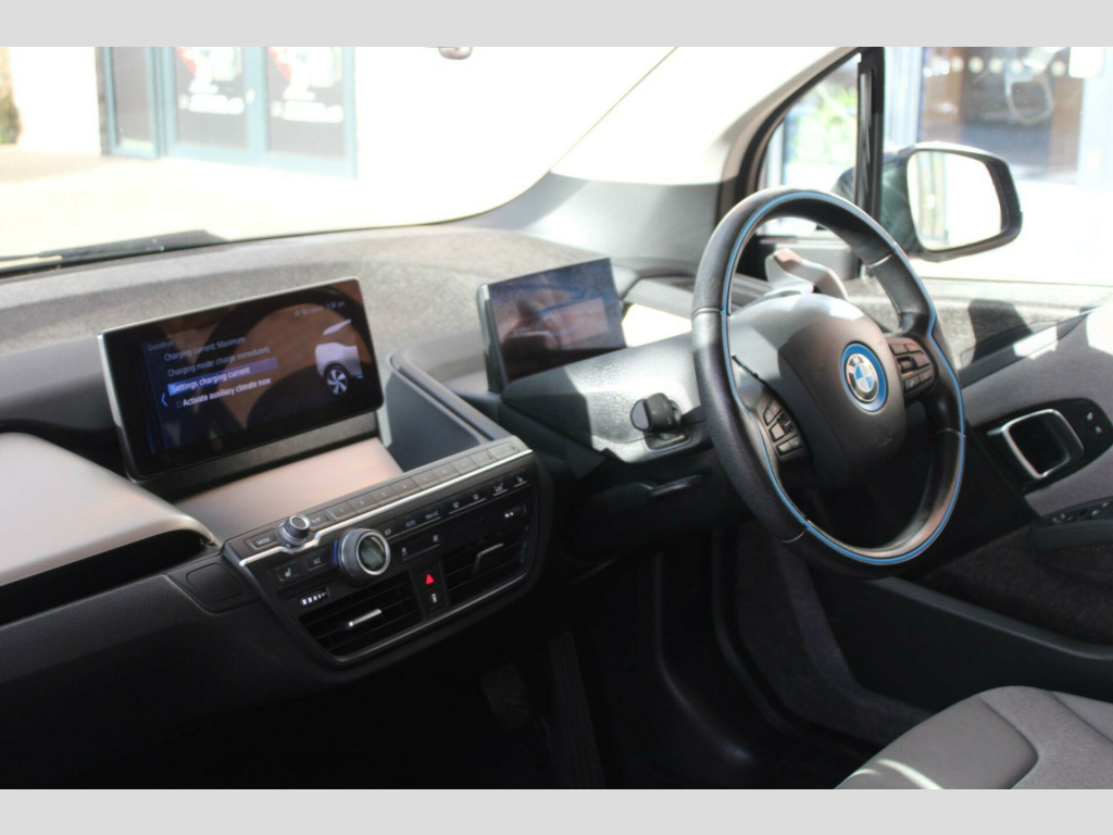 The Electric Vehicle Company are proud to offer this 2020 BMW i3, a superb example of electric motoring. This model offers a generous 42 kWh battery, providing a maximum range of 190 miles , making it ideal for both daily commutes and longer journeys. Charging is convenient, with a full charge at home using a 7kW charger taking approximately 5 hours. For quicker top ups, the fastest public charging time from empty to 80% is an impressive 40 minutes.Experience advanced technology with the Driving Assistant Plus package, which includes adaptive cruise control for effortless highway driving. The i3 also features automatic LED headlights that activate with the rain sensor, ensuring optimal visibility in all conditions. Comfort is enhanced by front seat heating and rear park distance control, making parking simple and stress free. With an acceleration of 0 to 62mph in just 7.3 seconds, this BMW i3 delivers a responsive and engaging driving experience that sets it apart from other electric vehicles. We are an RAC approved dealer, All of our cars are prepared to the Highest Standards and are all fully inspected. All vehicles come with RAC roadside assist. Finance available, Credit and debit cards accepted, Nationwide delivery available. All vehicles purchased are subject to an admin fee of £150.00. Congestion charge exempt once set up, ULEZ Exempt. Ref BMWI3. 12V Power Socket - Centre Console, 19in Alloy Wheels - i BiColour Light Turbine Styling - Mixed Tyres - 429, 2.4 kW AC Charging, 5.7in Colour TFT Display - Instrument Cluster, AC Fast Charge - Multi Phase Preparation, Active Differential Brake - ADB Sport - Electronic Differential Lock in DSC-Off Mode, Additional 12V Power Socket in Right-Hand Side of Boot, Additional Detachable Cupholder, Air Conditioning - Automatic - Single Zone, Airbags, Alarm System, Armrest - Front, BMW ConnectedDrive Online Services, BMW ConnectedDrive Services and Applications, BMW Emergency Call, BMW Integrated Differential Transmission, BMW Mobility Kit with Tyre Sealing System, BMW Professional Radio, BMW TeleServices, Battery Safety Cut Off - For Drivetrain Battery and 12v Battery, Bluetooth Hands Free with USB Audio Interface, Brake Pad Wear Indicator - Front and Rear, Bumper System - Front and Rear, Cabin Pre-Conditioning via iDrive or BMW i Remote App, Central Locking Switch, Check Control Warning System for Monitoring of Lights and Door-Luggage Compartment Open Warning, Child Seat ISOFIX Attachment - Rear x2, Condition Based Service, Connected eDrive Service, Contrast Highlights in BMW i Blue - Kidney Grille Surrounds and Highlighting Below Doors, Crash Sensor, Cruise Control with Brake Function, Cupholders - Centre, DAB Digital Radio, DC Rapid Charge Preparation, DSC - Dynamic Stability Control Plus, Daytime Running Lights - LED with U Shaped BMW i Design, Direction Indicator - Side Repeaters - Integrated in Exterior Mirrors, Direction Indicator Lights Using LED Technology Located on Front Bumper, Door Sill Finished in Black, Drive Performance Control with ECO PRO Plus - ECO PRO and Comfort Modes, Dynamic Brake Lights, ECO PRO Mode to Provide Improved Range, ECO PRO Plus Mode to Maximise the Potential Range - Limits Top Speed for 56mph, EPS - Electric Power Steering with Servotronic, Electric Handbrake Located on Centre Console Between Driver and Passenger Seats, Electric Windows - Front with Open-Close Fingertip Control - Anti-Trap Facility and Comfort Closing Function, Electronic Display of Drivetrain Information and Battery Range and Temperature, Electronic Drive Selector Located on Steering Column to Select: Drive-Reverse-Neutral-Park, Extended Storage, Exterior Mirrors - Electrically Folding with Anti Dazzle, Exterior Mirrors - Finished In High-Gloss Black - Electrically Adjustable and Folding, Exterior Parts in Body Colour, Exterior Parts in Contrast High-Gloss Black, Flap in Rear Side Panel - Right with Push Function to Open, Floor Mats - Velour - Anthracite, Gear Selector Switch Located on Steering Column, Glove Box with Partitioned Sections, Grab Handles - Integrated in Roof Lining - Front and Rear, Headrests - Front - Integrated into Seat Backrests, Heat Protection Glazing with Green Tint, Illuminated Charging Socket with Visual Display of Charge Status, Indicators, Interior Lighting - Front Centre Over Interior Mirror and Rear Centre, Interior Trim - Andesit Silver - Metallic Effect, Kidney Grille Chrome High-Gloss with Contrast Frame in BMW i Blue, LED Headlights, Lights-On Warning by Audio Warning Signal When Ignition is Switched Off, Lightweight Alloy Wheels with Unique Streamline Design, Locking Wheel Bolts, Luggage Compartment - Light, Luggage Compartment Access via Recessed Handle Below Tailgate, Mobility Kit, Model Designation, Model Designation - i3 Rear, Multifunction Controls for Steering Wheel, Navigation System - BMW Professional Multimedia, OBC - On-Board Computer, PDC - Park Distance Control - Rear, Personal Profile, Rain Sensor, Real Time Traffic Information, Rear Fog Light Located in Bumper, Rear Lights - LED Integrated into Tailgate, Rear Seat Headrests - Folding - Two, Rear Shelf Cover, Rear Spoiler - Black with Integrated LED Brake Light, Rear View Mirror with Automatic Anti-Dazzle Function, Rear Window - Integrated into Tailgate, Remote Control Including Integrated Key - 2, Reversing Lights Located in Bumper, Sea.