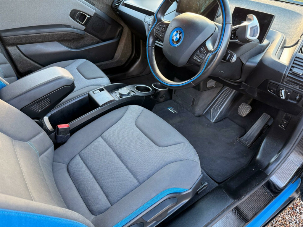 This 2020 BMW i3 S presents an exceptional opportunity with its remarkably low mileage of just 18,000 miles. This electric vehicle, in its sporty S trim, boasts a 42 kWh battery offering a maximum range of 175 miles when new. Charging is convenient, with a full charge at home using a 7kW charger taking approximately 5 hours and 15 minutes, while rapid public charging can achieve 80% capacity in as little as 40 minutes. Notable features include the advanced Driving Assistant Plus with adaptive cruise control, a reversing assist camera integrated with rear parking assistance, and the Comfort Access System for keyless entry. The distinctive BMW i Blue seat belts and striking 20 inch light double spoke alloy wheels in Jet Black with mixed tyres further enhance its appeal.The performance of this BMW i3 S is a key highlight, with its electric powertrain delivering brisk acceleration from 0 to 62mph in just 6.9 seconds, demonstrating its dynamic capabilities. This swift response indicates a superior driving experience compared to many other electric vehicles in its class. The combination of its efficient electric drive, impressive acceleration, and comprehensive suite of advanced driver assistance and convenience features makes this 2020 BMW i3 S a compelling choice for those seeking a stylish, modern, and engaging electric car.WE OPERATE BY APPOINTMENT ONLY. PLEASE CALL THE SHOWROOM TO BOOK A TIME SLOT. SUPPLIED WITH 6 MONTHS RAC PLATINUM PLUS WARRANTY, 12 MONTH BREAKDOWN COVER AND RAC APPROVED 82 POINT COMPLIANT INSPECTION iving assistant plus, reversing assist camera, comfort access system, pdc - park distance control - front and rear, 20in alloy wheels - light double-spoke style 431 jet black with mixed tyres, seat belts - bmw i blue, interior world atelier - neutronic cloth - aragats grey - black interior, 10mm lower sports suspension, 12v power socket - centre console, 2.4 kw ac charging, 20in alloy wheels - light double-spoke style 431 with mixed tyres, 5.7in colour tft display - instrument cluster, a-pillar and roof moulding in high-gloss black, ac fast charge - multi phase preparation, active differential brake - adb sport - electronic differential lock in dsc-off mode, additional 12v power socket in right-hand side of boot, additional detachable cupholder, additional sport driving mode with sporty throttle response, air conditioning - automatic - single zone, airbags, alarm system, armrest - front, bmw connecteddrive online services, bmw connecteddrive services and applications, bmw emergency call, bmw integrated differential transmission, bmw mobility kit with tyre sealing system, bmw professional radio, bmw teleservices, battery safety cut off - for drivetrain battery and 12v battery, bluetooth hands free with usb audio interface, brake pad wear indicator - front and rear, bumper system - front and rear, cabin pre-conditioning via idrive or bmw i remote app, central locking switch, check control warning system for monitoring of lights and door-luggage compartment open warning, child seat isofix attachment - rear x2, condition based service, connected edrive service, contrast highlights in bmw i blue - kidney grille surrounds and highlighting below doors, crash sensor, cruise control with brake function, cupholders - centre, dab digital radio, dc rapid charge preparation, dsc - dynamic stability control plus, daytime running lights - led with u shaped bmw i design, direction indicator - side repeaters - integrated in exterior mirrors, direction indicator lights using led technology located on front bumper, door sill finished in black, drive performance control with eco pro plus - eco pro and comfort modes, dynamic brake lights, eco pro mode to provide improved range, eco pro plus mode to maximise the potential range - limits top speed for 56mph, eps - electric power steering with servotronic, electric handbrake located on centre console between driver and passenger seats, electric windows - front with open-close fingertip control - anti-trap facility and comfort closing function, electronic display of drivetrain information and battery range and temperature, electronic drive selector located on steering column to select: drive-reverse-neutral-park, extended storage, exterior mirrors - electrically folding with anti dazzle, exterior mirrors - finished in high-gloss black - electrically adjustable and folding, exterior parts in body colour, exterior parts in contrast high-gloss black, flap in rear side panel - right with push function to open, floor mats - velour - anthracite, front bumper with i3s specific black inlay and accent highlights, front floor mat with i3s model designation in the centre, gear selector switch located on steering column, glove box with partitioned sections, grab handles - integrated in roof lining - front and rear, headrests - front - integrated into seat backrests, heat protection glazing with green tint, high-gloss black wheel arch extensions and wider track, illuminated charging socket with visual display of charge status, indicators, interior lighting - front centre over interior mirror and rear centre, interior trim - andesit silver - metallic effect, interior trim - electronic brown, kidney grille high-gloss black with contrast chrome edging, led headlights, lights-on warning by audio warning signal when ignition is switched off, lightweight alloy wheels with unique streamline design, locking wheel bolts, luggage compartment - light, luggage compartment access via recessed handle below tailgate, mobility kit, model designation, model designation - i3 rear, multifunction controls for steering wheel, navigation system - bmw professional multimedia, obc - on-board computer, pdc - park distance control - rear, personal profile, rain sensor, real time traffic information, rear bumper design with i3s specific design, rear fog light located in bumper, rear lights - led integrated into tailgate, rear seat headrests - folding - two, rear shelf cover, rear spoiler