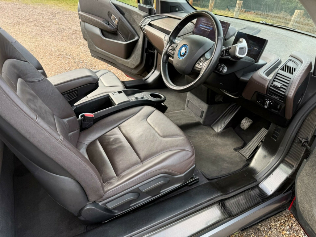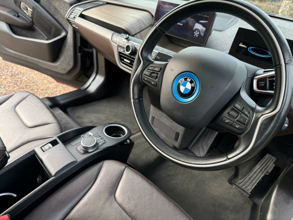 Discover this 2020 BMW i3 S, a striking electric vehicle that offers an exhilarating driving experience. This model boasts a 42 kWh battery, providing a maximum range of 175 miles when new, making it ideal for both city commutes and longer journeys. Charging is convenient, with a full charge at home taking approximately 5 hours and 15 minutes using a 7kW charger, and a rapid 40 minutes to reach 80% charge at a public charging station. Inside, you'll find a sophisticated cabin featuring Dark Oak Matt interior trim, a Glass Sunroof for an airy feel, and the premium Harman Kardon loudspeaker system for exceptional audio quality. The i3 S also comes equipped with Driving Assistant Plus, including adaptive cruise control, enhancing your driving comfort and safety.The performance of this BMW i3 S is truly impressive, accelerating from 0 to 62 miles per hour in just 6.9 seconds, showcasing its dynamic capabilities. This swift acceleration sets it apart from many other electric vehicles in its class. The i3s Plus Package further enhances the premium feel, complementing the already well appointed interior. This electric BMW i3 S represents a compelling blend of innovative technology, sustainable motoring, and engaging performance, offering a superior driving proposition.EMAIL: salesholwoodcarsltd.co.ukTELEPHONE: 01689 853475WEBSITE: www.holwoodcarsltd.co.ukWE OPERATE BY APPOINTMENT ONLY. PLEASE CALL THE SHOWROOM TO BOOK A TIME SLOT. SUPPLIED WITH 6 MONTHS RAC PLATINUM PLUS WARRANTY, 12 MONTH BREAKDOWN COVER AND 82 POINT RAC COMPLIANT INSPECTION s plus package, driving assistant plus, glass sunroof - electric, loudspeaker system - harman kardon, interior trim - dark oak matt, sun protection glazing, online entertainment, 20in alloy wheels - light double-spoke style 431 jet black with mixed tyres, edrive exterior sound, 10mm lower sports suspension, 12v power socket - centre console, 2.4 kw ac charging, 20in alloy wheels - light double-spoke style 431 with mixed tyres, 5.7in colour tft display - instrument cluster, a-pillar and roof moulding in high-gloss black, ac fast charge - multi phase preparation, active differential brake - adb sport - electronic differential lock in dsc-off mode, additional 12v power socket in right-hand side of boot, additional detachable cupholder, additional sport driving mode with sporty throttle response, air conditioning - automatic - single zone, airbags, alarm system, armrest - front, bmw connecteddrive online services, bmw connecteddrive services and applications, bmw emergency call, bmw integrated differential transmission, bmw mobility kit with tyre sealing system, bmw professional radio, bmw teleservices, battery safety cut off - for drivetrain battery and 12v battery, bluetooth hands free with usb audio interface, brake pad wear indicator - front and rear, bumper system - front and rear, cabin pre-conditioning via idrive or bmw i remote app, central locking switch, check control warning system for monitoring of lights and door-luggage compartment open warning, child seat isofix attachment - rear x2, condition based service, connected edrive service, contrast highlights in bmw i blue - kidney grille surrounds and highlighting below doors, crash sensor, cruise control with brake function, cupholders - centre, dab digital radio, dc rapid charge preparation, dsc - dynamic stability control plus, daytime running lights - led with u shaped bmw i design, direction indicator - side repeaters - integrated in exterior mirrors, direction indicator lights using led technology located on front bumper, door sill finished in black, drive performance control with eco pro plus - eco pro and comfort modes, dynamic brake lights, eco pro mode to provide improved range, eco pro plus mode to maximise the potential range - limits top speed for 56mph, eps - electric power steering with servotronic, electric handbrake located on centre console between driver and passenger seats, electric windows - front with open-close fingertip control - anti-trap facility and comfort closing function, electronic display of drivetrain information and battery range and temperature, electronic drive selector located on steering column to select: drive-reverse-neutral-park, extended storage, exterior mirrors - electrically folding with anti dazzle, exterior mirrors - finished in high-gloss black - electrically adjustable and folding, exterior parts in body colour, exterior parts in contrast high-gloss black, flap in rear side panel - right with push function to open, floor mats - velour - anthracite, front bumper with i3s specific black inlay and accent highlights, front floor mat with i3s model designation in the centre, gear selector switch located on steering column, glove box with partitioned sections, grab handles - integrated in roof lining - front and rear, headrests - front - integrated into seat backrests, heat protection glazing with green tint, high-gloss black wheel arch extensions and wider track, illuminated charging socket with visual display of charge status, indicators, interior lighting - front centre over interior mirror and rear centre, interior trim - andesit silver - metallic effect, interior trim - electronic brown, kidney grille high-gloss black with contrast chrome edging, led headlights, lights-on warning by audio warning signal when ignition is switched off, lightweight alloy wheels with unique streamline design, locking wheel bolts, luggage compartment - light, luggage compartment access via recessed handle below tailgate, mobility kit, model designation, model designation - i3 rear, multifunction controls for steering wheel, navigation system - bmw professional multimedia, obc - on-board computer, pdc - park distance control - rear, personal profile, rain sensor, real time traffic information, rear bumper design with i3s specific design, rear fog light located in bumper, rear lights - led integrated into tailgate, rear seat headrests - folding - two, rear shelf cover, rear sp