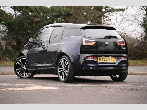 Prestige Car Supermarket in York presents this 2022 BMW i3 S Hatchback finished in Imperial Blue with Highlight Frozen Grey, combining distinctive design with engaging all-electric performance delivering 184 ps through a smooth automatic transmission. This i3s benefits from 10mm lower sports suspension, wider track and i3s-specific steering characteristics, enhancing agility and driving enjoyment. The exterior is complemented by 20in light double-spoke style 431 alloy wheels, high-gloss black detailing, LED headlights, LED rear lights integrated into the tailgate and an i3s-specific rear spoiler. Inside, the innovative cabin features dark oak matt interior trim, BMW i Blue accents, front heated seats, BMW i Blue seat belts, leather multifunction steering wheel, professional navigation system, Apple CarPlay, DAB digital radio and BMW ConnectedDrive services. Practical features include front and rear park distance control, reversing assist camera, extended storage, split-folding rear seats and automatic single-zone climate control. Charging and efficiency are supported by DC rapid charge preparation, AC fast charge multi-phase preparation, brake energy regeneration and ECO PRO and ECO PRO Plus driving modes. Additional highlights include cruise control, automatic headlights and wipers, electrically folding mirrors with anti-dazzle, sun protection glazing and a lightweight carbon-fibre reinforced plastic body structure, making this i3s a striking, efficient and well-specified el 10mm Lower Sports Suspension, 12V Power Socket - Centre Console, 20in Alloy Wheels - Light Double-Spoke S, A-Pillar and Roof Moulding in High-Gloss, AC Fast Charge - Multi Phase Preparation, Active Differential Brake - ADB Sport - , Additional 12V Power Socket in Right-Han, Additional Detachable Cupholder, Additional SPORT Driving Mode with Sport, Air Conditioning - Automatic - Single Zo, Airbags, Alarm System, Apple CarPlay, Armrest - Front, Automatic Windscreen Wiper and Headlight, BMW ConnectedDrive Online Services, BMW ConnectedDrive Services and Applicat, BMW Designation - i3 Rear, BMW Emergency Call, BMW Integrated Differential Transmission, BMW Professional Radio, BMW TeleServices, Ba