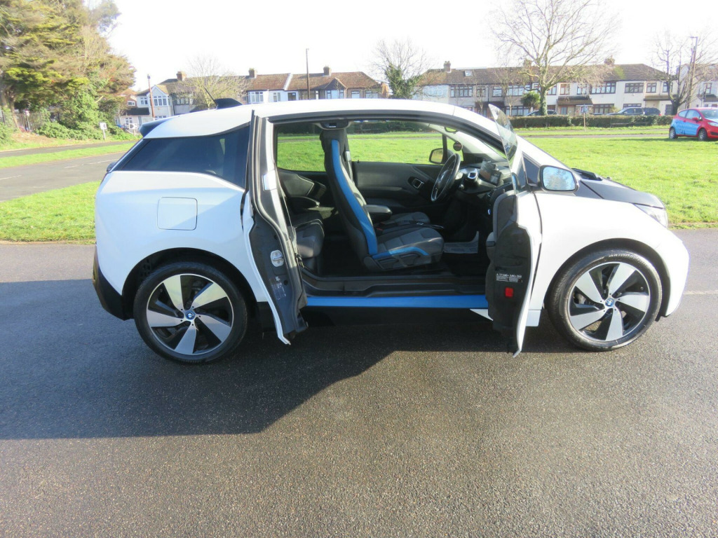 2 KEYS,HPI CLEAR, REAR PARKING SENSORS, FRONT HEATED SEATS, DRIVE MODES, RADIO-BLUETOOTH, SAT NAV, ULEZ FREE,RECENT SERVICE, LONG MOT, SUPER ECONOMICAL ,FULL MOT HISTORY, , GOOD SOLID CAR, WELL LOOKED AFTER, GOOD SPEC, WARRANTY / PART EX / AVAILABLE OUR LOCATION UPPER RAINHAM ROAD ROMFORD RM12 4EU, ALL CARS SOLD ARE HPi CLEAR, ANY PART EXCHANGE CONSIDERED, TEST DRIVES AVAILABLE, MANY MORE CARS AVAILABLE ON FORECOURT. TEL: 01708 451 773. IF PURCHASED VIA FINANCE FEES MAY APPLY dia package - bmw professional, loudspeaker system - harman kardon, 19in alloy wheels - i bicolour light turbine styling - 429, dc rapid charge preparation, enhanced bluetooth telephone preparation with usb audio interface, sun protection glazing, concierge service, real time traffic information, neutronic cloth - aragats grey - black interior, 19in alloy wheels - i bicolour light turbine styling - 428, 12v power socket - centre console, 12v power socket - luggage compartment, 19in alloy wheels - i light streamline star-spoke style - 427, 5.7in colour tft display - instrument cluster, 6.5in colour display screen, abs - anti lock braking system, ac fast charge preparation, adb sport - active differential brake, asc - automatic stability control, air conditioning - automatic - single zone, airbags - curtain, airbags - driver, airbags - front side, airbags - head - front and rear, airbags - passenger, airbags - passenger deactivation, alarm system thatcham 1 with remote control, armrest - front and rear integrated into door trim, armrest - front with storage compartment, automatically dimming rear view mirror, auxiliary input, bmw apps interface, bmw connecteddrive - online, bmw connecteddrive online services, bmw emergency call, bmw navigation system, bmw professional radio, bmw teleservices, battery safety cut off, belt force limiters - front, bluetooth - audio streaming - with compatible devices, bluetooth hands free facility, brake assist, brake drying, brake pad wear indicator - front and rear, brake readiness, bumpers - body colour, cbc - cornering brake control, cabin temperature preparation, central locking - remote, check control warning system, child seat isofix attachment - rear x2, comfort package, contrast high-gloss black - bonnet, contrast high-gloss black - roof, contrast high-gloss black - tailgate, crash sensor - activating central locking-hazard warning lights-fuel cut off, cruise control with brake function, cup holders - centre console, cup holders - detachable x2 - rear, dab digital radio, dbc - dynamic brake control, dsc - dynamic stability control plus, dtc - dynamic traction control, daytime running lights - led with bmw i design, door handles - body colour, door mirrors - automatic dipping parking function on passenger side, door mirrors - drivers aspheric, door mirrors - folding - automatically dimming, door mirrors - high gloss black, door mirrors - integrated indicators - led, door mirrors - memory via personal profile, door sill finishers - bmw designation - black, drive performance control with eco pro plus - eco pro and comfort modes, dynamic brake lights, electric windows - front open and close fingertip control, electrically operated handbrake - parking brake, electronic differential lock, engine immobiliser, extended storage, first aid kit, floor mats - velour - anthracite, follow me home headlight function, gear selector switch located on steering column - chrome pearl grey with leather inserts, glove box with dividing level, grab handles - integrated in roof lining - front, halogen headlights, head restraints - front, head restraints - rear seat folding x2, headlights - automatic activation, headlights - beam throw control, heat protection glazing with green tint, heated windscreen washer jets, hill start assist, illuminated charging socket with visual display of charge status, indicator lenses - clear, indicators - integrated into rear light cluster behind tailgate mirror caps - led, interior lighting, interior trim - andesit silver - metallic effect, kidney grille - contrast surround in bmw i blue with high-gloss black centre, led light elements, lights-on warning, locking wheel bolts, luggage compartment - lashing eyes extra x2, luggage compartment - lashing eyes x4, luggage compartment - light, luggage compartment access via bmw roundel, media package - bmw business, mobility tyre sealing system, model designation, model designation - i3 rear, multifunction controls for steering wheel, navigation system - bmw business advanced, navigation system - bmw professional multimedia, obc - on-board computer, outside temperature display with ice warning, pdc - park distance control - rear, park assist, parking lights - led, personal profile, pollen filter, power steering - electric with servotronic, pre-heating of hv with active air flap control, pyrotechnic belt tensioners - front, rain sensor, rear fog light, rear lights - led integrated into tailgate, rear shelf cover, rear spoiler - black, rear spoiler - black with integrated led brake light, remote services, roof mouldings - body colour, seat belt security check for driver and front passenger, seats - 50-50 split folding rear, seats - front heated, shark fin aerial, side impact protection, sliding through light weight front seats, speaker system with 4x25 watt, standard charge cable - 5 metres with storage under bonnet, start-stop button with keyless operation, steering column with manual reach and rake adjustment, steering wheel - leather multifunction two spoke - black with unique bmw i blue accent, storage compartment - front doors, sun visors with vanity mirrors and ticket holder, tmc - traffic information, tpms - tyre pressure monitoring system, tyres - reduced rolling resistance, usb audio interface, voice control - navigation, voice control - phone, warning triangle, window surrounds - black, edrive designation - rear, idrive controller - 8 favourite buttons