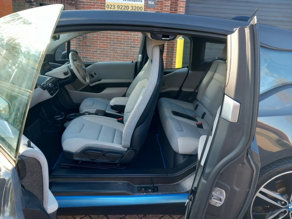 This 2015 BMW i3 Hatchback with 62000 miles on the clock is a Petrol Plug-in Hybrid in a sleek Arravani Grey with i Blue Highlight. Complete with a MOT valid until 09/12/2026, this 4-door, 4-seat vehicle is ULEZ compliant and comes with a range of features including 20in Alloy Wheels, LED Headlights, Concierge Service, and Enhanced Bluetooth Telephone Preparation with USB Audio Interface. The Auto Euro 6 (s/s) engine has a 170 ps range extender and offers a smooth driving experience. In great condition and with a spacious interior, this BMW i3 is a reliable and stylish choice for those in the market for a high-quality hatchback. This is in great condition throughout and will be supplied with 2 keys and a mechanical breakdown warranty v power socket - centre console, 12v power socket - luggage compartment, 5.7in colour tft display - instrument cluster, 6.5in colour display screen, auxiliary input, bmw apps interface, bmw connecteddrive - online, bmw connecteddrive online services, bmw emergency call, bmw navigation system, bmw professional radio, bmw teleservices, bluetooth hands free with audio streaming, dab digital radio, media package - bmw business, navigation system - bmw business advanced, navigation system - bmw professional multimedia, remote services, shark fin aerial, speaker system with 4x25 watt, speakers x2 - midrange in front door panels, speakers x2 - in a-pillar, usb audio interface, 19in alloy wheels - i light streamline star-spoke style - 427, ac fast charge preparation, bmw mobility system, bumpers - body colour, contrast high-gloss black - bonnet, contrast high-gloss black - roof, contrast high-gloss black - tailgate, door handles - body colour, door mirrors - automatic parking function, door mirrors - body coloured housing, door mirrors - folding - automatically dimming, door mirrors - integrated indicators - led, door mirrors - memory via personal profile, electric windows - front open and close fingertip control, exhaust tailpipe - hidden, heat protection glazing with green tint, heated windscreen washer jets, indicator lenses - clear, indicators - integrated into rear light cluster behind tailgate mirror caps - led, kidney grille - contrast surround in bmw i blue with high-gloss black centre, locking wheel bolts, parking lights - led, roof mouldings - body colour, tyres - reduced rolling resistance, window surrounds - black, edrive designation - rear, abs - anti lock braking system, adb - automatic differential brake, asc - automatic stability control, airbags - curtain, airbags - driver, airbags - front side, airbags - passenger, airbags - passenger deactivation, alarm system thatcham 1 with remote control, battery safety cut off, brake assist, brake drying, brake readiness, cbc - cornering brake control, central locking - remote, child seat isofix attachment - rear x2, crash sensor - activating central locking-hazard warning lights-fuel cut off, dbc - dynamic brake control, dsc - dynamic stability control plus, dtc - dynamic traction control, dynamic brake lights, engine immobiliser, first aid kit, hill start assist, seat belt security check for driver and front passenger, side impact protection, air conditioning - automatic - single zone, armrest - front centre, armrest - front and rear integrated into door trim, armrest - front with storage compartment, automatically dimming rear view mirror, comfort go keyless engine start, comfort package, cup holders - centre console, cup holders - detachable x2 - rear, door sill finishers - bmw designation - black, extended storage, floor mats - velour - anthracite, gear selector switch located on steering column - chrome pearl grey with leather inserts, glove box with dividing level, grab handles - integrated in roof lining - front, head restraints - rear seat folding x2, interior lighting, interior trim - andesit silver - metallic effect, luggage compartment - lashing eyes x2, luggage compartment - lashing eyes x4, luggage compartment - light, multifunction controls for steering wheel, personal profile, rain sensor with automatic headlight activation, seats - 50-50 split folding rear, seats - front heated, sliding through light weight front seats, start-stop button with keyless operation, steering column with manual reach and rake adjustment, steering wheel - leather multifunction two spoke - black with unique bmw i blue accent, storage compartment - front doors, sun visors with vanity mirrors and ticket holder, traffic jam assistant, brake pad wear indicator - front and rear, cabin temperature preparation, check control warning system, cruise control with brake function, drive performance control with eco pro plus - eco pro and comfort modes, electronic differential lock, illuminated charging socket with visual display of charge status, lights-on warning, obc - on-board computer, oil sensor for level and grade - warning by check control system, pdc - park distance control - rear, park assist, power steering - electric with servotronic, standard charge cable - 5 metres with storage under bonnet, tpws - tyre pressure warning system, idrive controller with shortcut buttons, daytime running lights - led with bmw i design, follow me home headlight function, halogen headlights, headlights - beam throw control, led light elements, rear lights - led integrated into tailgate, rear spoiler - black with integrated led brake light
