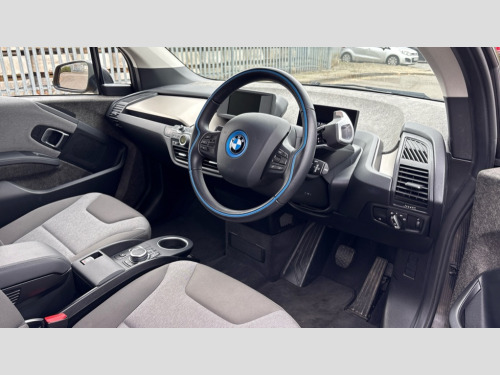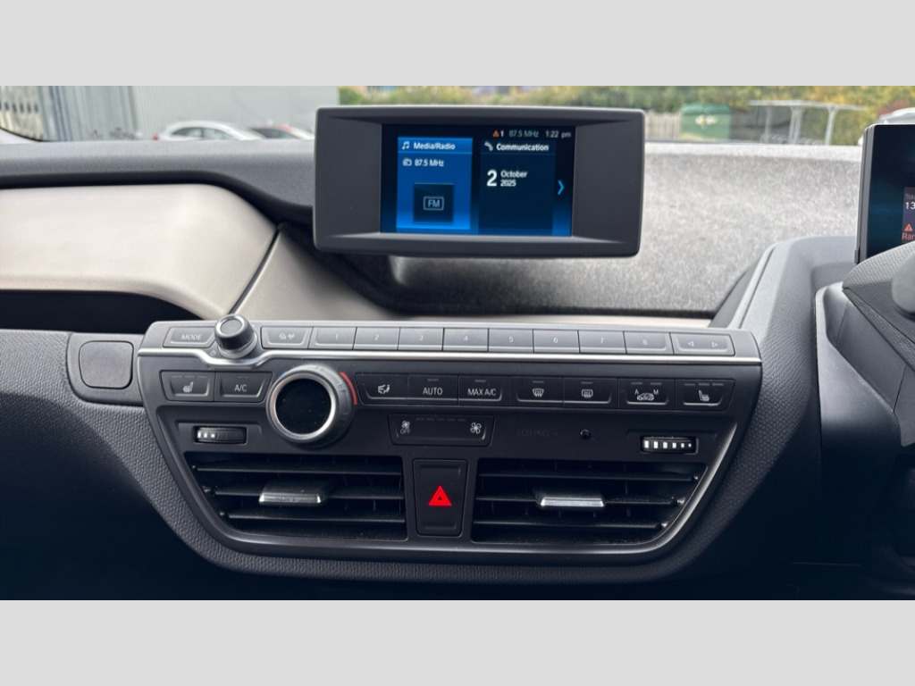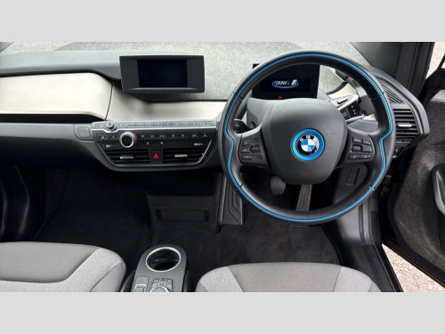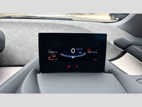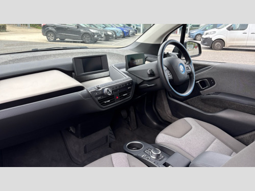 BMW I3 125kW 42kWh 5dr Auto 5.7" colour TFT Instrument cluster display - speedometer and readout, power and range information, Apple car play, BMW apps interface, BMW ConnectedDrive - Assist, BMW live tiles with charging, dynamic range map, integrated handbook, iDrive Control with buttons, TMC information used to dynamic route plan, BMW Online services, BMW Professional Multimedia Navigation system - 10.25" LCD screen with BMW i design, dynamic route planning and 8 buttons, BMW remote services, BMW Teleservices, Connected eDrive Services, ECO PRO mode to improve range, ECO PRO+ mode to maximise the potential range (top speed 56mph) significant gains in range through a series of onboard electronic measures, Electronic display of drivetrain information and battery range and temperature, Front and rear Brake pad wear indicator, Lights on warning by audio warning signal when ignition is switched off, On board computer - average speed+fuel consumption, service interval, clock/date, odometer/trip meter, outside temperature display and ice warning, Personal profile with automatic lock when driving away selectable, preferences and favourites to a personal profile within the vehicle, Real time traffic information, Servotronic variable electric power steering (EPS), 12V compressor with integrated sealant injection bottle and hose, 2.4kW AC charging with 5m cable, AC Fast charge cable, BMW eDrive motor, BMW integrated differential transmission with electronic parking lock and single forward and reverse gears, Charging cable (Mode 3) for public charging, Drive performance control with ECO PRO+, ECO PRO and comfort modes, eDrive exterior sound, Li-ion battery with active cooling and 38kWh usable energy with aluminium radiator, 8 modules ,integrated battery storage management electronics (SME), Safety battery cut-off for drive train and 12V, Standard Charging cable (Mode 2) for home socket, Auxiliary point for auxiliary devices, DAB Digital radio, Auto headlights, Black finished door sills, Black window surrounds, Black with integrated LED brake light in rear spoiler, Body colour front and rear bumpers, doors and door handles, Contrast high gloss black bonnet, door mirrors and roof, Contrast highlights in BMW i Blue - Kidney grille surrounds below doors, Direction indicator side lights in exterior mirrors, Dynamic brake lights, Electrically adjustable high gloss black exterior mirror with aspheric on drivers side, convex on passenger side mirrors, Electrically folding, anti dazzle, heated memory, auto parking function, heated washer jets, electrochromatic, aspheric on passenger exterior mirrors, Flap in rear side panel, right with push function to open with C shaped indication band for battery condition integrated into central locking system, Front and rear bumper system with replaceable deformation elements, Front electric windows with open and close fingertip control, anti trap facility and comfort closing, Green tinted heat protection glazing, High level third brake light integrated into rear spoiler with front LED bumper, LED side mirror caps, LED rear integrated cluster behind tailgate, Integrated tailgate rear window with tempered safety glass, heated rear window, Kidney grille chrome high-gloss with contrast frame in BMW i Blue, LED direction indicator lights on front bumper, LED rear lights integrated into tailgate, Low A pillar panel, Model designation, Rain sensor with automatic windscreen wiper and headlight activation, Rear BMW i3 designation, Rear fog lights in bumper, Rear side wing doors, Rear view mirror with automatic dipping of passenger mirror when reverse gear is selected to aid parking, Rear wiper, Reversing lights in bumper, Shark fin roof aerial, Side windows with tempered safety glass, rear static fixed windows, Visible VIN plate, 12V power socket in centre console, 2 individual rear seats, 50/50 split folding rear seat, Additional 12V power socket in right-hand side of boot, Additional detachable cupholder, Anthracite Velour floor mats, Automatic interior light when door is opened/ignition switched off or via remote key, Cabin pre-conditioning via iDrive or BMW i Remote App, Central cupholder - additional cupholder with clip on function for centre console, Conditioned based service, DC rapid charge preparation, Electric bootlid with chrome optic trim, Electronic drive selector on steering column to select drive, reverse, neutral or park, Foldable front centre armrest with integrated storage compartment, Front and rear four seats with individual seat designs, Front and rear grab handles in roof linings, Front and rear map pockets, Front and rear side armrests integrated into door trim, Front integrated seat backrest and rear height adjustable headrest for all seats, Front passenger seat, Front seat heating, Gear selector switch on steering column with control lever in chrome pearl grey with leather inserts in black and gear visual indication, Illuminated charging socket in visual display, Isofix child seat attachment for two rear seats, Luggage compartment access via recessed handle below tailgate, Luggage net light, Manually adjustment steering wheel column, Multi phase AC fast charge preparation, Multi-function controls for steering wheel, Neutronic Cloth upholstery, Pre-heating for battery with active air flap control, Rear shelf cover, Single zone automatic air conditioning, Slide through light weight front seats with easy access to driver or passenger seat, Storage compartment in driver and passenger doors, Sunvisors with vanity mirrors and ticket pocket, Two folding rear seat headrests, Atelier interior world pack - i3, Extended storage pack - I3, 2 x 3-point rear seatbelts, Active Differential Brake (ADB-Sport) in DSC-OFF mode, Airbags - Front driver/passenger, front and rear curtain head protection, front side, manual deactivation of front passenger airbag, Anti lock braking system (ABS) with brake assist, Automatic Stability Control (ASC), BMW emergency call, Brake dry