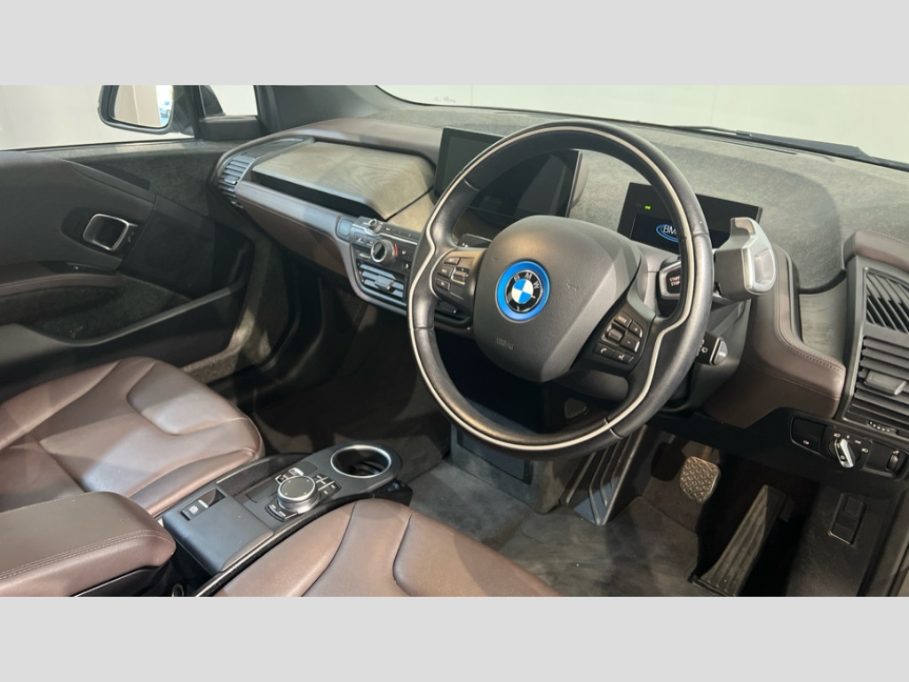BMW I3 125kW 42kWh 5dr Auto 5.7" colour TFT Instrument cluster display - speedometer and readout, power and range information, Apple car play, Bluetooth hands free telephone facility with USB audio interface and audio streaming, BMW apps interface, BMW ConnectedDrive - Assist, BMW live tiles with charging, dynamic range map, integrated handbook, iDrive Touch Control with buttons, TMC information used to dynamic route plans, BMW Online services, BMW Professional Multimedia Navigation system - 10.25" LCD screen with BMW i design, dynamic route planning and 8 buttons, BMW remote services, BMW Teleservices, Connected eDrive Services, ECO PRO mode to improve range, ECO PRO+ mode to maximise the potential range (top speed 56mph) significant gains in range through a series of onboard electronic measures, Electronic display of drivetrain information and battery range and temperature, Front and rear Brake pad wear indicator, Lights on warning by audio warning signal when ignition is switched off, On board computer - average speed+fuel consumption, service interval, clock/date, odometer/trip meter, outside temperature display and ice warning, Personal profile with automatic lock when driving away selectable, preferences and favourites to a personal profile within the vehicle, Real time traffic information, Servotronic variable electric power steering (EPS), 12V compressor with integrated sealant injection bottle and hose, 2.4kW AC charging with 5m cable, AC Fast charge cable, BMW eDrive motor, BMW integrated differential transmission with electronic parking lock and single forward and reverse gears, Charging cable (Mode 3) for public charging, Drive performance control with ECO PRO+, ECO PRO and comfort modes, eDrive exterior sound, Li-ion battery with active cooling and 38kWh usable energy with aluminium radiator, 8 modules ,integrated battery storage management electronics (SME), Safety battery cut-off for drive train and 12V, Standard Charging cable (Mode 2) for home socket, Auxiliary point for auxiliary devices, DAB Digital radio, Black finished door sills, Black window surrounds, Black with integrated LED brake light in rear spoiler, Body colour front and rear bumpers, doors and door handles, Contrast highlights in BMW i Blue - Kidney grille surrounds below doors, Direction indicator side lights in exterior mirrors, Dynamic brake lights, Electrically adjustable high gloss black exterior mirror with aspheric on drivers side, convex on passenger side mirrors, Electrically folding, anti dazzle, heated memory, auto parking function, heated washer jets, electrochromatic, aspheric on passenger exterior mirrors, Flap in rear side panel, right with push function to open with C shaped indication band for battery condition integrated into central locking system, Front and rear bumper system with replaceable deformation elements, Front electric windows with open and close fingertip control, anti trap facility and comfort closing, Green tinted heat protection glazing, High gloss black bonnet, door mirrors, roof and tailgate with chrome optic trim, High level third brake light integrated into rear spoiler with front LED bumper, LED side mirror caps, LED rear integrated cluster behind tailgate, Integrated tailgate rear window with tempered safety glass, heated rear window, Kidney grille chrome high-gloss with contrast frame in BMW i Blue, LED direction indicator lights on front bumper, LED rear lights integrated into tailgate, Low A pillar panel, Model designation, Rain sensor with automatic windscreen wiper and headlight activation, Rear BMW i3 designation, Rear fog lights in bumper, Rear view mirror with automatic dipping of passenger mirror when reverse gear is selected to aid parking, Rear wiper, Reversing lights in bumper, Roof mouldings with matt chrome optic highlight, Shark fin roof aerial, Side windows with tempered safety glass, rear static fixed windows, Visible VIN plate, 12V power socket in centre console, 50/50 split folding rear seat, Additional 12V power socket in right-hand side of boot, Additional detachable cupholder, Anthracite Velour floor mats, Automatic interior light when door is opened/ignition switched off or via remote key, Cabin pre-conditioning via iDrive or BMW i Remote App, Central cupholder - additional cupholder with clip on function for centre console, Conditioned based service, DC rapid charge preparation, Electric bootlid with chrome optic trim, Electronic drive selector on steering column to select drive, reverse, neutral or park, Foldable front centre armrest with integrated storage compartment, Front and rear four seats with individual seat designs, Front and rear grab handles in roof linings, Front and rear map pockets, Front and rear side armrests integrated into door trim, Front integrated seat backrest and rear height adjustable headrest for all seats, Front seat heating, Gear selector switch on steering column with control lever in chrome pearl grey with leather inserts in black and gear visual indication, Illuminated charging socket in visual display, Isofix child seat attachment for two rear seats, Luggage compartment access via recessed handle below tailgate, Manually adjustment steering wheel column, Multi phase AC fast charge preparation, Multi-function controls for steering wheel, Neutronic Cloth upholstery, Pre-heating for battery with active air flap control, Rear shelf cover, Single zone automatic air conditioning, Slide through light weight front seats with easy access to driver or passenger seat, Storage compartment in driver and passenger doors, Sunvisors with vanity mirrors and ticket pocket, Two folding rear seat headrests, Atelier interior world pack - i3, Extended storage pack - I3, 2 x 3-point rear seatbelts, Active Differential Brake (ADB-Sport) in DSC-OFF mode, Airbags - Front driver/passenger, front and rear curtain head protection, front side, manual deactivation of front passenger airbag, Anti lock braking system (ABS) with brake assist, Aut