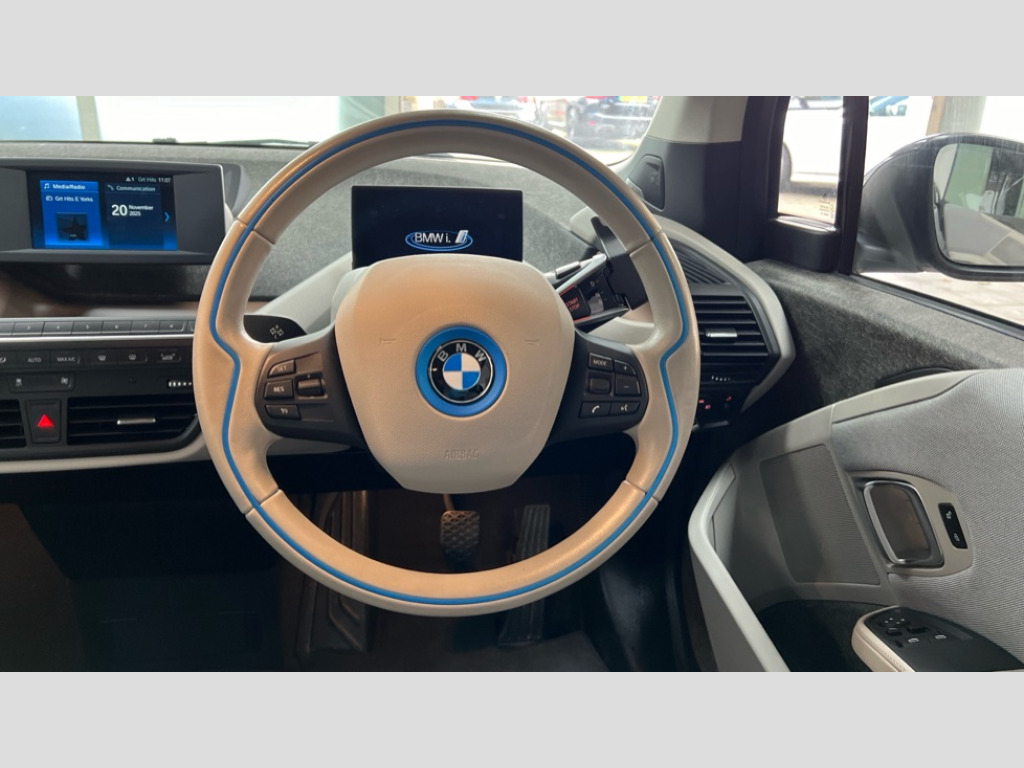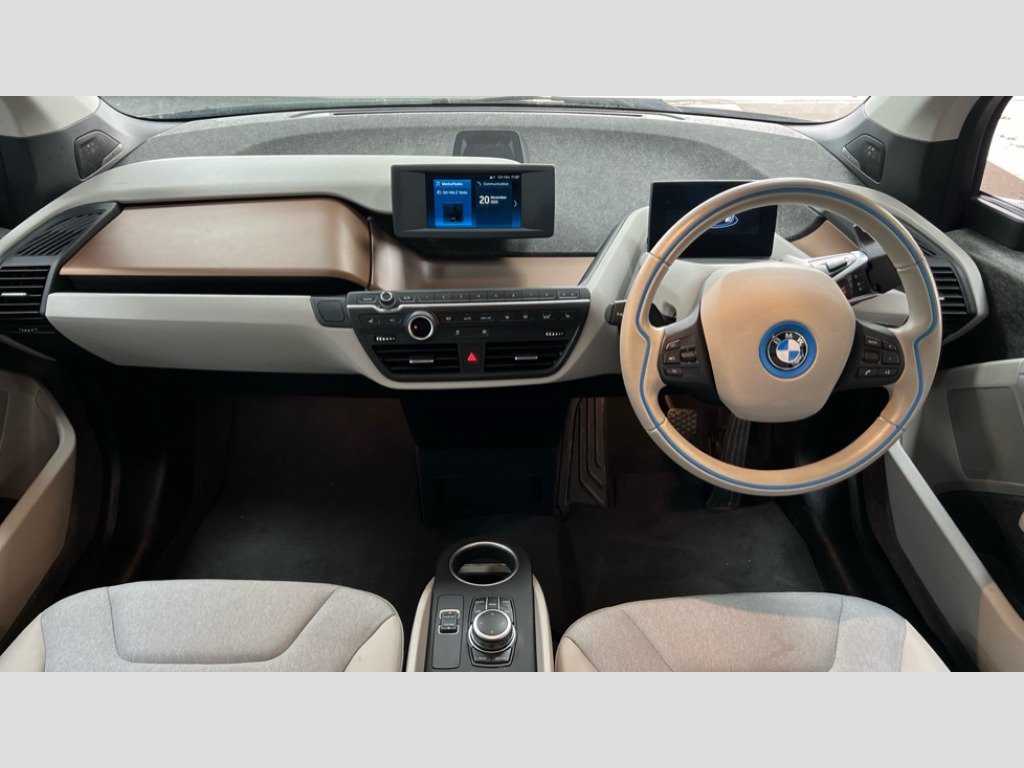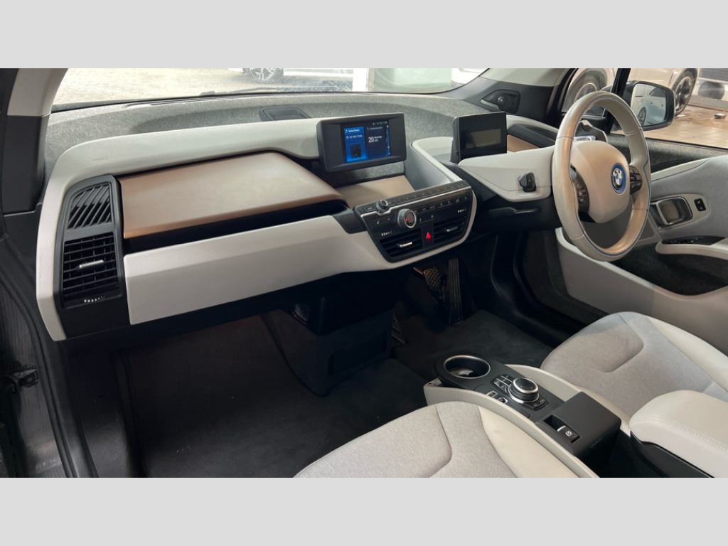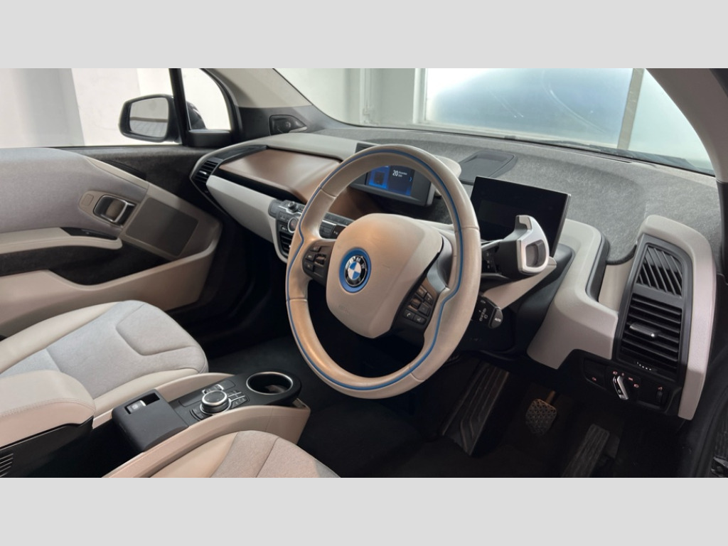 BMW I3 125kW 42kWh 5dr Auto 5.7" colour TFT Instrument cluster display - speedometer and readout, power and range information, Apple car play, BMW apps interface, BMW ConnectedDrive - Assist, BMW live tiles with charging, dynamic range map, integrated handbook, iDrive Control with buttons, TMC information used to dynamic route plan, BMW Online services, BMW Professional Multimedia Navigation system - 10.25" LCD screen with BMW i design, dynamic route planning and 8 buttons, BMW remote services, BMW Teleservices, Connected eDrive Services, ECO PRO mode to improve range, ECO PRO+ mode to maximise the potential range (top speed 56mph) significant gains in range through a series of onboard electronic measures, Electronic display of drivetrain information and battery range and temperature, Front and rear Brake pad wear indicator, Lights on warning by audio warning signal when ignition is switched off, On board computer - average speed+fuel consumption, service interval, clock/date, odometer/trip meter, outside temperature display and ice warning, Personal profile with automatic lock when driving away selectable, preferences and favourites to a personal profile within the vehicle, Real time traffic information, Servotronic variable electric power steering (EPS), 12V compressor with integrated sealant injection bottle and hose, 2.4kW AC charging with 5m cable, AC Fast charge cable, BMW eDrive motor, BMW integrated differential transmission with electronic parking lock and single forward and reverse gears, Charging cable (Mode 3) for public charging, Drive performance control with ECO PRO+, ECO PRO and comfort modes, eDrive exterior sound, Li-ion battery with active cooling and 38kWh usable energy with aluminium radiator, 8 modules ,integrated battery storage management electronics (SME), Safety battery cut-off for drive train and 12V, Standard Charging cable (Mode 2) for home socket, Auxiliary point for auxiliary devices, DAB Digital radio, Auto headlights, Black finished door sills, Black window surrounds, Black with integrated LED brake light in rear spoiler, Body colour front and rear bumpers, doors and door handles, Contrast high gloss black bonnet, door mirrors and roof, Contrast highlights in BMW i Blue - Kidney grille surrounds below doors, Direction indicator side lights in exterior mirrors, Dynamic brake lights, Electrically adjustable high gloss black exterior mirror with aspheric on drivers side, convex on passenger side mirrors, Electrically folding, anti dazzle, heated memory, auto parking function, heated washer jets, electrochromatic, aspheric on passenger exterior mirrors, Flap in rear side panel, right with push function to open with C shaped indication band for battery condition integrated into central locking system, Front and rear bumper system with replaceable deformation elements, Front electric windows with open and close fingertip control, anti trap facility and comfort closing, Green tinted heat protection glazing, High level third brake light integrated into rear spoiler with front LED bumper, LED side mirror caps, LED rear integrated cluster behind tailgate, Integrated tailgate rear window with tempered safety glass, heated rear window, Kidney grille chrome high-gloss with contrast frame in BMW i Blue, LED direction indicator lights on front bumper, LED rear lights integrated into tailgate, Low A pillar panel, Model designation, Rain sensor with automatic windscreen wiper and headlight activation, Rear BMW i3 designation, Rear fog lights in bumper, Rear side wing doors, Rear view mirror with automatic dipping of passenger mirror when reverse gear is selected to aid parking, Rear wiper, Reversing lights in bumper, Shark fin roof aerial, Side windows with tempered safety glass, rear static fixed windows, Visible VIN plate, 12V power socket in centre console, 2 individual rear seats, 50/50 split folding rear seat, Additional 12V power socket in right-hand side of boot, Additional detachable cupholder, Anthracite Velour floor mats, Automatic interior light when door is opened/ignition switched off or via remote key, Cabin pre-conditioning via iDrive or BMW i Remote App, Central cupholder - additional cupholder with clip on function for centre console, Conditioned based service, DC rapid charge preparation, Electric bootlid with chrome optic trim, Electronic drive selector on steering column to select drive, reverse, neutral or park, Foldable front centre armrest with integrated storage compartment, Front and rear four seats with individual seat designs, Front and rear grab handles in roof linings, Front and rear map pockets, Front and rear side armrests integrated into door trim, Front integrated seat backrest and rear height adjustable headrest for all seats, Front passenger seat, Front seat heating, Gear selector switch on steering column with control lever in chrome pearl grey with leather inserts in black and gear visual indication, Illuminated charging socket in visual display, Isofix child seat attachment for two rear seats, Luggage compartment access via recessed handle below tailgate, Luggage net light, Manually adjustment steering wheel column, Multi phase AC fast charge preparation, Multi-function controls for steering wheel, Neutronic Cloth upholstery, Pre-heating for battery with active air flap control, Rear shelf cover, Single zone automatic air conditioning, Slide through light weight front seats with easy access to driver or passenger seat, Storage compartment in driver and passenger doors, Sunvisors with vanity mirrors and ticket pocket, Two folding rear seat headrests, Atelier interior world pack - i3, Extended storage pack - I3, 2 x 3-point rear seatbelts, Active Differential Brake (ADB-Sport) in DSC-OFF mode, Airbags - Front driver/passenger, front and rear curtain head protection, front side, manual deactivation of front passenger airbag, Anti lock braking system (ABS) with brake assist, Automatic Stability Control (ASC), BMW emergency call, Brake dry