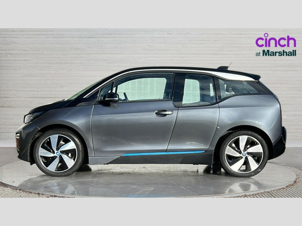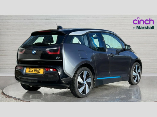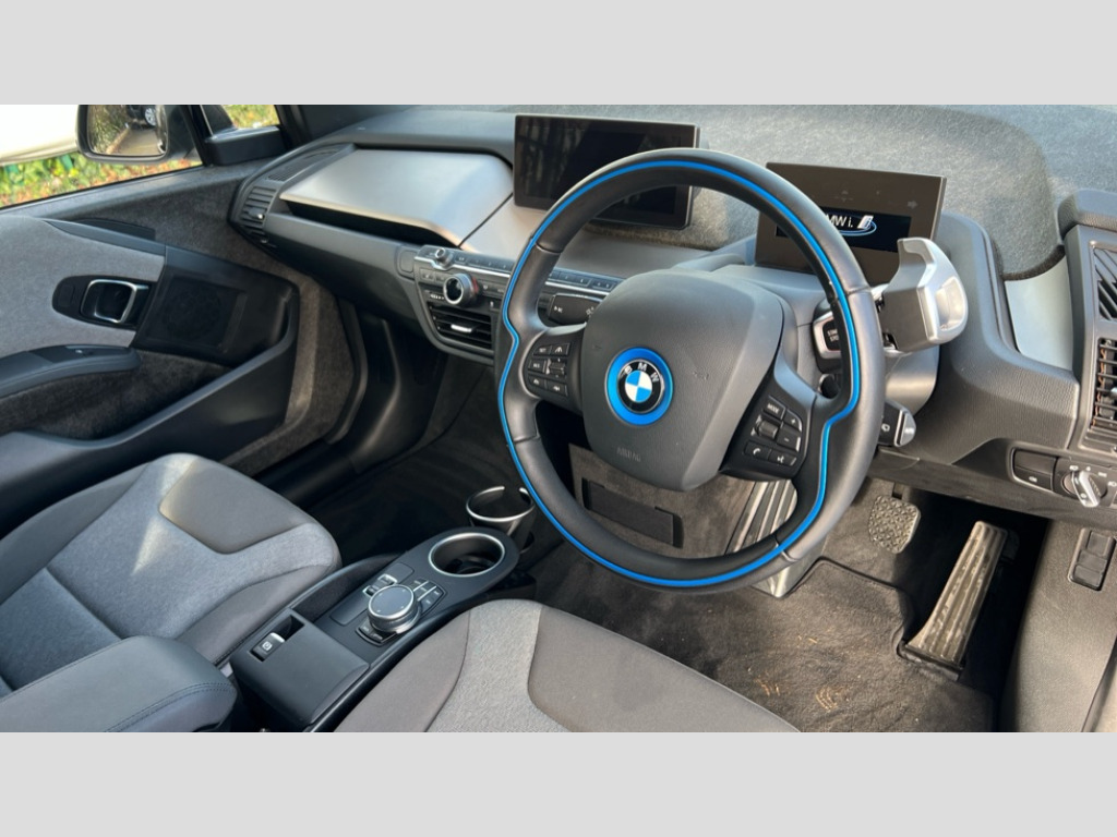 BMW I3 125kW 42kWh 5dr Auto 5.7" colour TFT Instrument cluster display - speedometer and readout, power and range information, Apple car play, Bluetooth hands free telephone facility with USB audio interface and audio streaming, BMW apps interface, BMW ConnectedDrive - Assist, BMW live tiles with charging, dynamic range map, integrated handbook, iDrive Touch Control with buttons, TMC information used to dynamic route plans, BMW Online services, BMW Professional Multimedia Navigation system - 10.25" LCD screen with BMW i design, dynamic route planning and 8 buttons, BMW remote services, BMW Teleservices, Connected eDrive Services, ECO PRO mode to improve range, ECO PRO+ mode to maximise the potential range (top speed 56mph) significant gains in range through a series of onboard electronic measures, Electronic display of drivetrain information and battery range and temperature, Front and rear Brake pad wear indicator, Lights on warning by audio warning signal when ignition is switched off, On board computer - average speed+fuel consumption, service interval, clock/date, odometer/trip meter, outside temperature display and ice warning, Personal profile with automatic lock when driving away selectable, preferences and favourites to a personal profile within the vehicle, Real time traffic information, Servotronic variable electric power steering (EPS), 12V compressor with integrated sealant injection bottle and hose, 2.4kW AC charging with 5m cable, AC Fast charge cable, BMW eDrive motor, BMW integrated differential transmission with electronic parking lock and single forward and reverse gears, Drive performance control with ECO PRO+, ECO PRO and comfort modes, Li-ion battery with active cooling and 38kWh usable energy with aluminium radiator, 8 modules ,integrated battery storage management electronics (SME), Safety battery cut-off for drive train and 12V, Auxiliary point for auxiliary devices, DAB Digital radio, Aluminium painted black in rear roof panel, Black finished door sills, Black window surrounds, Black with integrated LED brake light in rear spoiler, Body colour front and rear bumpers, doors and door handles, Contrast highlights in BMW i Blue - Kidney grille surrounds below doors, Direction indicator side lights in exterior mirrors, Dynamic brake lights, Electrically adjustable high gloss black exterior mirror with aspheric on drivers side, convex on passenger side mirrors, Electrically folding, anti dazzle, heated memory, auto parking function, heated washer jets, electrochromatic, aspheric on passenger exterior mirrors, Flap in rear side panel, right with push function to open with C shaped indication band for battery condition integrated into central locking system, Front and rear bumper system with replaceable deformation elements, Front electric windows with open and close fingertip control, anti trap facility and comfort closing, Green tinted heat protection glazing, High gloss black bonnet, door mirrors, roof, roof mouldings with matt chrome optic highlight, tailgate with chrome optic trim, High level third brake light integrated into rear spoiler with front LED bumper, LED side mirror caps, LED rear integrated cluster behind tailgate, Integrated tailgate rear window with tempered safety glass, heated rear window, Kidney grille chrome high-gloss with contrast frame in BMW i Blue, LED direction indicator lights on front bumper, LED rear lights integrated into tailgate, Lightweight engineering with carbon fibre reinforced plastic (CFRP) body structure, Low A pillar panel, Model designation, Rain sensor with automatic windscreen wiper and headlight activation, Rear BMW i3 designation, Rear fog lights in bumper, Rear view mirror with automatic dipping of passenger mirror when reverse gear is selected to aid parking, Rear wiper, Reversing lights in bumper, Shark fin roof aerial, Side windows with tempered safety glass, rear static fixed windows, Visible VIN plate, 12V power socket in centre console, 50/50 split folding rear seat, Additional 12V power socket in right-hand side of boot, Additional detachable cupholder, Anthracite Velour floor mats, Automatic interior light when door is opened/ignition switched off or via remote key, Cabin pre-conditioning via iDrive or BMW i Remote App, Central cupholder - additional cupholder with clip on function for centre console, Conditioned based service, DC rapid charge preparation, Electronic drive selector on steering column to select drive, reverse, neutral or park, Foldable front centre armrest with integrated storage compartment, Front and rear four seats with individual seat designs, Front and rear grab handles in roof linings, Front and rear map pockets, Front and rear side armrests integrated into door trim, Front integrated seat backrest and rear height adjustable headrest for all seats, Front seat heating, Gear selector switch on steering column with control lever in chrome pearl grey with leather inserts in black and gear visual indication, Glove box with partitioned sections, Illuminated charging socket in visual display, Isofix child seat attachment for two rear seats, Luggage compartment access via recessed handle below tailgate, Manually adjustment steering wheel column, Multi phase AC fast charge preparation, Multi-function controls for steering wheel, Neutronic Cloth upholstery, Pre-heating for battery with active air flap control, Rear shelf cover, Single zone automatic air conditioning, Slide through light weight front seats with easy access to driver or passenger seat, Storage compartment in driver and passenger doors, Sunvisors with vanity mirrors and ticket pocket, Two folding rear seat headrests, Atelier interior world pack - i3, Extended storage pack - I3, 2 x 3-point rear seatbelts, Active Differential Brake (ADB-Sport) in DSC-OFF mode, Airbags - Front driver/passenger, front and rear curtain head protection, front side, manual deactivation of front passenger airbag, Anti lock braking system (ABS) with brake assist, 