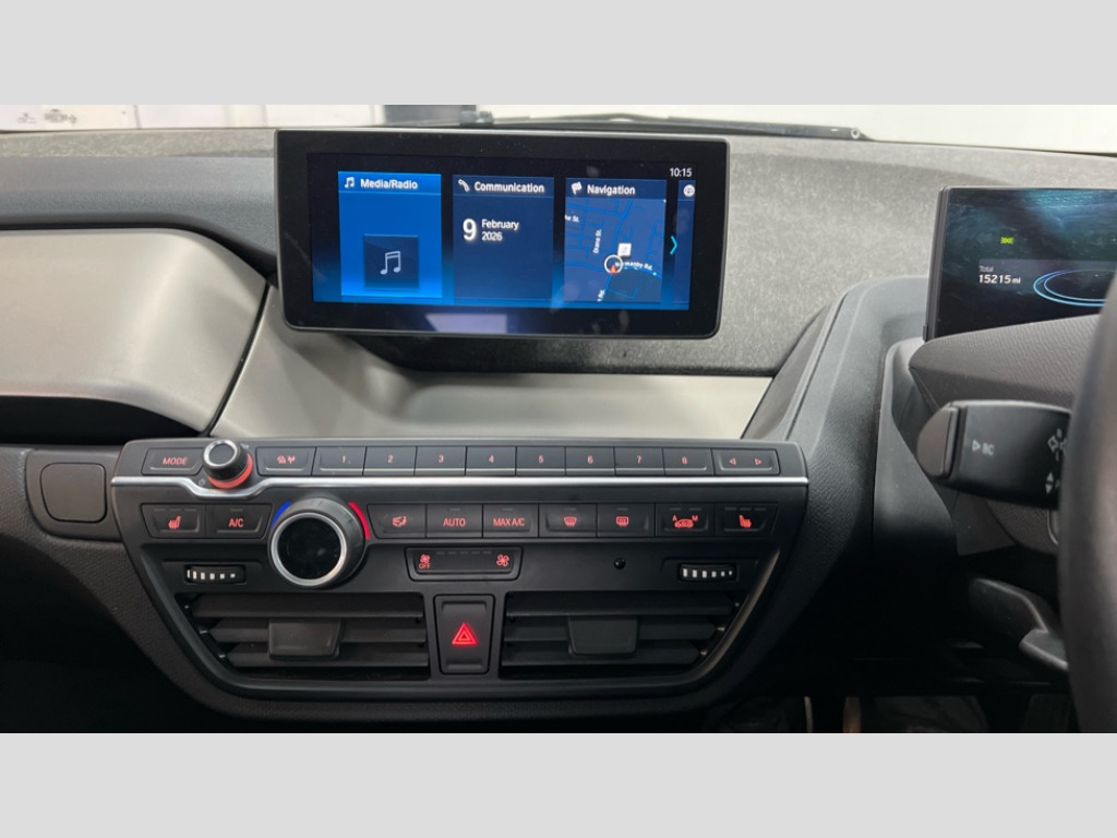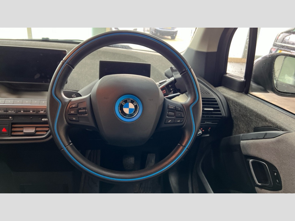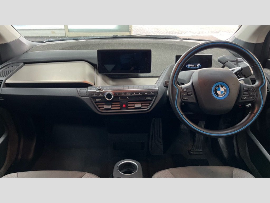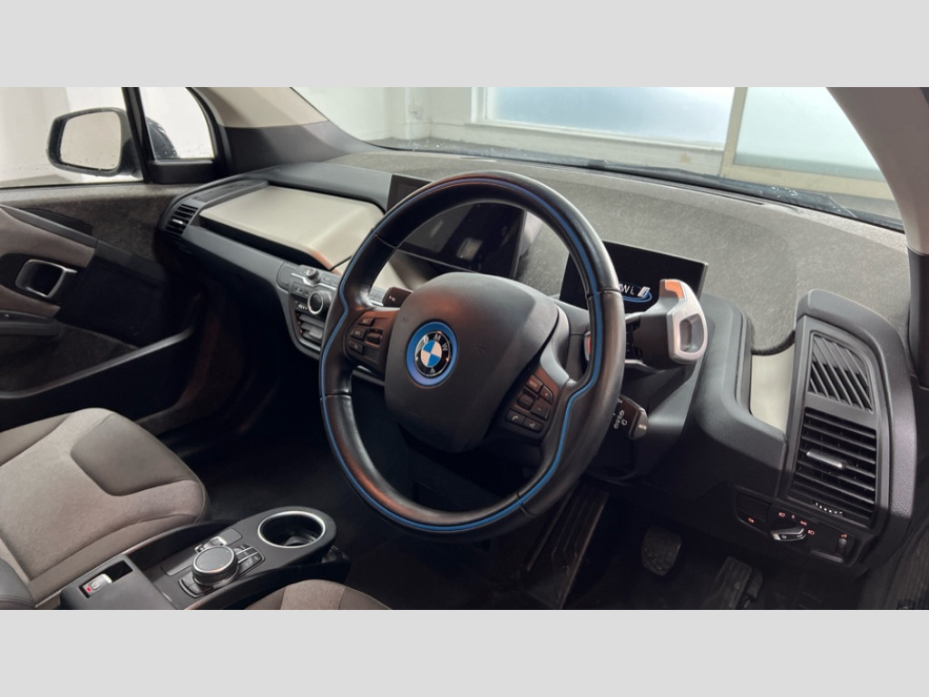 BMW I3 135kW S 42kWh 5dr Auto 5.7" colour TFT Instrument cluster display - speedometer and readout, power and range information, Additional SPORT driving mode with sporty throttle response, Apple car play, Bluetooth hands free telephone facility with USB audio interface and audio streaming, BMW apps interface, BMW ConnectedDrive - Assist, BMW live tiles with charging, dynamic range map, integrated handbook, iDrive Control with buttons, TMC information used to dynamic route plan, BMW Online services, BMW Professional Multimedia Navigation system - 10.25" LCD screen with BMW i design, dynamic route planning and 8 buttons, BMW remote services, BMW Teleservices, Connected eDrive Services, ECO PRO mode to improve range, ECO PRO+ mode to maximise the potential range (top speed 56mph) significant gains in range through a series of onboard electronic measures, Electronic display of drivetrain information and battery range and temperature, Front and rear Brake pad wear indicator, Lights on warning by audio warning signal when ignition is switched off, On board computer - average speed+fuel consumption, service interval, clock/date, odometer/trip meter, outside temperature display and ice warning, Personal profile with automatic lock when driving away selectable, preferences and favourites to a personal profile within the vehicle, Real time traffic information, Servotronic variable electric power steering (EPS), 12V compressor with integrated sealant injection bottle and hose, 2.4kW AC charging with 5m cable, AC Fast charge cable, BMW eDrive motor, BMW integrated differential transmission with electronic parking lock and single forward and reverse gears, Charging cable (Mode 3) for public charging, Drive performance control with ECO PRO+, ECO PRO and comfort modes, eDrive exterior sound, Li-ion battery with active cooling and 38kWh usable energy with aluminium radiator, 8 modules ,integrated battery storage management electronics (SME), Safety battery cut-off for drive train and 12V, Sports suspension, Standard Charging cable (Mode 2) for home socket, Auxiliary point for auxiliary devices, DAB Digital radio, 3rd brake light, A pillar and roof moulding in high gloss black with no matt chrome optic highlight, Auto headlights, Black finished door sills, Black window surrounds, Black with integrated LED brake light in rear spoiler, BMW i3s badge on rear tailgate, Body colour front and rear bumpers, doors and door handles, Contrast highlights in BMW i Blue - Kidney grille surrounds below doors, Direction indicator side lights in exterior mirrors, Dynamic brake lights, Electrically adjustable high gloss black exterior mirror with aspheric on drivers side, convex on passenger side mirrors, Electrically folding, anti dazzle, heated memory, auto parking function, heated washer jets, electrochromatic, aspheric on passenger exterior mirrors, Flap in rear side panel, right with push function to open with C shaped indication band for battery condition integrated into central locking system, Front and rear bumper system with replaceable deformation elements, Front electric windows with open and close fingertip control, anti trap facility and comfort closing, Front floor mat with i3s model designation in the centre, Green tinted heat protection glazing, High gloss black wheel arch extensions, High level third brake light integrated into rear spoiler with front LED bumper, LED side mirror caps, LED rear integrated cluster behind tailgate, i3S rear bumper design with wider body colour inlay, Integrated tailgate rear window with tempered safety glass, heated rear window, Kidney grille high gloss black with contrast chrome edging, LED direction indicator lights on front bumper, LED rear lights integrated into tailgate, Model designation, Rain sensor with automatic windscreen wiper and headlight activation, Rear BMW i3 designation, Rear fog lights in bumper, Rear side wing doors, Rear view mirror with automatic dipping of passenger mirror when reverse gear is selected to aid parking, Rear wiper, Reversing lights in bumper, Shark fin roof aerial, Side windows with tempered safety glass, rear static fixed windows, Visible VIN plate, 12V power socket in centre console, 2 individual rear seats, 50/50 split folding rear seat, Additional 12V power socket in right-hand side of boot, Additional detachable cupholder, Anthracite Velour floor mats, Automatic interior light when door is opened/ignition switched off or via remote key, Cabin pre-conditioning via iDrive or BMW i Remote App, Central cupholder - additional cupholder with clip on function for centre console, Conditioned based service, DC rapid charge preparation, Electric bootlid with chrome optic trim, Electronic drive selector on steering column to select drive, reverse, neutral or park, Foldable front centre armrest with integrated storage compartment, Front and rear four seats with individual seat designs, Front and rear grab handles in roof linings, Front and rear map pockets, Front and rear side armrests integrated into door trim, Front integrated seat backrest and rear height adjustable headrest for all seats, Front passenger seat, Front seat heating, Gear selector switch on steering column with control lever in chrome pearl grey with leather inserts in black and gear visual indication, i3s specific steering characteristics, Illuminated charging socket in visual display, Isofix child seat attachment for two rear seats, Luggage compartment access via recessed handle below tailgate, Manually adjustment steering wheel column, Multi phase AC fast charge preparation, Multi-function controls for steering wheel, Neutronic Cloth upholstery, Pre-heating for battery with active air flap control, Rear shelf cover, Single zone automatic air conditioning, Slide through light weight front seats with easy access to driver or passenger seat, Storage compartment in driver and passenger doors, Sunvisors with vanity mirrors and ticket pocket, Two folding rear seat headrests, Atel