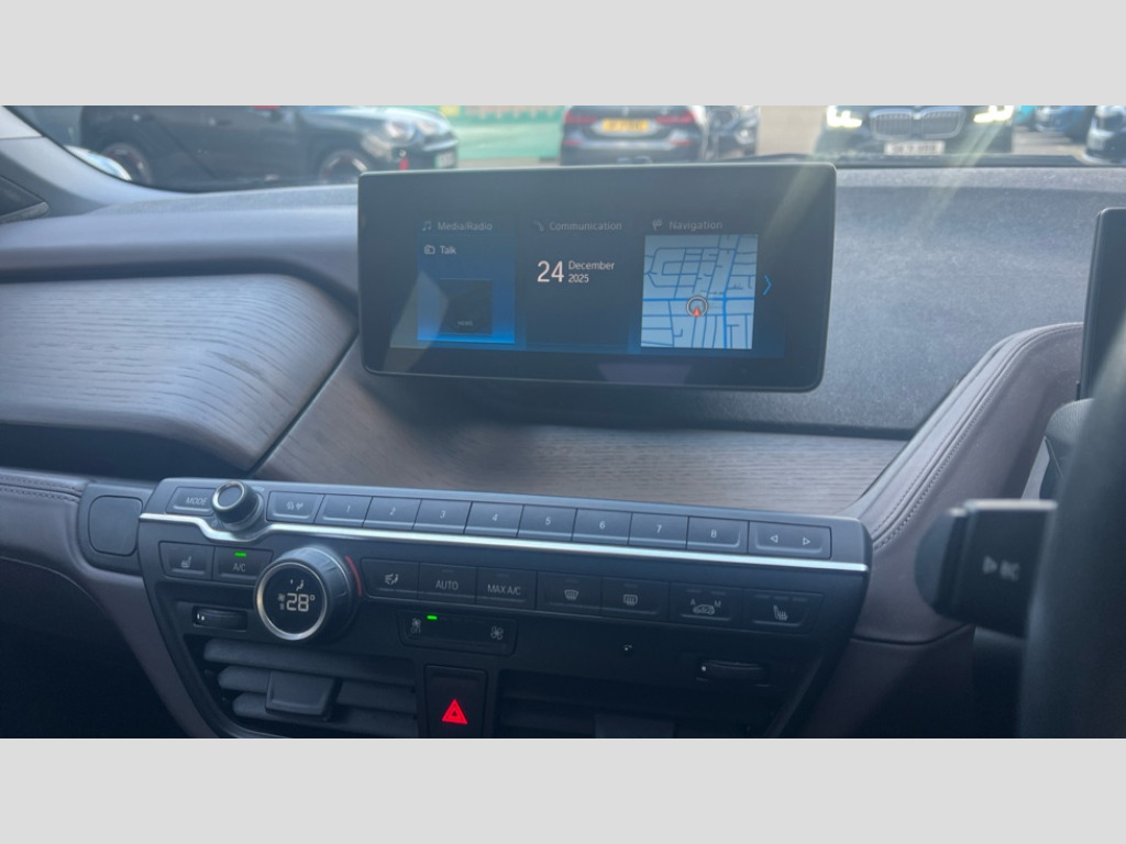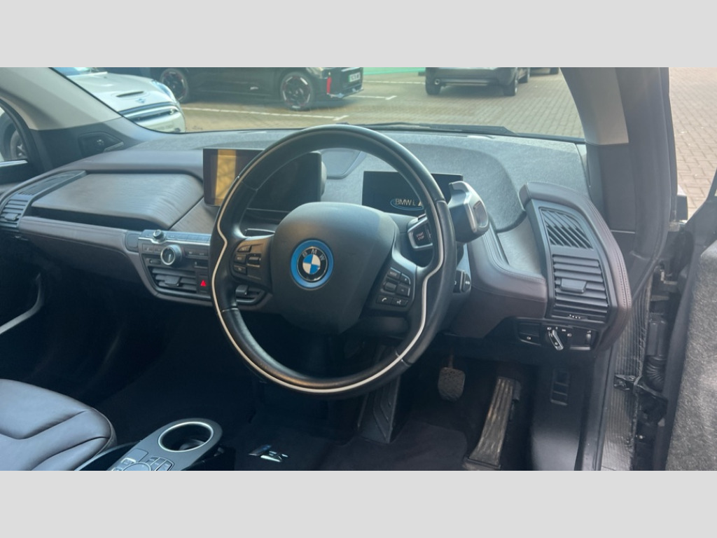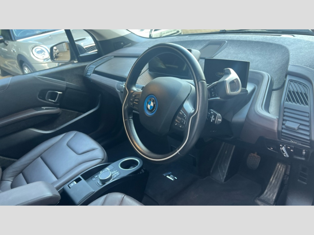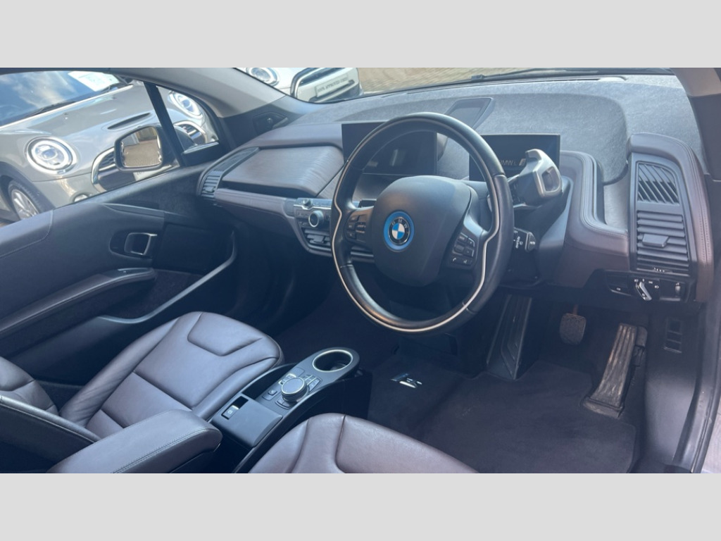 BMW I3 135kW S 42kWh 5dr Auto 5.7" colour TFT Instrument cluster display - speedometer and readout, power and range information, Additional SPORT driving mode with sporty throttle response, Apple car play, Bluetooth hands free telephone facility with USB audio interface and audio streaming, BMW apps interface, BMW ConnectedDrive - Assist, BMW live tiles with charging, dynamic range map, integrated handbook, iDrive Touch Control with buttons, TMC information used to dynamic route plans, BMW Online services, BMW Professional Multimedia Navigation system - 10.25" LCD screen with BMW i design, dynamic route planning and 8 buttons, BMW remote services, BMW Teleservices, Connected eDrive Services, ECO PRO mode to improve range, ECO PRO+ mode to maximise the potential range (top speed 56mph) significant gains in range through a series of onboard electronic measures, Electronic display of drivetrain information and battery range and temperature, Front and rear Brake pad wear indicator, Lights on warning by audio warning signal when ignition is switched off, On board computer - average speed+fuel consumption, service interval, clock/date, odometer/trip meter, outside temperature display and ice warning, Personal profile with automatic lock when driving away selectable, preferences and favourites to a personal profile within the vehicle, Real time traffic information, Servotronic variable electric power steering (EPS), 12V compressor with integrated sealant injection bottle and hose, 2.4kW AC charging with 5m cable, AC Fast charge cable, BMW eDrive motor, BMW integrated differential transmission with electronic parking lock and single forward and reverse gears, Charging cable (Mode 3) for public charging, Drive performance control with ECO PRO+, ECO PRO and comfort modes, eDrive exterior sound, Li-ion battery with active cooling and 38kWh usable energy with aluminium radiator, 8 modules ,integrated battery storage management electronics (SME), Safety battery cut-off for drive train and 12V, Sports suspension, Standard Charging cable (Mode 2) for home socket, Auxiliary point for auxiliary devices, DAB Digital radio, A pillar and roof moulding in high gloss black with no matt chrome optic highlight, Black finished door sills, Black window surrounds, Black with integrated LED brake light in rear spoiler, BMW i3s badge on rear tailgate, Body colour front and rear bumpers, doors and door handles, Contrast highlights in BMW i Blue - Kidney grille surrounds below doors, Direction indicator side lights in exterior mirrors, Dynamic brake lights, Electrically adjustable high gloss black exterior mirror with aspheric on drivers side, convex on passenger side mirrors, Electrically folding, anti dazzle, heated memory, auto parking function, heated washer jets, electrochromatic, aspheric on passenger exterior mirrors, Flap in rear side panel, right with push function to open with C shaped indication band for battery condition integrated into central locking system, Front and rear bumper system with replaceable deformation elements, Front electric windows with open and close fingertip control, anti trap facility and comfort closing, Front floor mat with i3s model designation in the centre, Green tinted heat protection glazing, High gloss black wheel arch extensions, High level third brake light integrated into rear spoiler with front LED bumper, LED side mirror caps, LED rear integrated cluster behind tailgate, i3S rear bumper design with wider body colour inlay, Integrated tailgate rear window with tempered safety glass, heated rear window, Kidney grille high gloss black with contrast chrome edging, LED direction indicator lights on front bumper, LED rear lights integrated into tailgate, Model designation, Rain sensor with automatic windscreen wiper and headlight activation, Rear BMW i3 designation, Rear fog lights in bumper, Rear view mirror with automatic dipping of passenger mirror when reverse gear is selected to aid parking, Rear wiper, Reversing lights in bumper, Shark fin roof aerial, Side windows with tempered safety glass, rear static fixed windows, Visible VIN plate, 12V power socket in centre console, 50/50 split folding rear seat, Additional 12V power socket in right-hand side of boot, Additional detachable cupholder, Anthracite Velour floor mats, Automatic interior light when door is opened/ignition switched off or via remote key, Cabin pre-conditioning via iDrive or BMW i Remote App, Central cupholder - additional cupholder with clip on function for centre console, Conditioned based service, DC rapid charge preparation, Electric bootlid with chrome optic trim, Electronic drive selector on steering column to select drive, reverse, neutral or park, Foldable front centre armrest with integrated storage compartment, Front and rear four seats with individual seat designs, Front and rear grab handles in roof linings, Front and rear map pockets, Front and rear side armrests integrated into door trim, Front integrated seat backrest and rear height adjustable headrest for all seats, Front seat heating, Gear selector switch on steering column with control lever in chrome pearl grey with leather inserts in black and gear visual indication, i3s specific steering characteristics, Illuminated charging socket in visual display, Isofix child seat attachment for two rear seats, Luggage compartment access via recessed handle below tailgate, Manually adjustment steering wheel column, Multi phase AC fast charge preparation, Multi-function controls for steering wheel, Pre-heating for battery with active air flap control, Rear shelf cover, Single zone automatic air conditioning, Slide through light weight front seats with easy access to driver or passenger seat, Storage compartment in driver and passenger doors, Sunvisors with vanity mirrors and ticket pocket, Two folding rear seat headrests, Vernasca leather / Dalbergia Brown cloth upholstery, Extended storage pack - I3, Suite interior world pack - i3, 2 x 3-point rea