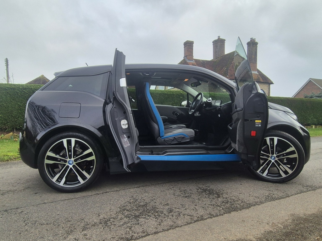 2018 BMW i3s, finished in Fluid Black with BMW i Blue highlights and 55,000 miles. , Factory upgrades include twin glass sunroofs, Comfort Access (keyless entry and start), privacy glass, and front and rear parking sensors. , Further features include i3s sport suspension and styling, professional navigation system, digital driver display, dual-zone climate control, Bluetooth phone and audio connectivity, LED headlights, and selectable driving modes. , Supplied with full service history, 2 keys, and MOT through to January 2027.