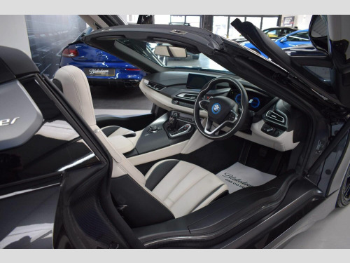 2019 19 BMW i8 1.5 11.6kWh Roadster Auto 4WD finished in beautiful Sophisto Grey Metallic with BMW i Spheric Full Perforated Black/Ivory Leather. This ONE owner car has covered 19500 miles and as such is presented in showroom condition inside and out as you would expect. This car comes with full main dealer service history stored in the iDrive and comes with BMW warranty in place until March 2022. First MOT not due until this time and supplied with two keys, all correct documentation etc. Great specification with options and equipment to include: BMW Display Key, Aerodynamic Package (Rear boot lip spoiler and two-piece front splitter), 20in Alloy Wheels - BMW i Radial Spoke Style 516 - Jet Black, Online Entertainment, Apple CarPlay Preparation, 20GB HDD Memory, Adaptive LED Headlights with High-Beam Assistant, BMW ConnectedDrive Services, BMW i Pure Impulse Card, Ceramic Surround for Controls, Comfort Access System, Cruise Control with Brake Function, DAB Digital Radio, Dynamic Brake Lights with LED Technology, Enhanced Bluetooth Telephone Preparation with Wireless Charging, Head-Up Display, Interior World - Carpo, Loudspeaker System - Harman/Kardon, Navigation System - BMW Professional Multimedia, PDC - Park Distance Control - Front and Rear, Seat Adjustment - Front Electric with Driver Memory, Seat Heating - Front, TPMS - Tyre Pressure Monitoring, VDC - Variable Damper Control and more. FINANCE FROM 6.9% APR | GTECHNIQ DETAILING & CERAMIC COATINGS | XPEL PAINT PROTECTION FILM