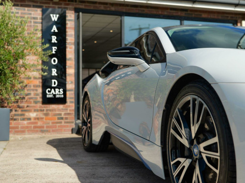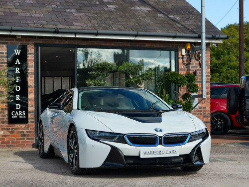 Warford Cars are proud to present this stunning BMW i8 in Crystal White - Pearl Effect with BMW i Blue Accents with Ivory Leather Interior. The car is optioned from new with Harman / Kardon Speaker System, 20-inch Diamond Cut Wheels, BMW Perforated Ivory White Leather Interior, Carpo Light Interior World and Internet. Key features include Heated Electric Seats, Dual Zone Climate Control and Front & Rear Parking Sensors with Reversing Camera. The car is very well maintained from new coming with Full BMW Main Dealer Service History having been done 20/12/2016 at 10,321 miles, 06/03/2018 at 14,187 miles, 27/02/2019 at 17,720 miles, 20,449 miles, 08/03/2021 at 22,623 miles, 15/03/2022 at 24,946 miles, 26/04/2023 at 25,784 miles, 09/04/2024 at 26,560 miles (inc Brake Fluid) and 15/04/2025 at 27,057 miles (inc spark plugs) and all documented on the BMW iDrive system on the car. Further to the servicing, the car has also had a new air conditioning compressor in 2020 with the car further benefitting from BMW Extended Warranty til April 2026. The car comes with comprehensive maintenance invoices. Viewings Strictly by Appointment Only. Competitive Finance Options Available. Extended Warranty Available. Professional GTechniq Accredited Detailing Available. Call directly to arrange a viewing on 07537 165874
