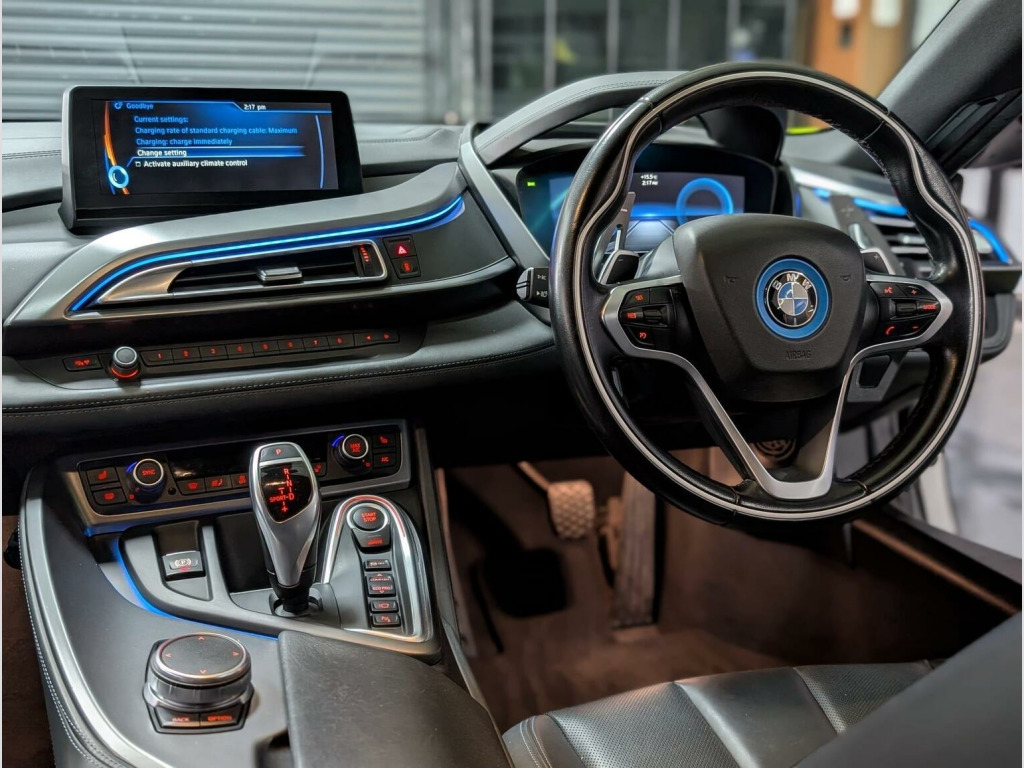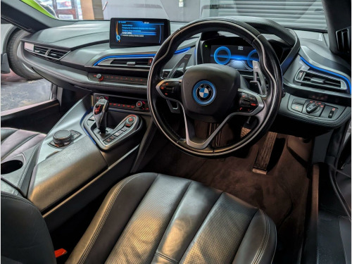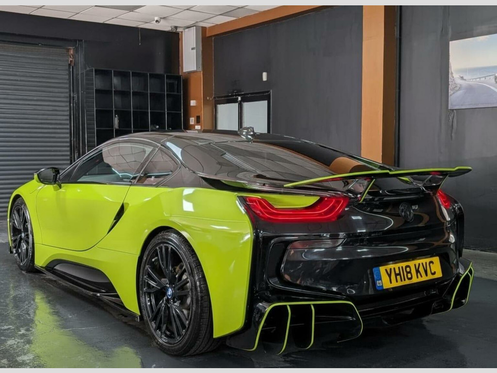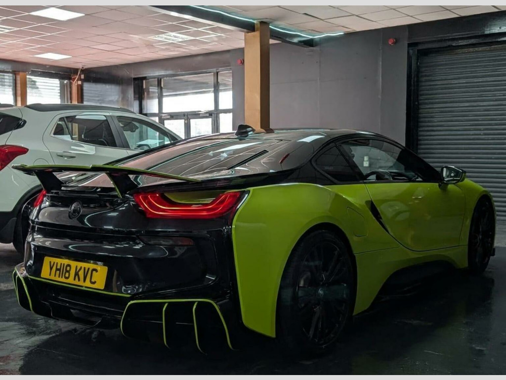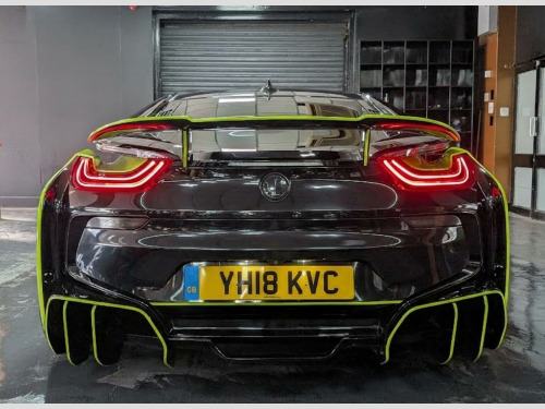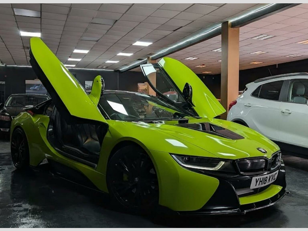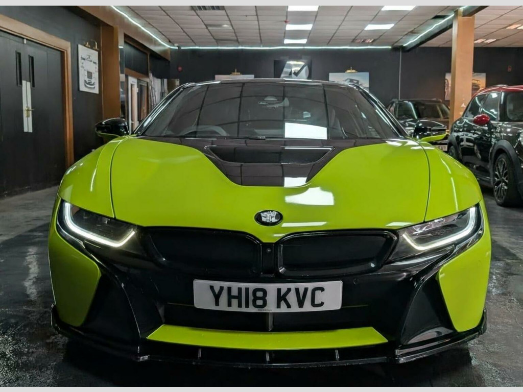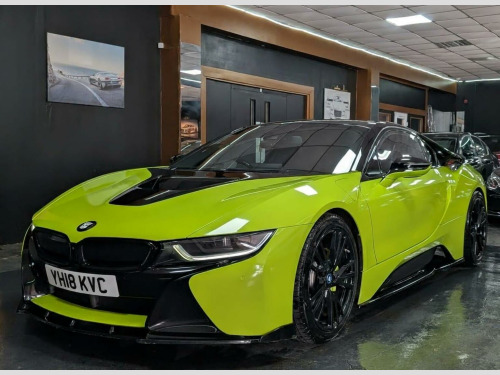 Bmw warranty until March 2026 + Wrapped in lime green. 4 new Tyers. Smart key included. original colour white. This 2018 BMW i8 presents a unique opportunity, having been cherished by only two owners since its registration. It boasts a sophisticated 1.5L petrol plug in hybrid engine, delivering efficient performance with its four wheel drive system and meeting Euro 6 emission standards. Inside, youll find a host of premium features designed for comfort and convenience, including front seat heating, enhanced Bluetooth telephone preparation with USB audio interface, and an impressive Head Up Display. The Driving Assistant package further enhances the experience, offering surround view with a 360 degree camera, speed limit display, and high beam assistant, all complemented by the immersive Online Entertainment system. The BMW i8 stands out from its peers with its innovative plug in hybrid technology, offering a blend of dynamic driving and environmental consciousness. The inclusion of features like the Head Up Display and the comprehensive Driving Assistant with surround view parking assistance highlights its advanced technological integration, providing a safer and more enjoyable driving experience. This vehicles combination of low ownership, advanced features, and efficient hybrid powertrain makes it a compelling choice for those seeking a distinctive and forward thinking driving machine. HPI CLEAR... A £90 admin fee applies to all transactions**WE ACCEPT MOST MAJOR BANK CARDS** LOW RATE FINANCE AVAILABLE…VIEWING STRICTLY BY APPOINTMENT ONLY...PLEASE CALL TO ENQUIRE AS THERE MAY BE A DELAY IN ANSWERING EMAIL ENQUIRIES