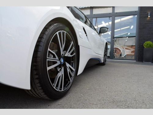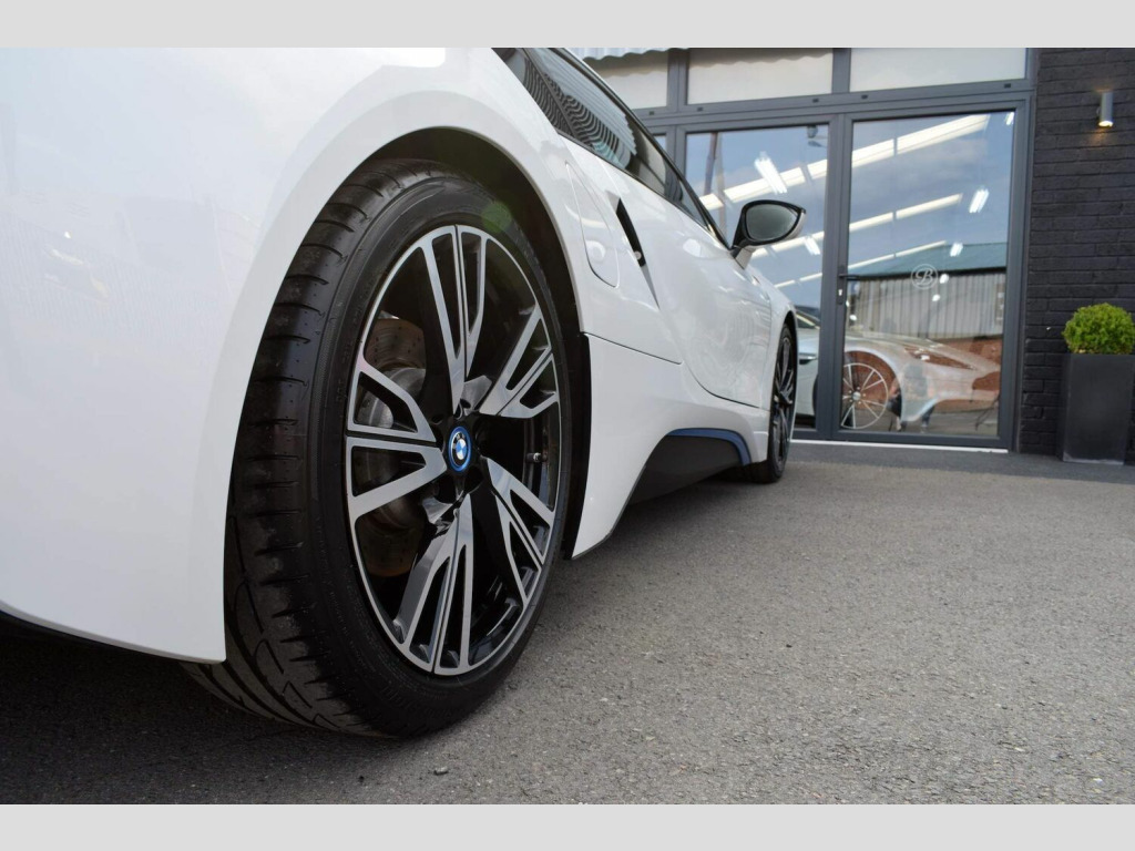 2014 14 BMW i8 1.5 7.1kWh Auto 4WD Coupe finished in beautiful Crystal Pearl White with optional Exclusive Halo Dalbergia Brown Interior. This i8 has covered 66650 miles however you would be forgiven for thinking it had covered half the mileage. The car is presented in fantastic condition inside and out with all mechanical consumables in equally great order. This car comes with full main dealer service history stored in the iDrive plus a service by ourselves with no maintenance for the foreseeable future. Two keys and all correct documentation etc present. This i8 is boasting an incredible spec with almost £15000 in optional extras fitted which includes the all encompassing Pure Impulse Design Pack which at a cost of £12200 includes Harman Kardon Hi Fi System, LED Headlights, Lighting Package, Park Distance Control, Head Up Display, Storage Pack and 20 Turbine Alloy Wheels. Other options include: Interior World - Halo, Driving Assistant, Seat Belt - BMW i Blue, Electric Front Seats and Headlining - Anthracite. Other equipment includes: 20GB HDD Memory, Adaptive LED Headlights with High-Beam Assistant, Air Conditioning - Automatic with Two-Zone Control, Automatically Dimming Rear View Mirror, Brake Pre-Tensioning, Carbon Fibre Reinforced Roof, City Collision Mitigation, Cruise Control with Brake Function, DAB Digital Radio, Door Mirrors - Folding - Automatically Dimming, Electro Mechanical Parking Brake, Enhanced Bluetooth Telephone Preparation with USB Audio Interface, Extended Storage, Headlights - Automatic Activation, Navigation System - BMW Professional Multimedia, PDC - Park Distance Control - Front and Rear, Rain Sensor, Reversing Assist Camera, Seats - Heated and Front Electric Adjustment, Speed Limit Display, Start-Stop Button with Keyless Operation, Surround-View, TPMS - Tyre Pressure Monitoring, VDC - Variable Damper Control and more. FINANCE FROM 6.9% APR | GTECHNIQ DETAILING & CERAMIC COATINGS | XPEL PAINT PROTECTION FILM