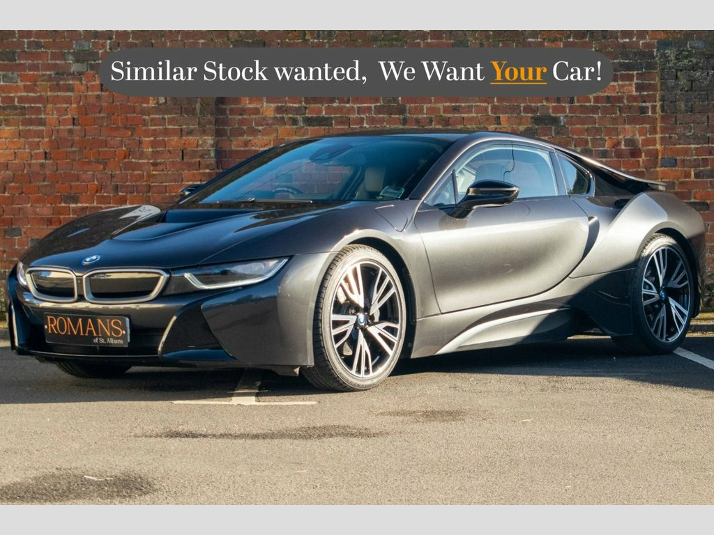 DEPOSIT TAKEN-SIMILAR WANTED! Romans of St Albans are delighted to present this magnificent Sophisto Grey BMW I8. This high tech example features optional extras to include: Harman Kardon speakers, 20in Alloys wheels, Anthracite Headlining, Interior World Carpo Light, Edrive exterior sound and much more.. FINANCE AVAILABLE. A £299 admin fee applies to third party finance companies being used. ULEZ COMPLIANT. FREE ON-SITE PARKING (ASK FOR DETAILS.) Romans after care package includes: Romans warranty for 6 months (12,24 & 36 months are available), Main dealer cover available, Free breakdown cover for warranty duration, Full Romans service prior to delivery, 84 point vehicle inspection, 12 months MOT, Free Life time MOT when servicing with us (ask for details), Total value of package: £2000 - ALL INCLUSIVE IN THE PRICE. All of our clients have the added peace of mind that we have our own workshop facilities with free courtesy cars. Part Exchange very welcome, nationwide delivery also available. To avoid a wasted journey we highly recommend making an appointment, so call us now to get yours booked! Romans provide the highest of quality vehicles, and have at least 80 cars in stock at any one time. This means not all cars can be kept on site. This will also allow us to give you our fully undivided attention when viewing the vehicle you are interested in, WE ARE LOOKING TO BUY YOUR TOP SPEC, LOW MILEAGE, FULL SERVICE HISTORY PRESTIGE, SPORTS, AND 4X4 VEHICLES. GET MO 20GB HDD Memory, 20in Alloy Wheels - BMW i Turbine-Spoke , Access to BMW Connected Plus for 12 Mont, Adaptive LED Headlights with High-Beam A, Air Conditioning - Automatic with Extend, Airbags, Alarm System - Thatcham 1 with Remote Co, Ambient Interior Lighting, Armrest - Front Centre with Storage Comp, Automatic Start-Stop Button, Auxiliary Air Conditioning, Auxiliary Input Point for Auxiliary Play, BMW ConnectedDrive Online Services, BMW ConnectedDrive Services, BMW Display Key, BMW Emergency Call, BMW Mobility System, BMW Professional Radio, BMW Roundel with BMW i Blue Surround - F, BMW TeleServices, BMW i Pure Impulse Card, Bonnet - Aluminium with V-Belt Styling i, Brake Callipers - Blac