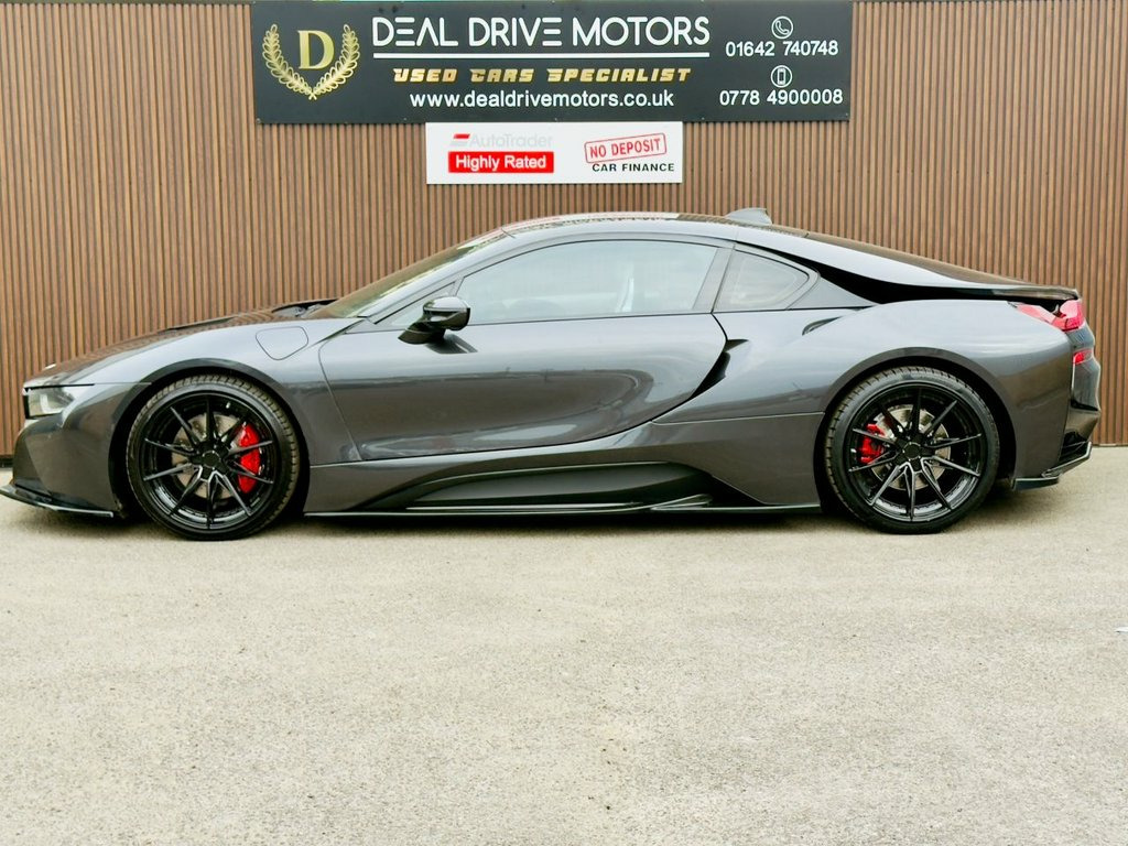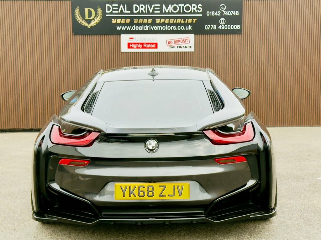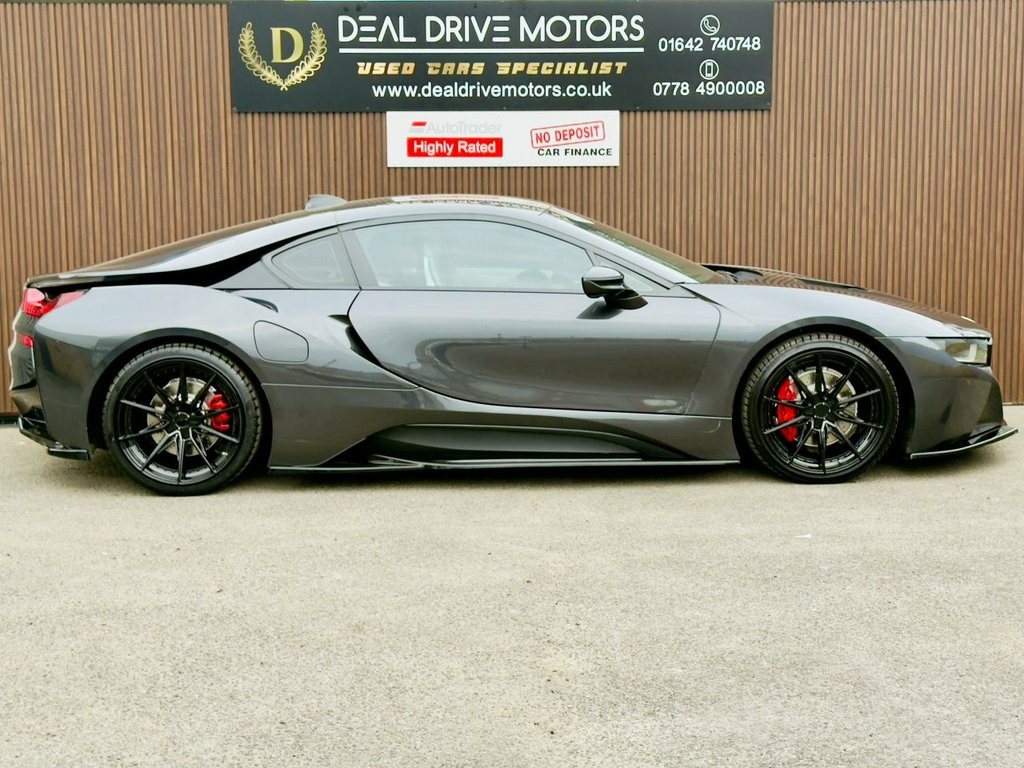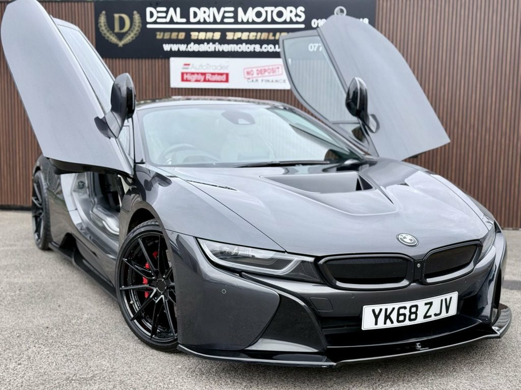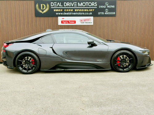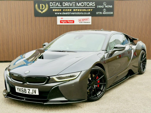 2018 BMW i8 1.5 7.1kWh Coupe Auto 4WD – 362 PS Available now at DealDrive Motors. The BMW i8 Coupe is a futuristic sports car that blends striking design with plug-in hybrid efficiency and supercar performance. With its dramatic styling, advanced technology, and everyday usability, it's one of the most unique performance cars on the road. Powered by a 1.5-litre turbocharged petrol engine paired with an electric motor, the i8 delivers a combined 362 PS. Its automatic transmission and 4WD system ensure superb grip, blistering acceleration, and smooth performance. Being Euro 6 compliant and plug-in hybrid, it's ULEZ-friendly and offers both efficiency and power. Inside, the cabin combines luxury with cutting-edge design. Features include full leather upholstery, heated seats, satellite navigation, Bluetooth connectivity, and premium audio. The driver-focused cockpit and low seating position enhance the sports car feel, while scissor doors add dramatic flair. Everyday usability is boosted with front and rear parking sensors, cruise control, and a reversing camera. Striking alloy wheels, aerodynamic styling, and LED lighting ensure it stands out wherever it goes. Presented in excellent condition with service history and HPI clear for peace of mind, this BMW i8 Coupe offers futuristic design, exhilarating performance, and everyday efficiency in a truly iconic package. 20GB HDD Memory, 20in Alloy Wheels - BMW i Turbine-Spoke , Access to BMW Connected Plus for 12 Mont, Adaptive LED Headlights with High-Beam A, Air Conditioning - Automatic with Extend, Airbags, Alarm System - Thatcham 1 with Remote Co, Ambient Interior Lighting, Armrest - Front Centre with Storage Comp, Automatic Start-Stop Button, Auxiliary Air Conditioning, Auxiliary Input Point for Auxiliary Play, BMW ConnectedDrive Online Services, BMW ConnectedDrive Services, BMW Display Key, BMW Emergency Call, BMW Mobility System, BMW Professional Radio, BMW Roundel with BMW i Blue Surround - F, BMW TeleServices, BMW i Pure Impulse Card, Bonnet - Aluminium with V-Belt Styling i, Brake Callipers - Blac