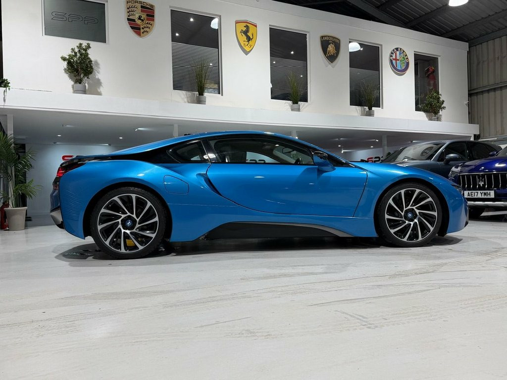 Select Performance Are Delighted To Offer This Stunning One Owner BMW I8 Coupe In Protonic Blue With Frozen Grey Accent. Full iDRIVE Online Service History ( Just Serviced ) Full Spheric Leather In Carum Grey 20" Turbine Alloys With Black/Blue Calipers, Comfort Access. E Exterior Sound, Harman Kardon Sound, Internet, RAC APPROVED FINANCE PART EXCHANGE... Please Call For A walk Around Video And Registration Number So You Can Carry Out Any Checks 12V Power Socket in Front Centre Console, 12v Power Socket - Small Folding Compart, 20GB HDD Memory, 20in Alloy Wheels - BMW i Turbine-Spoke , ABS - Anti Lock Braking System, Adaptive LED Headlights with High-Beam A, Air Conditioning - Automatic with Two-Zo, Airbags - Curtain Head Protection system, Airbags - Driver, Airbags - Front Side, Airbags - Passenger, Airbags - Passenger Deactivation, Alarm System Thatcham 1 with Remote Cont, Ambient Interior Lighting, Armrest - Front with Storage Compartment, Automatically Dimming Rear View Mirror, Auxiliary Input, BMW Apps Interface, BMW ConnectedDrive Online Services, BMW ConnectedDrive Services, BMW Emergency Call, BMW Professional Radio, BMW Tel