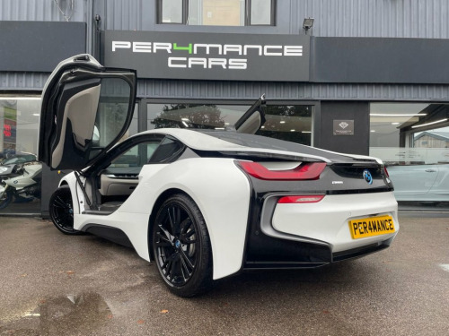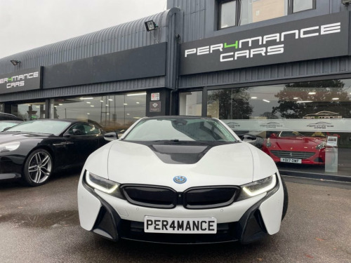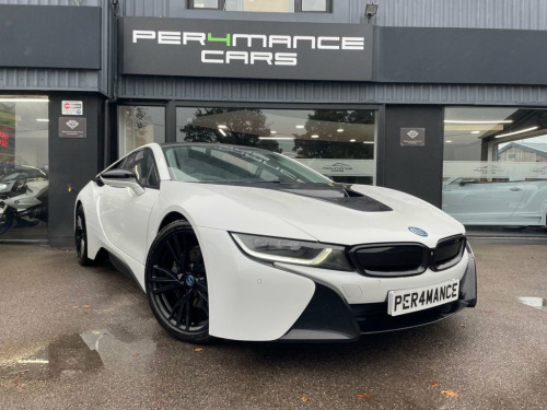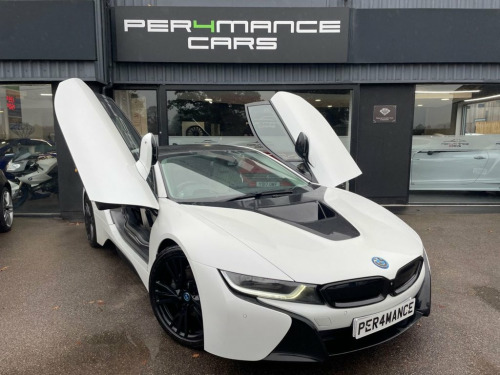 PER4MANCE CARS ARE DELIGHTED TO OFFER THIS STUNNING 2016 BMW I8 (362PS) FINISHED IN CRYSTAL WHITE PEARL WITH BMW I SPHERIC PERFORATED CARUM GREY LEATHER, 20" I W SPOKE GLOSS BLACK ALLOY WHEELS, BMW ADVANCED SURROUND SOUND, BMW PROFESSIONAL MEDIA WITH ENHANCED BLUETOOTH, SAT NAV AND DAB, CRUISE CONTROL WITH BRAKE FUNCTION, HEAD UP DISPLAY, TYRE PRESSURE MONITOR, REVERSE CAMERA WITH FRONT AND REAR PARK ASSIST, CARBON FIBRE ROOF, POWEWR FOLDING DOOR MIRRORS, ADAPTIVE LED HEADLIGHTS, AUTO LIGHTS AND WIPERS, DUAL ZONR CLIMATE CONTROL, KEYLESS START, HEATED SEATS, MULTIFUNCTION LEATHER STEERING WHEEL WITH PADDLESHIFT GEARS, AMBIENT LIGHTING, SPEED LIMIT DISPLAY AND MUCH, MUCH MORE... DO NOT MISS OUT ON THIS OUTSTANDING CAR! CONTACT SALES ON 03339887777 OR Full dealer facilities available, Finance available, please apply via our website or call for a quote. We have a team of experienced buyers who hand pick our cars from all parts of the UK so you can buy with confidence all vehicles are HPI Clear and prepared to the highest standard. We believe in providing our customers with a personal and first class level of service, Full dealer facilities available, Part exchanges welcomed. Contact Sales on 0333 988 7777 or email [email protected]. 20GB HDD Memory, 20in Alloy Wheels - BMW i Turbine-Spoke , Adaptive LED Headlights with High-Beam A, Air Conditioning - Automatic with Extend, Airbags, Alarm System, Ambient Interior Lighting, Armrest - Front Centre, Automatic Start-Stop Button, Auxiliary Input Point for Auxiliary Play, BMW ConnectedDrive Online Services, BMW ConnectedDrive Services, BMW Display Key, BMW Emergency Call, BMW Mobility System, BMW Professional Radio, BMW Roundel with BMW i Blue Surround - F, BMW TeleServices, BMW i Pure Impulse Card, Bonnet - Aluminium with V-Belt Styling i, Brake Callipers - Black, Brake Pad Wear Indicator, Carbon Fibre Reinforced Plastic Roof, Central Locking - Remote, Check Control Warning S